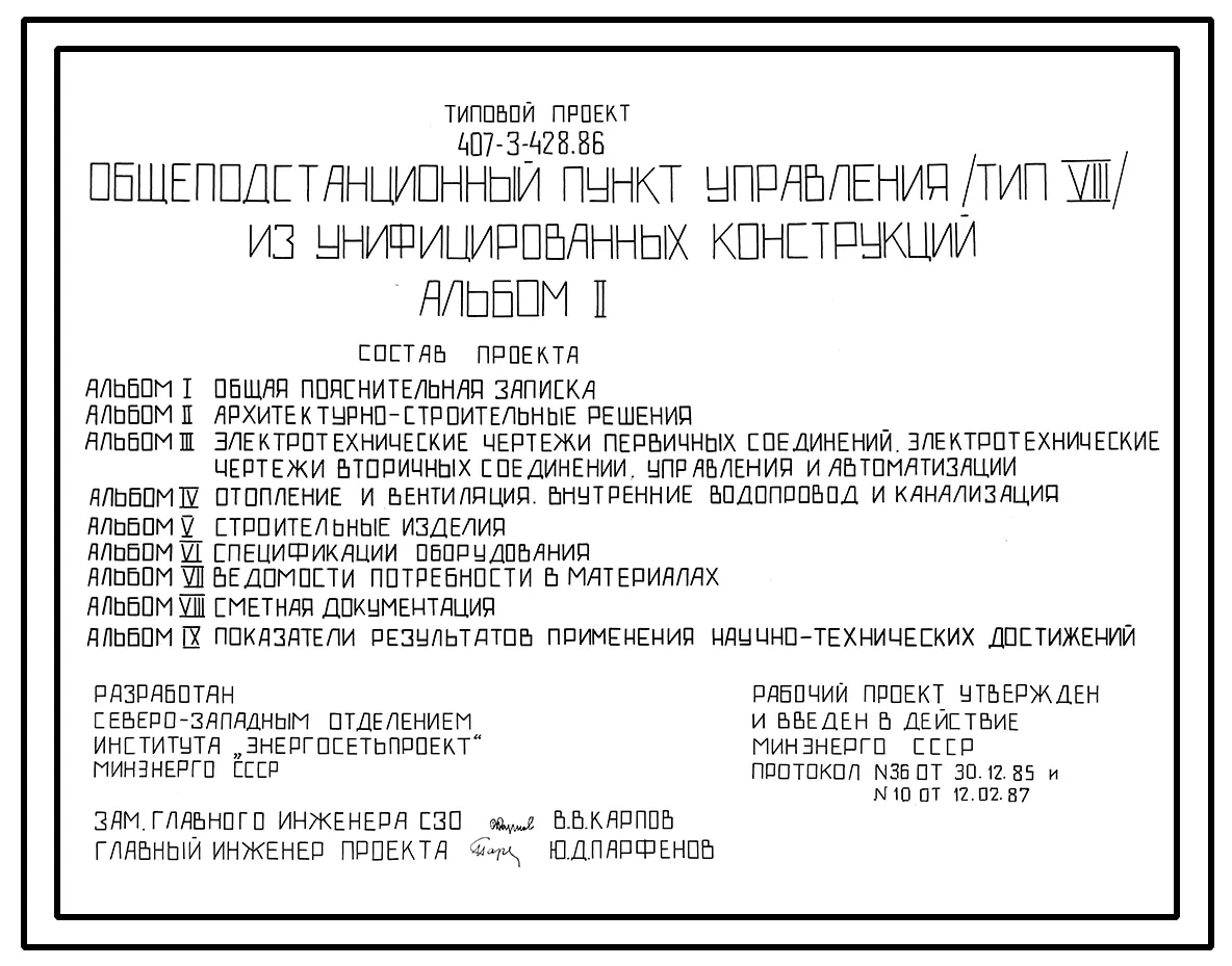 Типовой проект 407-3-428.86 Общеподстанционный пункт управления (тип 8) из унифицированных конструкций