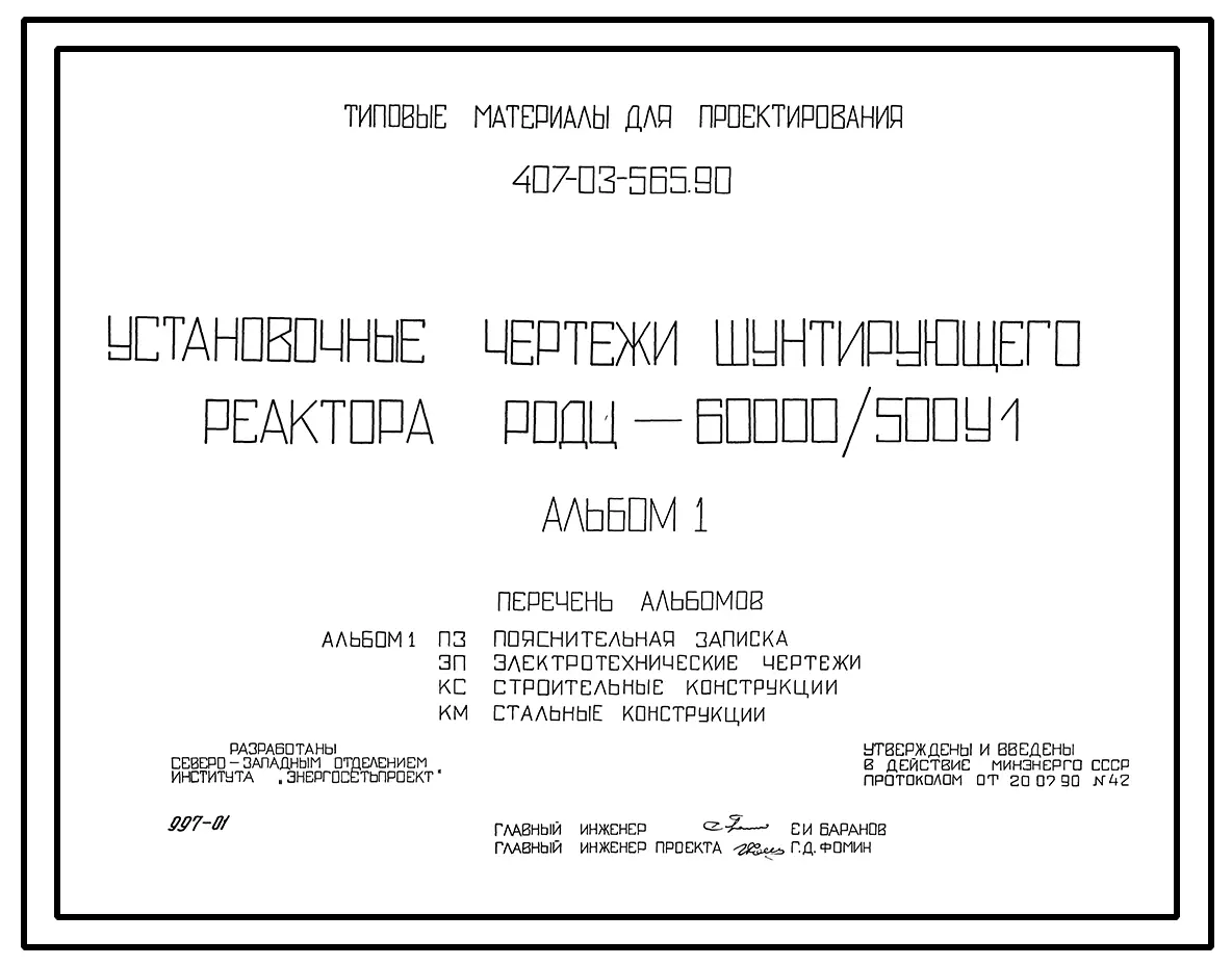 Типовой проект 407-03-565.90 МП Установочные чертежи шунтирующего реактора РОДЦ-60000/500-VI