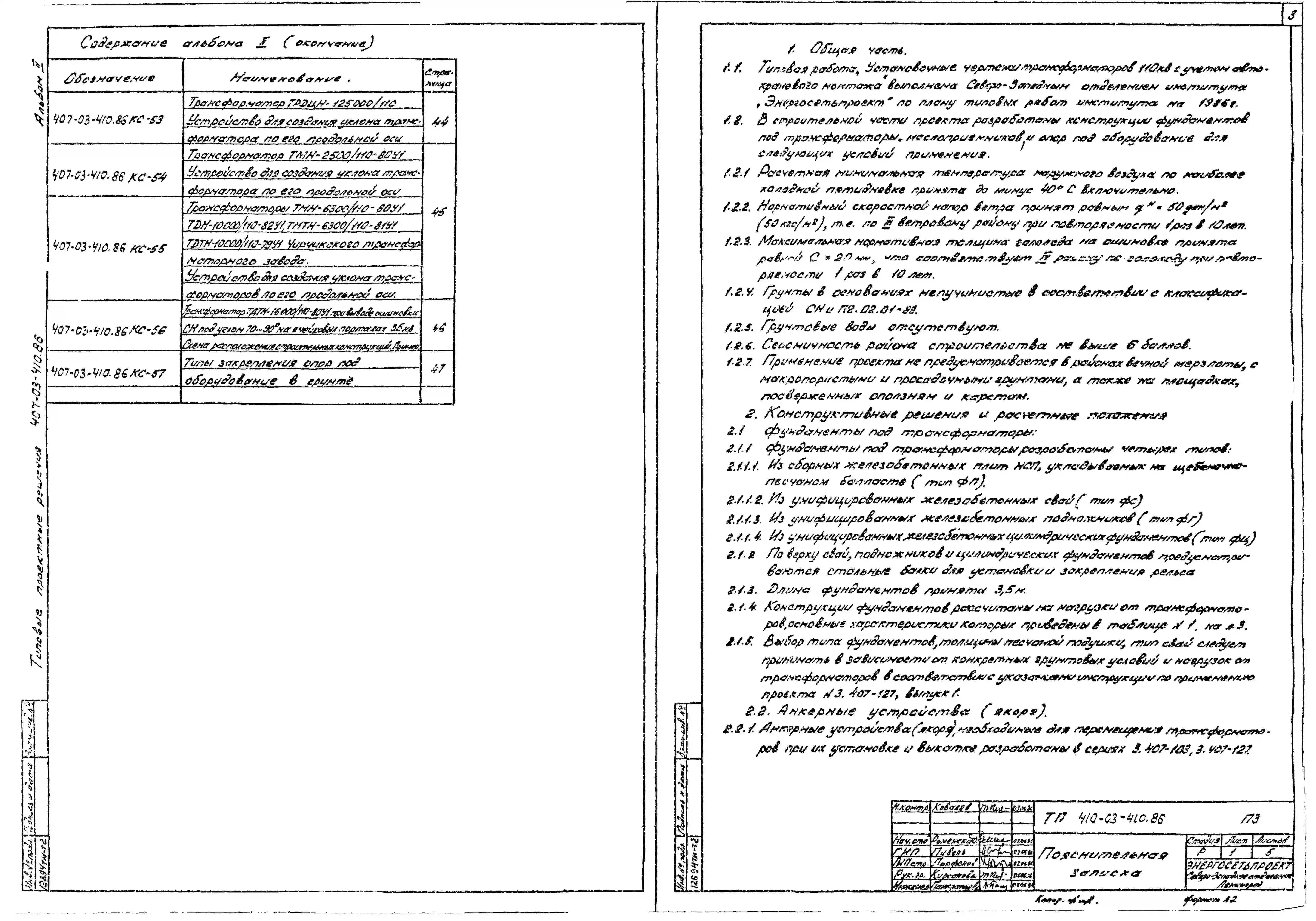 Типовой проект 407-03-410.86 Установочные чертежи трансформаторов 110 кВ с учетом автокранового монтажа