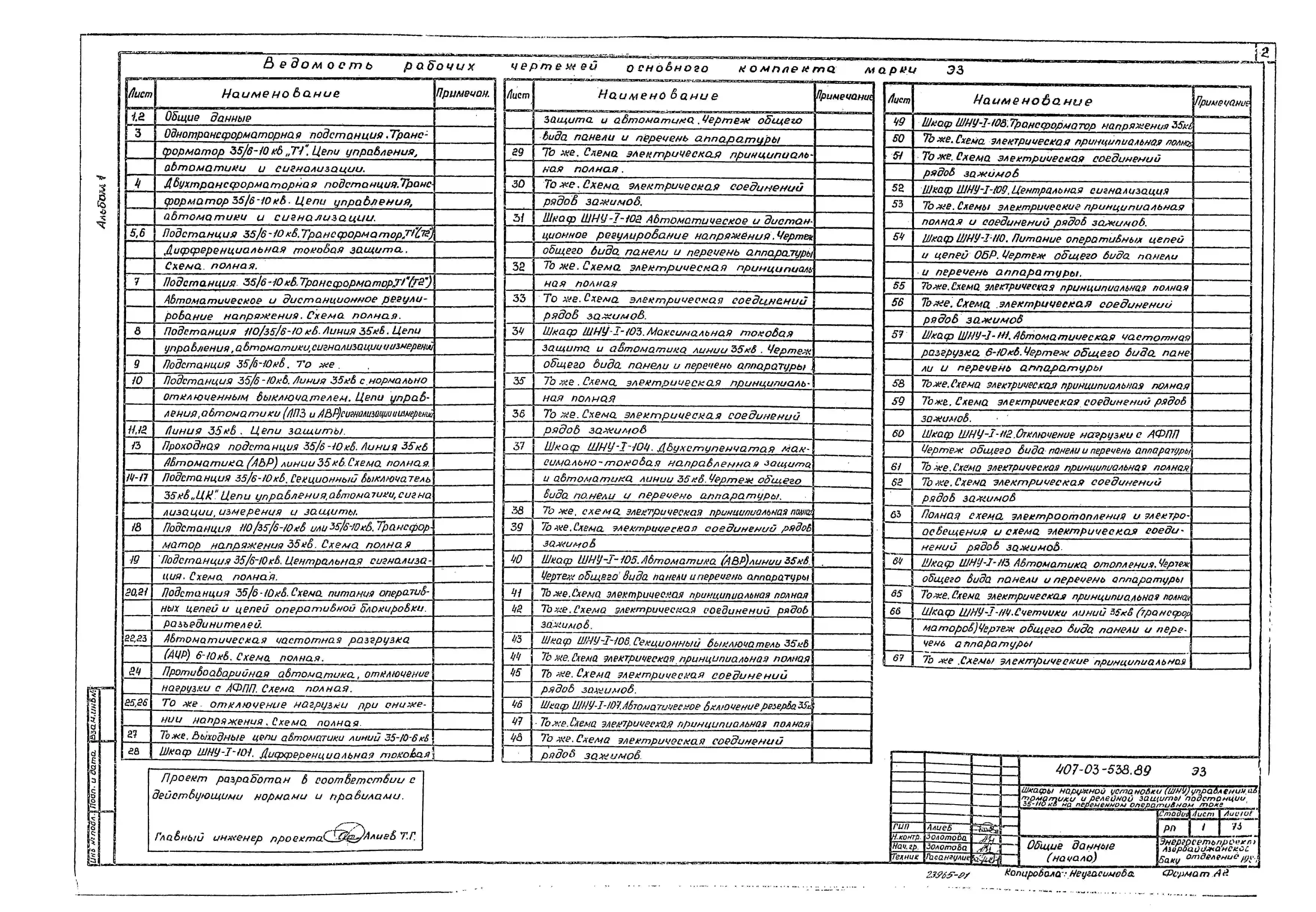 Типовой проект 407-03-538.89 Шкафы наружной установки управления, автоматики и релейной защиты подстанций 35–110 кВ на оперативном переменном токе