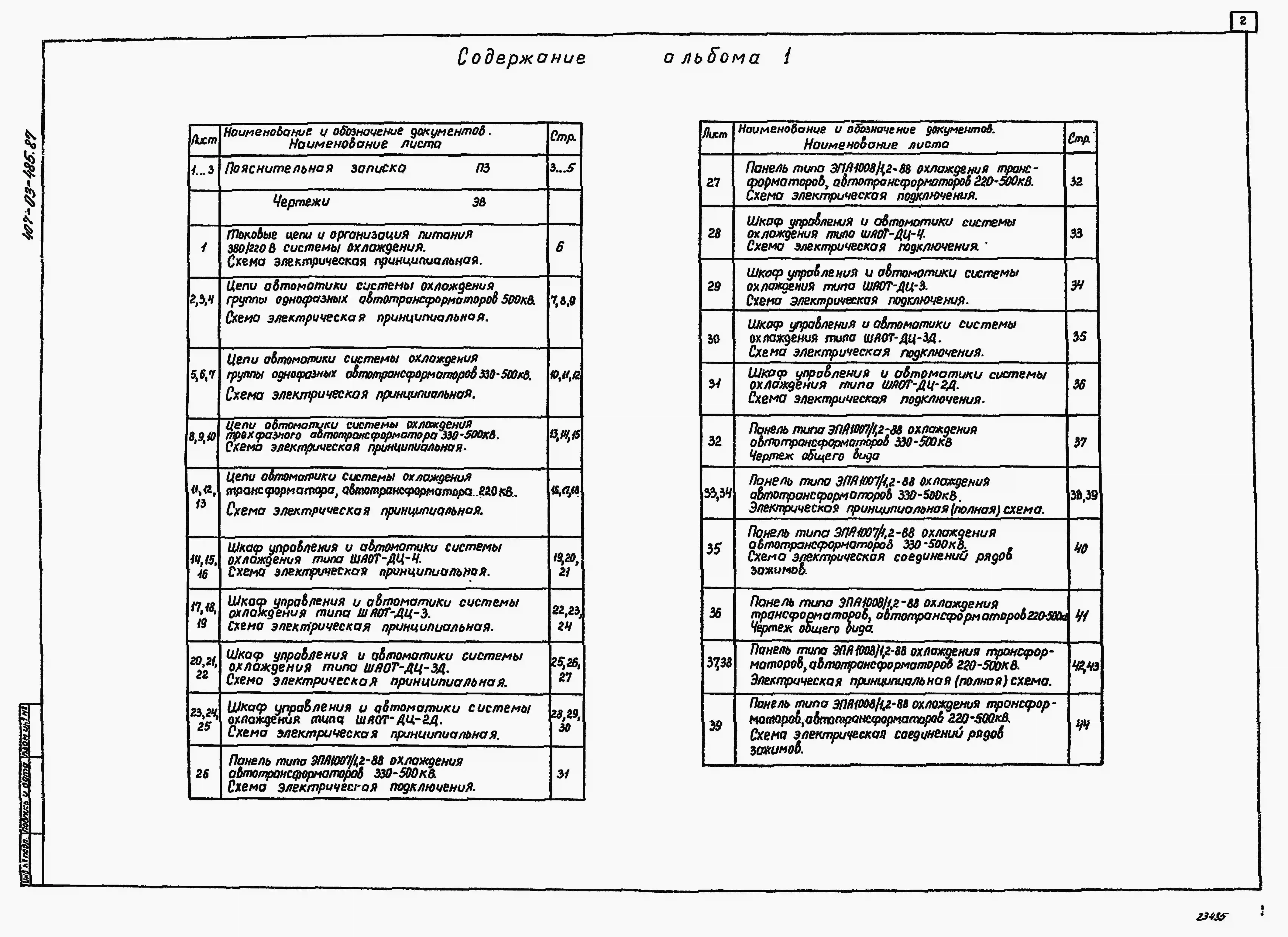 Типовой проект 407-03-485.87 Схемы и низковольтные комплектные устройства охлаждения трансформаторов и автотрансформаторов 110-500 кВ системы ДЦ