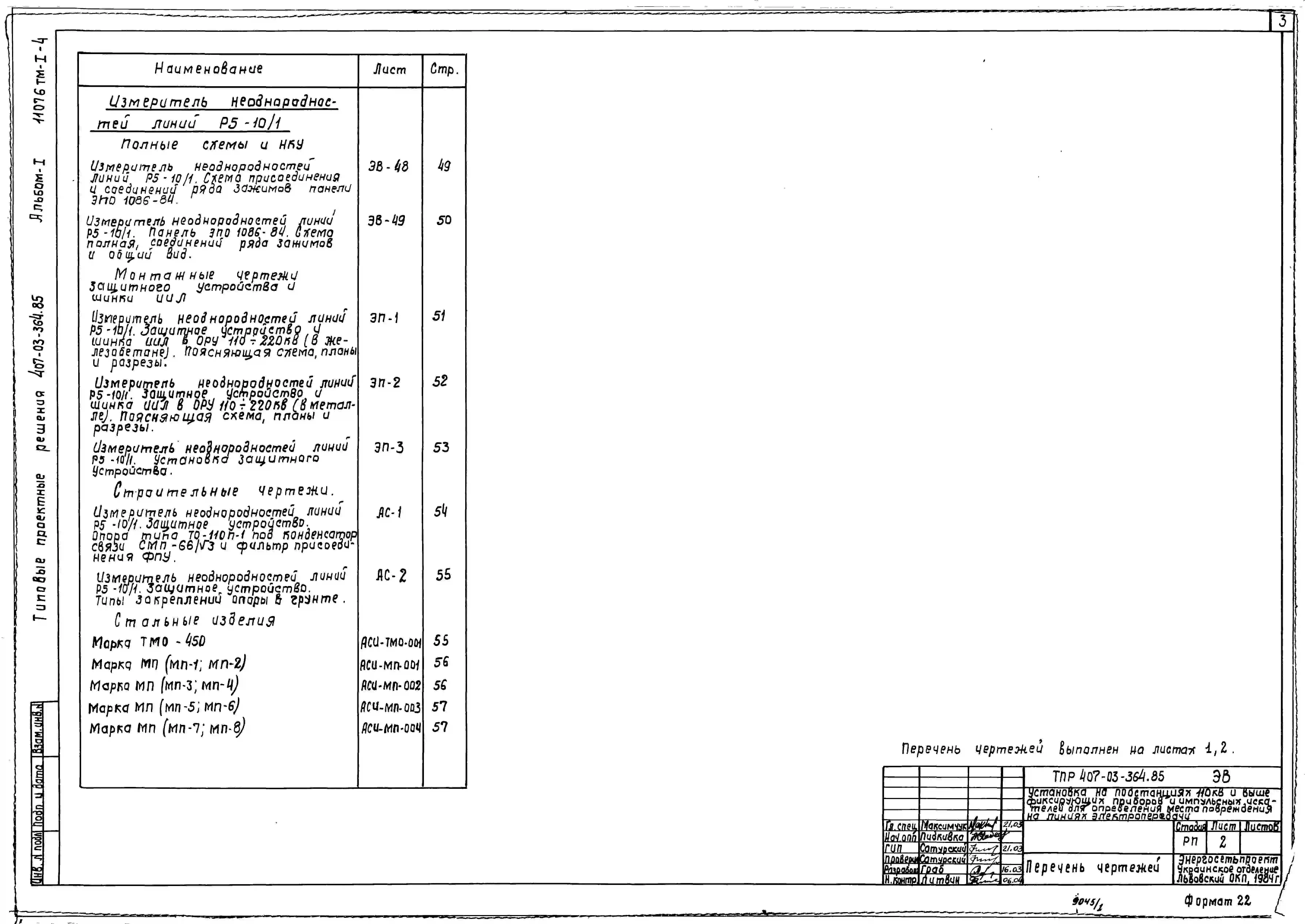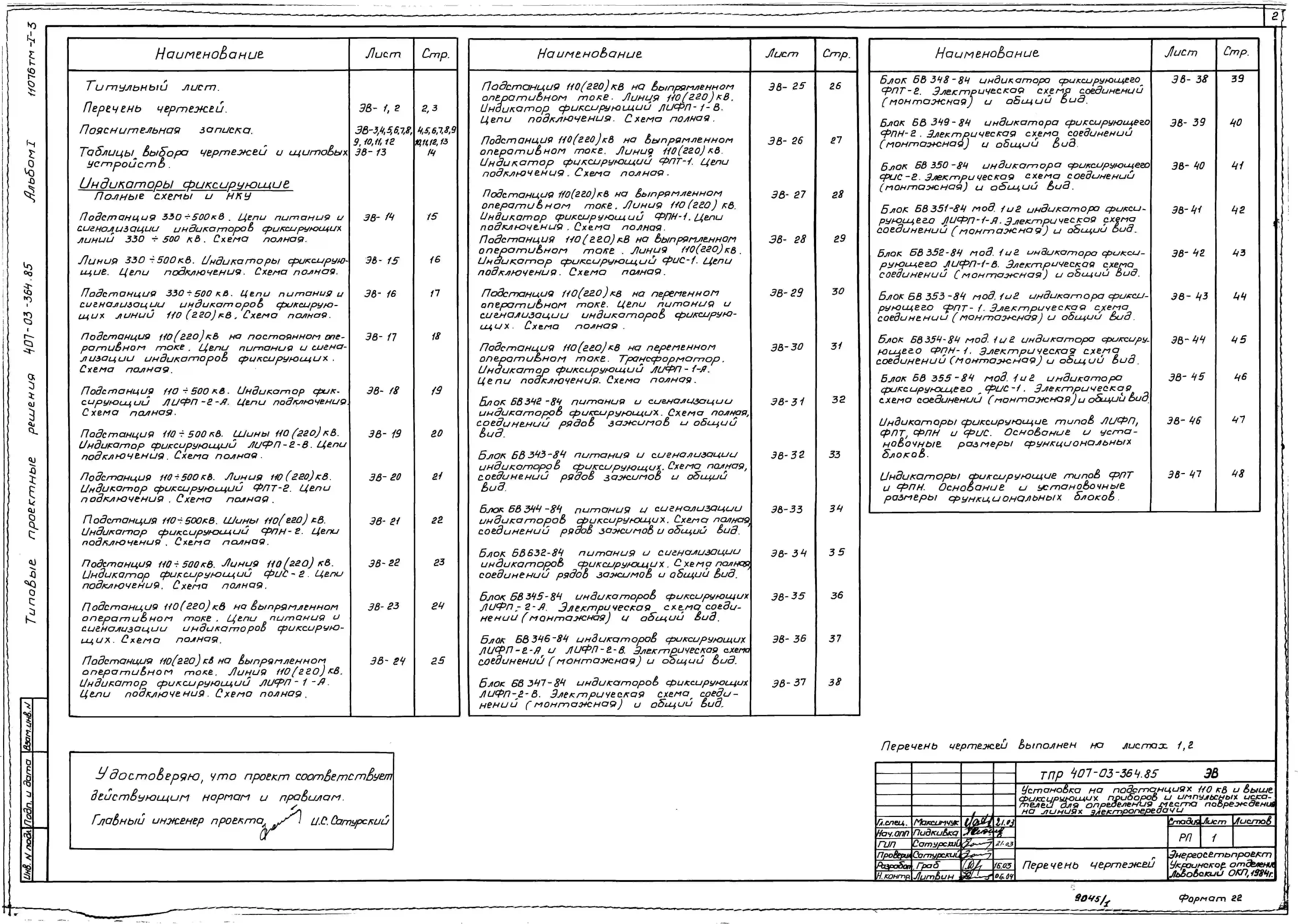 Типовой проект 407-03-364.85 Установка на подстанциях 110 кВ и выше фиксирующих приборов и импульсных искателей