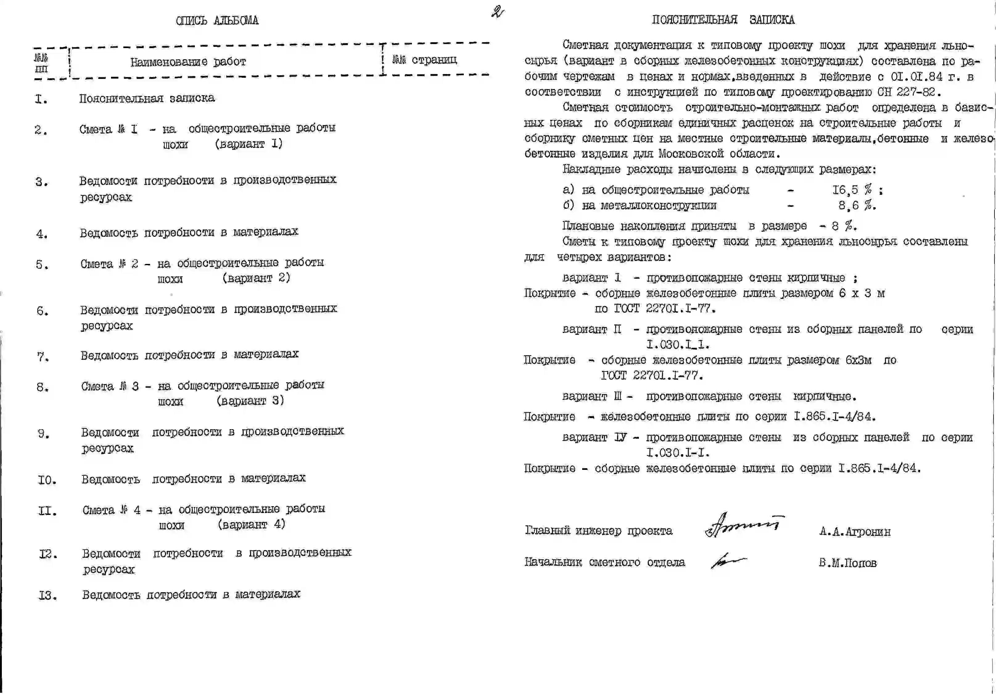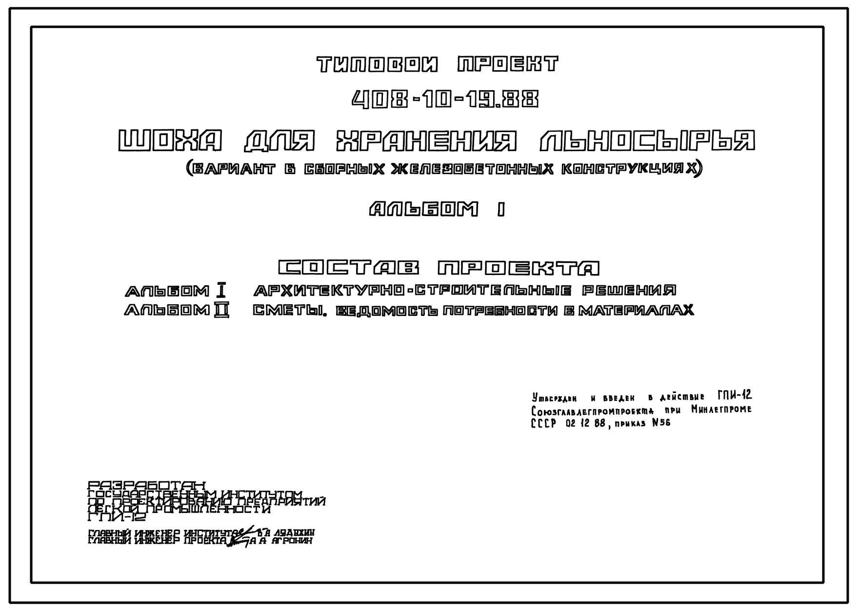 Типовой проект 408-10-19.88 Шоха для хранения льносырья (вариант в сборных железобетонных конструкциях).