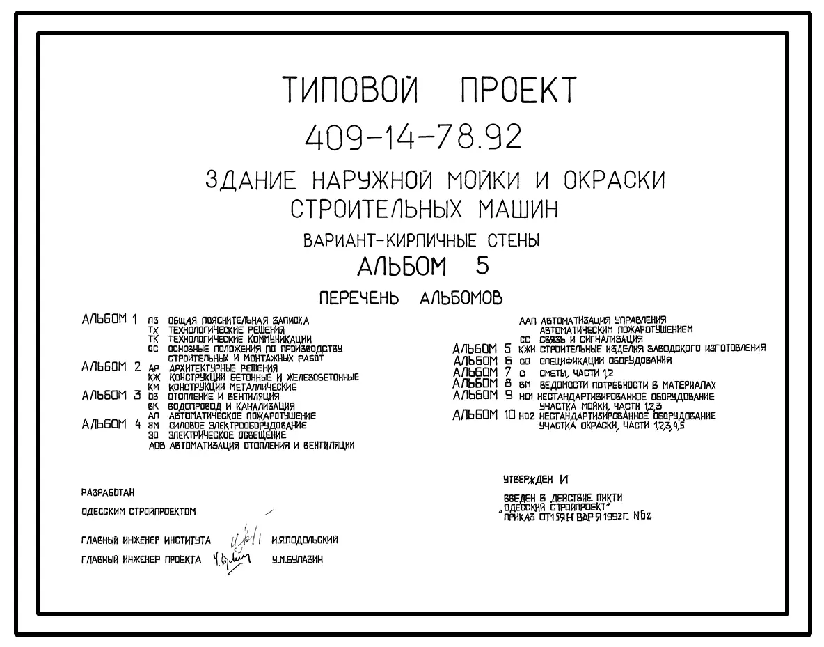 Типовой проект 409-14-78.92 Здание наружной мойки и окраски строительных машин. Вариант – кирпичные стены