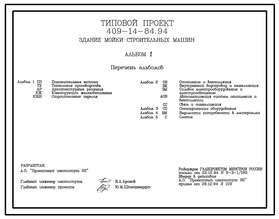 Типовой проект 409-14-84.94 Здание мойки строительных машин