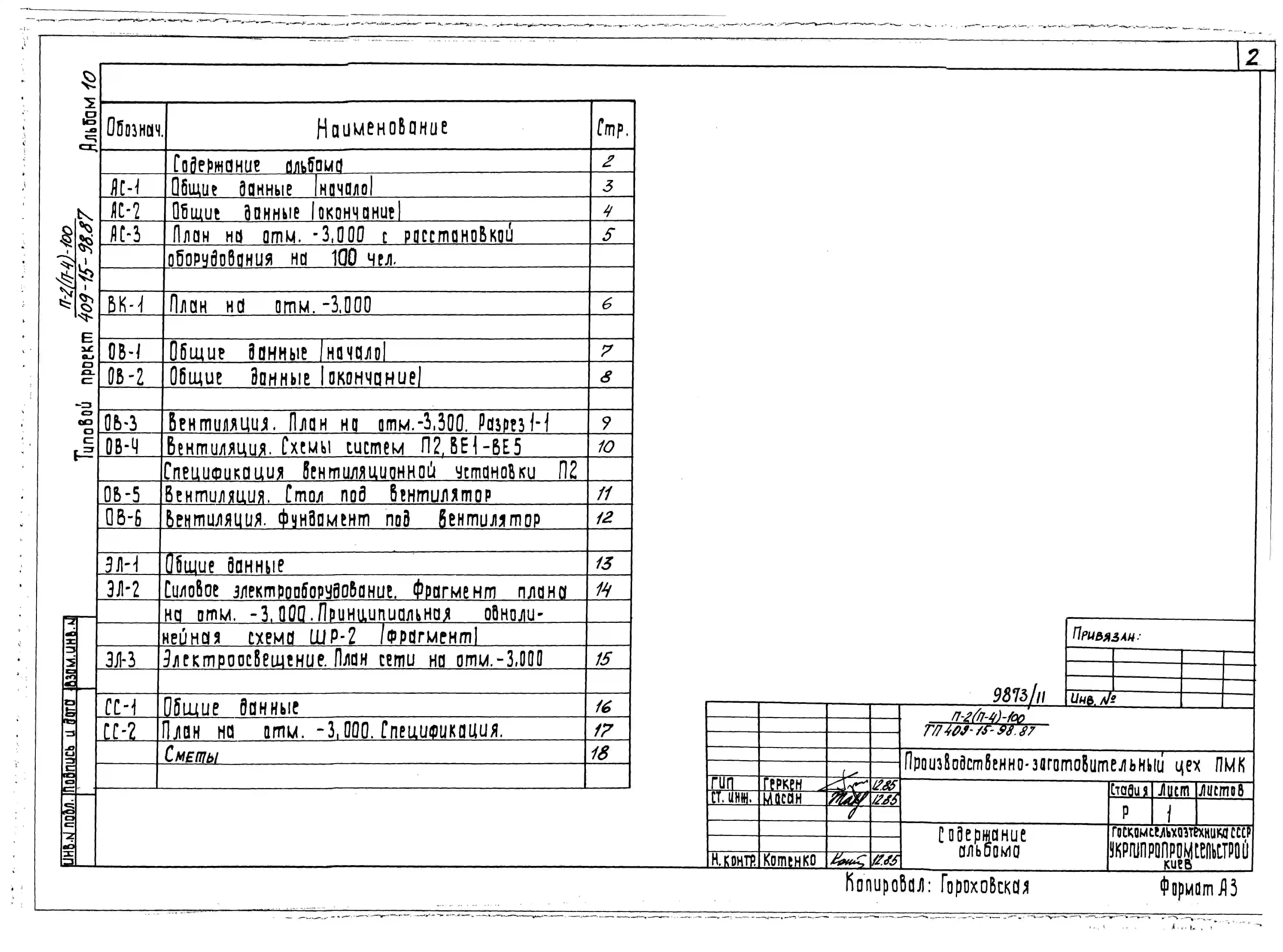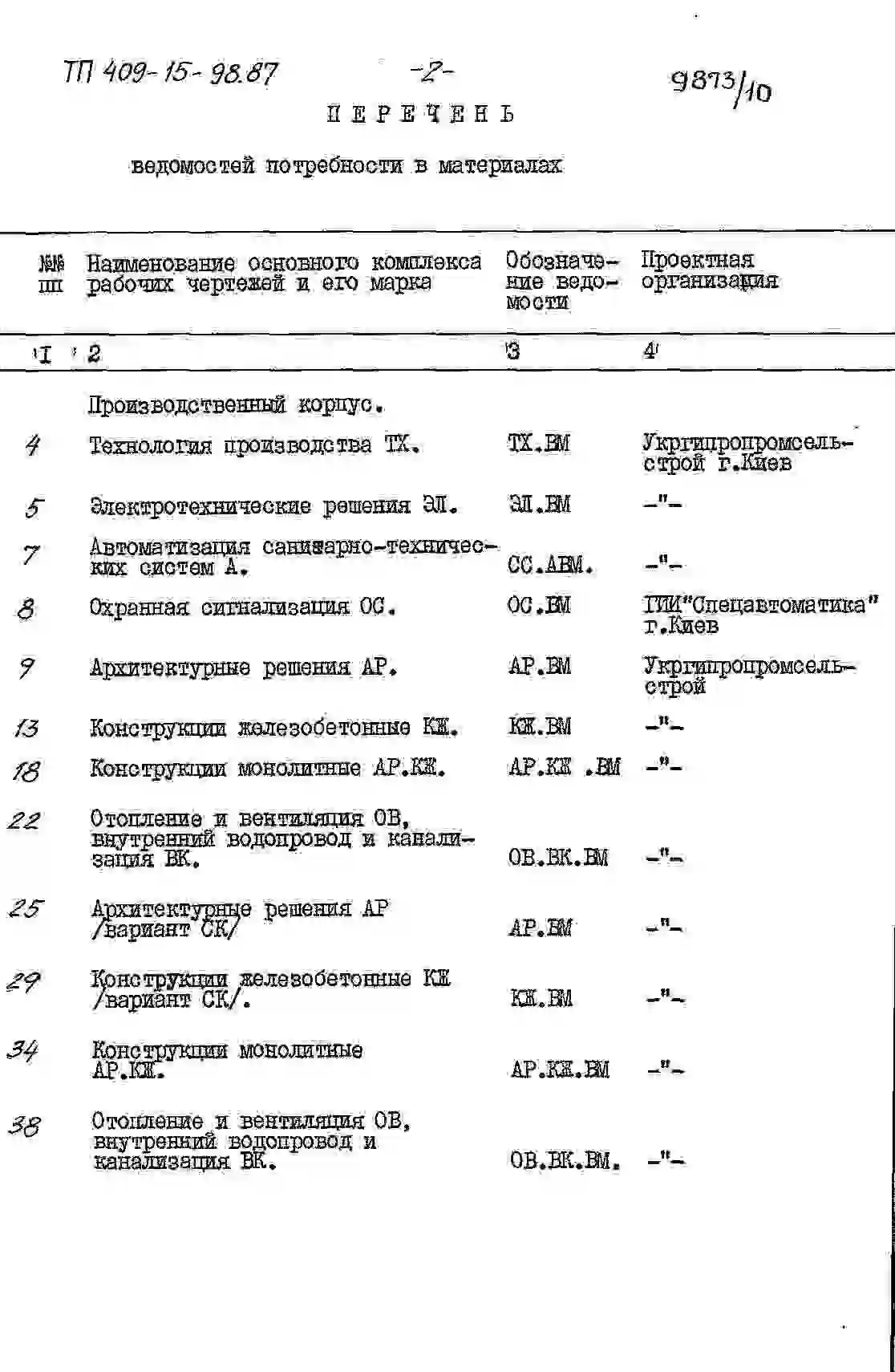 Типовой проект 409-15-99.87 Производственно-заготовительный цех ПМК (в железобетонных конструкциях типа «Канск»)