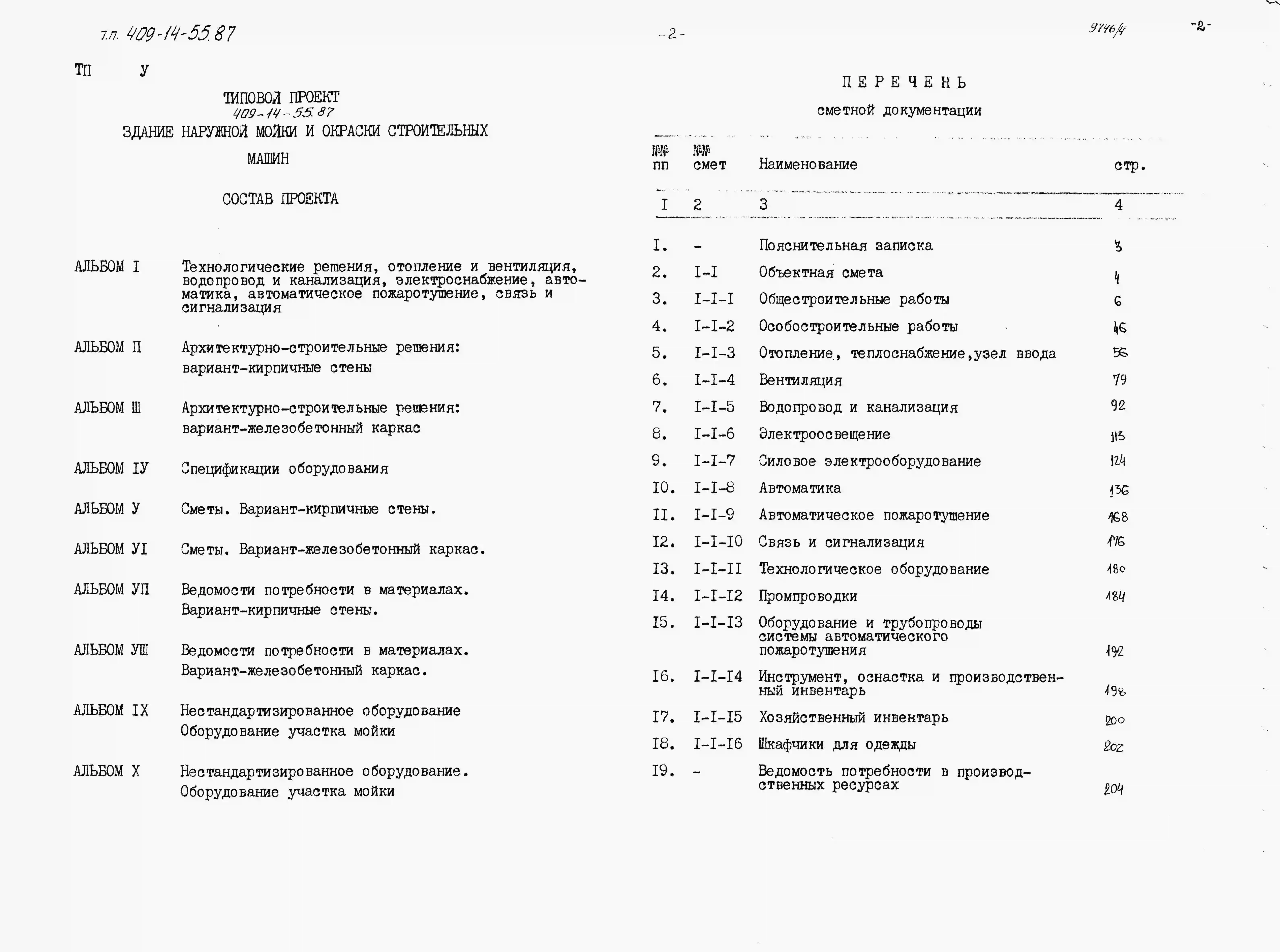 Типовой проект 409-14-54.87 Здание наружной мойки и окраски строительных машин (железобетонный каркас)