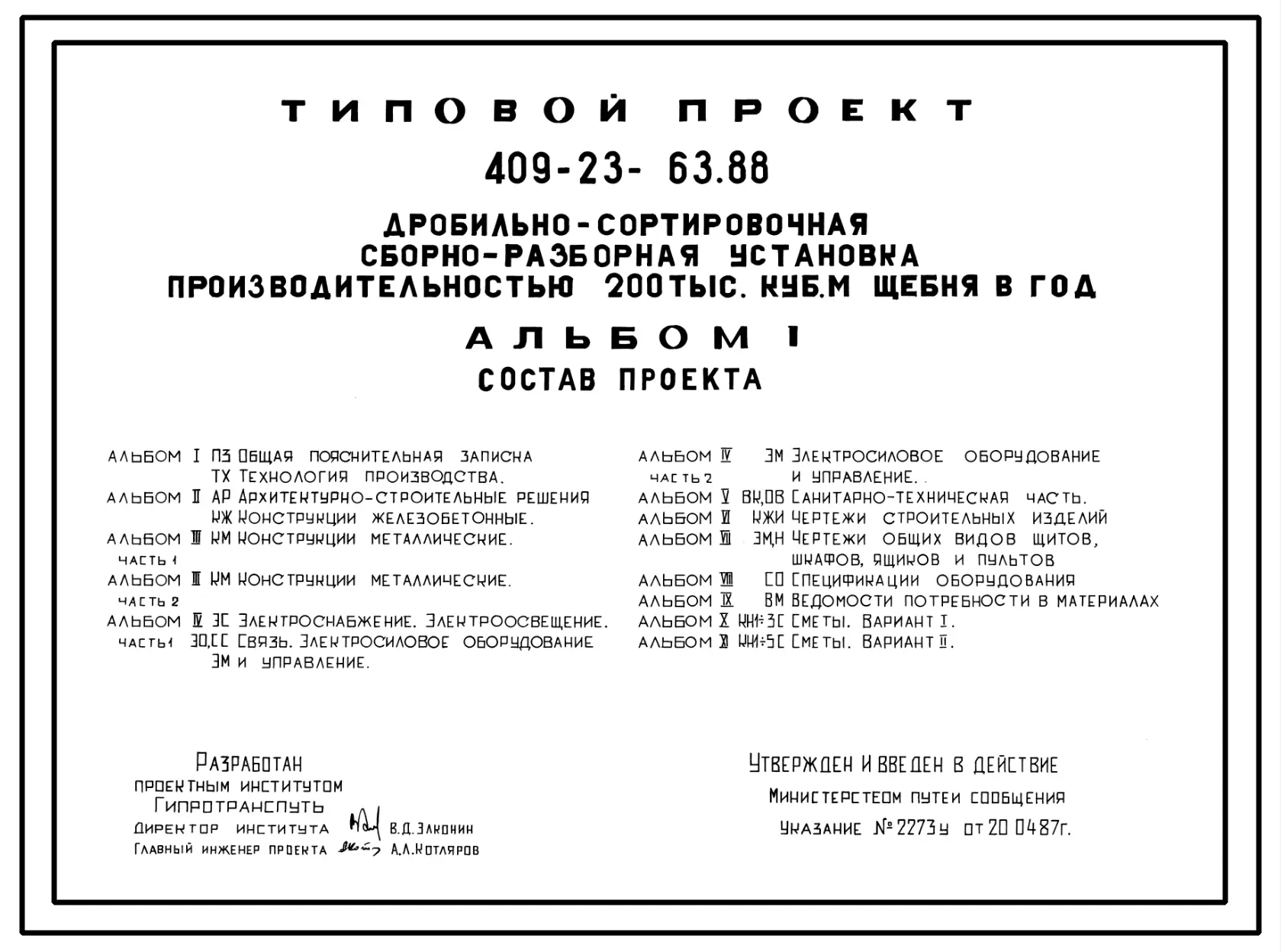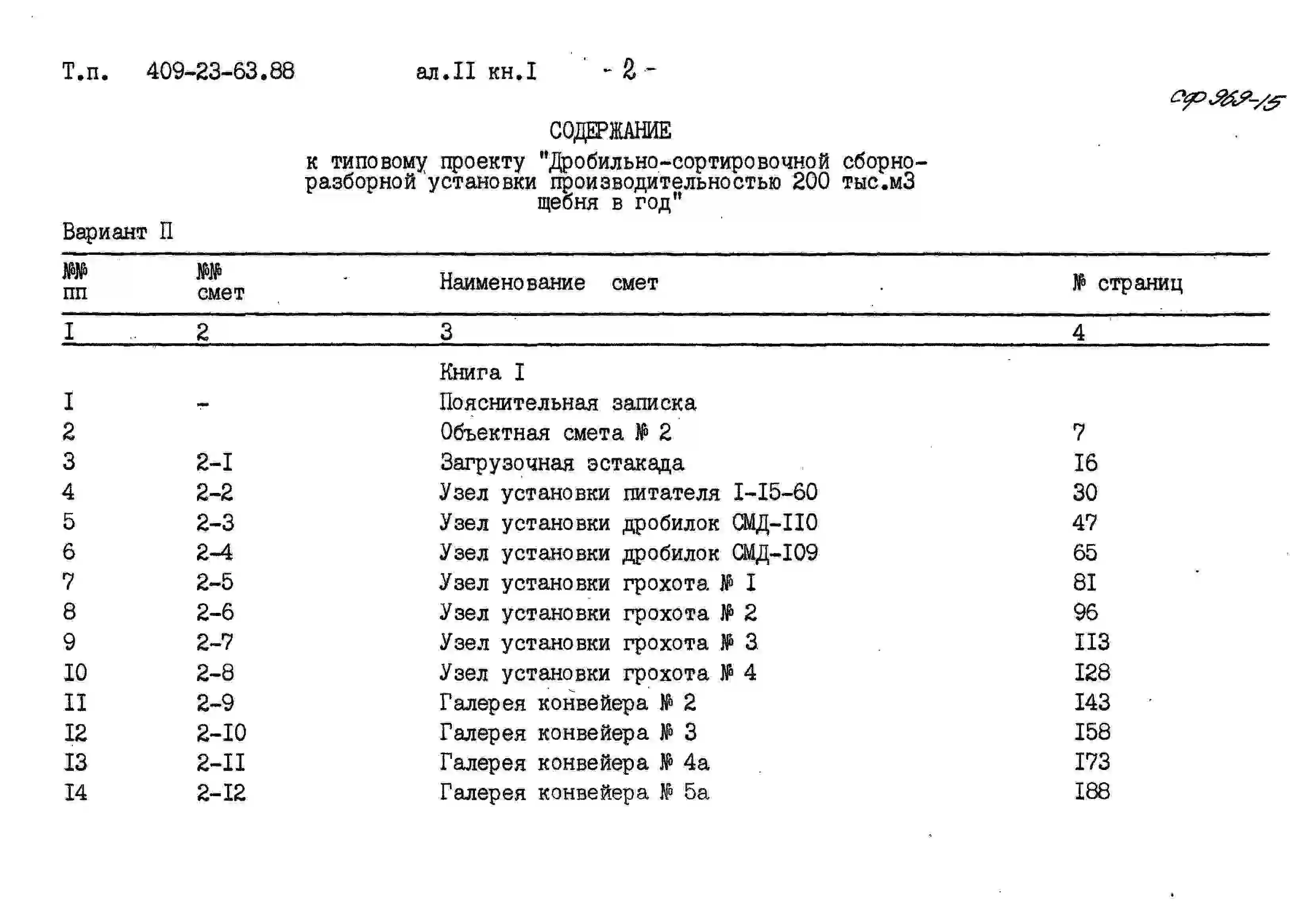 Типовой проект 409-23-63.88 Дробильно-сортировочная сборно-разборная установка производительностью 200 тыс. м3 щебня в год. Полный исходный проект. Все разделы.