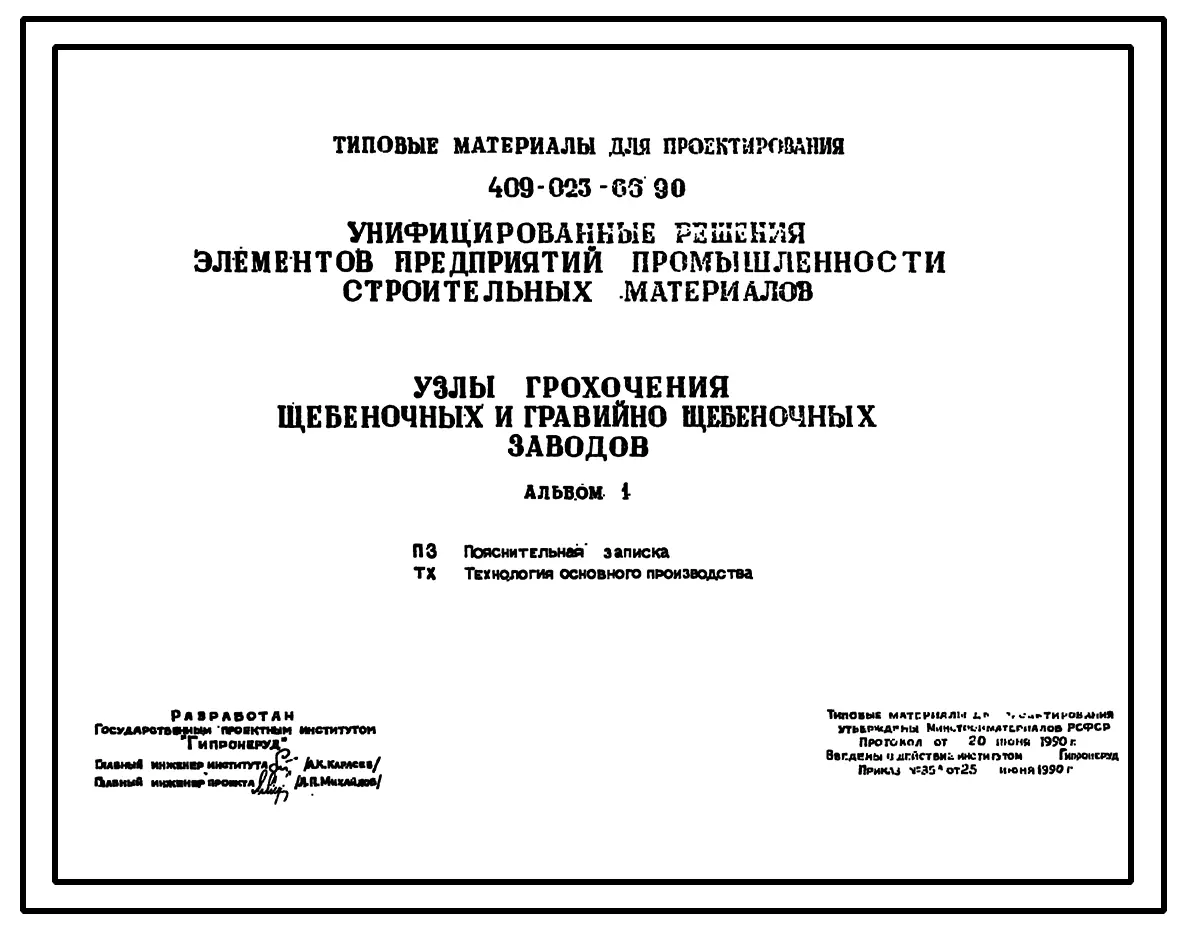 Типовой проект 409-023-66.90 Узлы грохочения щебеночных и гравийно-щебеночных заводов