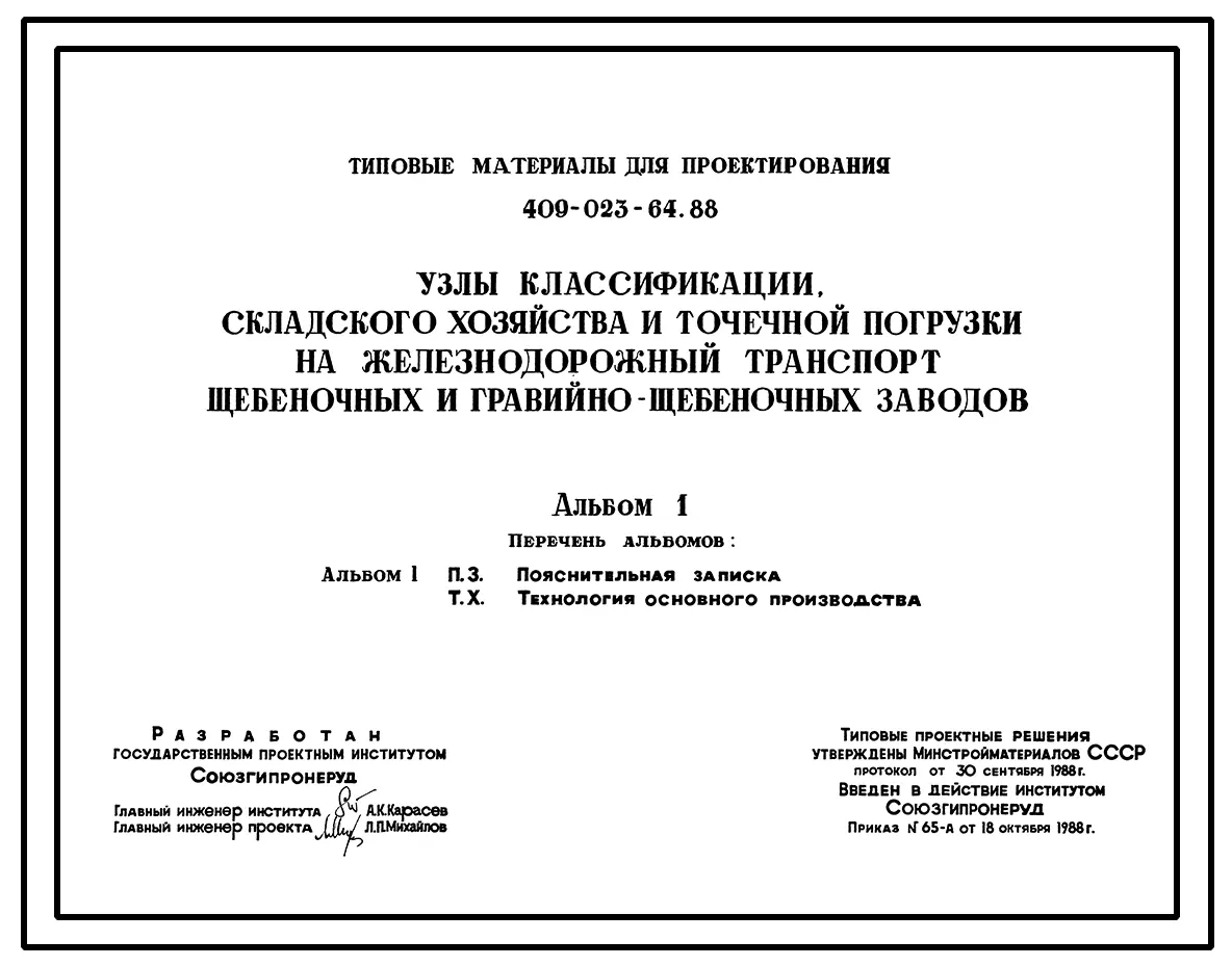 Типовой проект 409-023-64.88 Узлы классификации, складского хозяйства и точечной погрузки на железнодорожный транспорт щебеночных и гравийно-щебеночных заводов