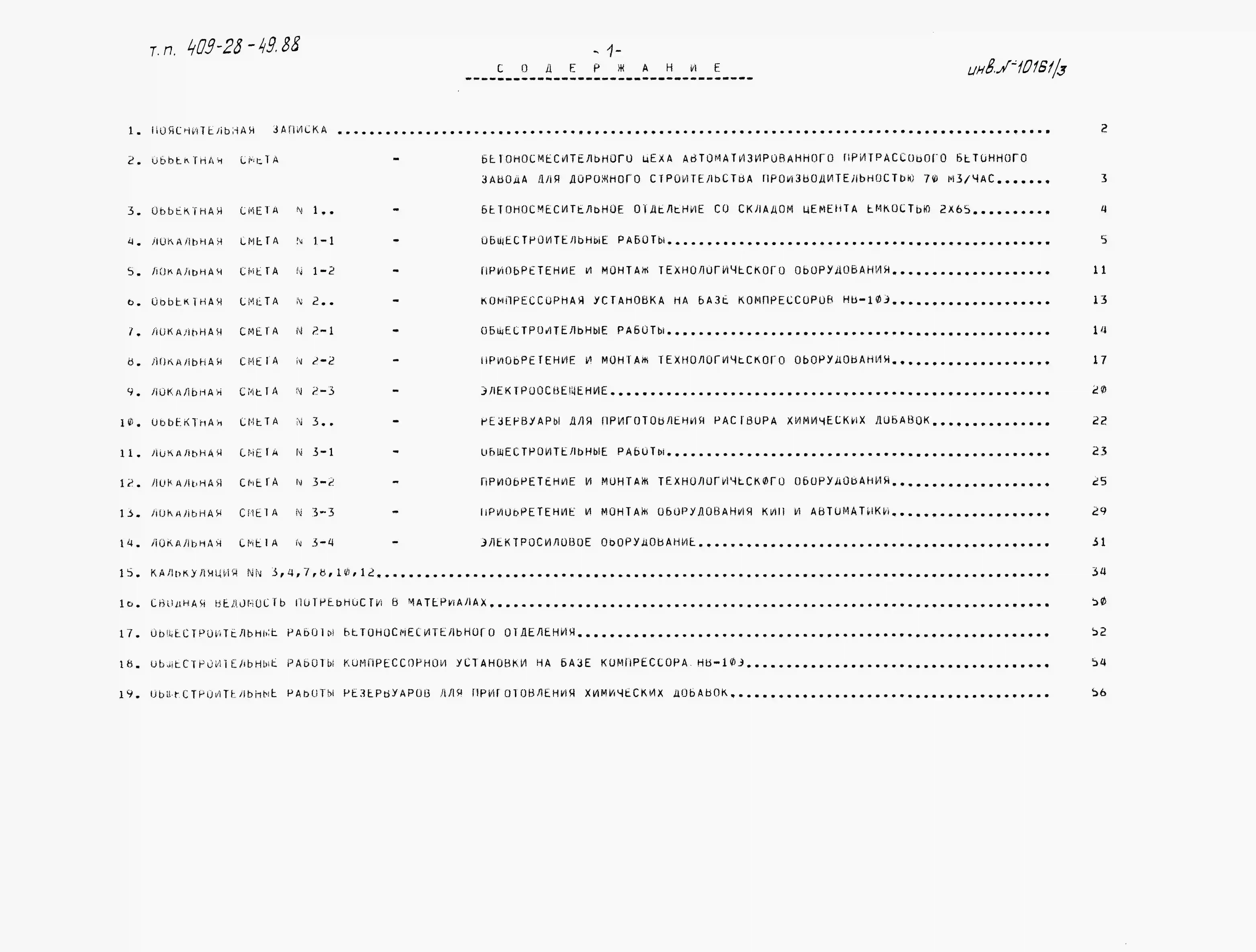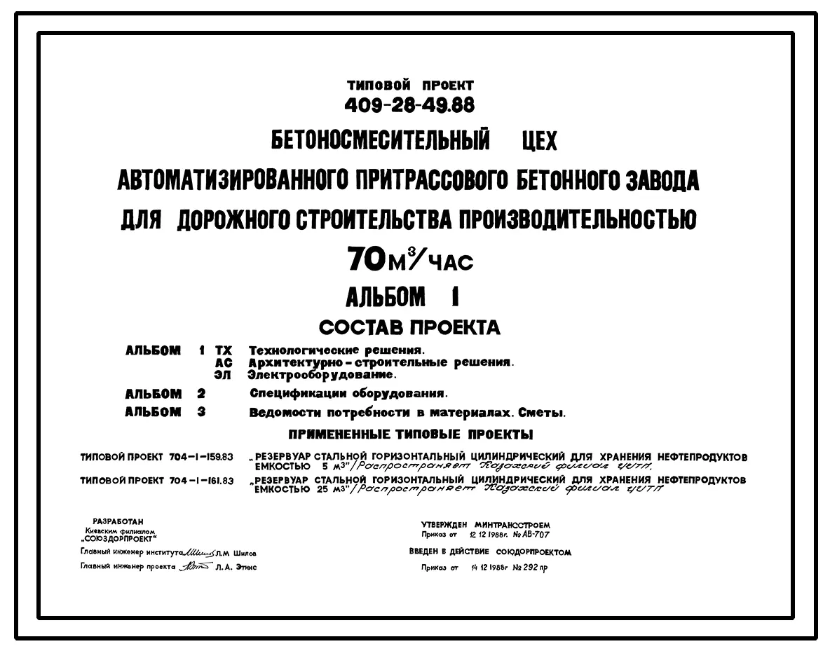 ТИповой проект 409-28-49.88 Бетоносмесительный цех автоматизированного притрассового бетонного завода для дорожного строительства производительностью 70м3/ч