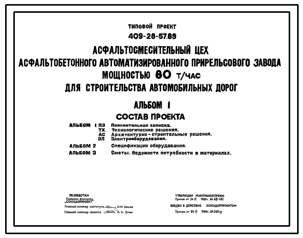 Типовой проект 409-28-57.89 Асфальтосмесительный цех асфальтобетонного автоматизированного прирельсового завода мощностью 80т/час для строительства автомобильных дорог