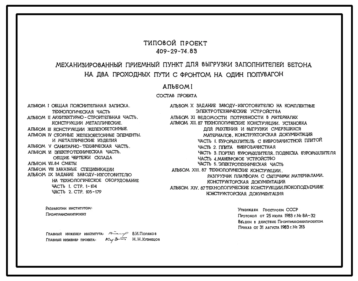 Типовой проект 409-29-74.83 Механизированный приемный пункт для выгрузки заполнителей бетона на два проходных пути с фронтом на один полувагон.