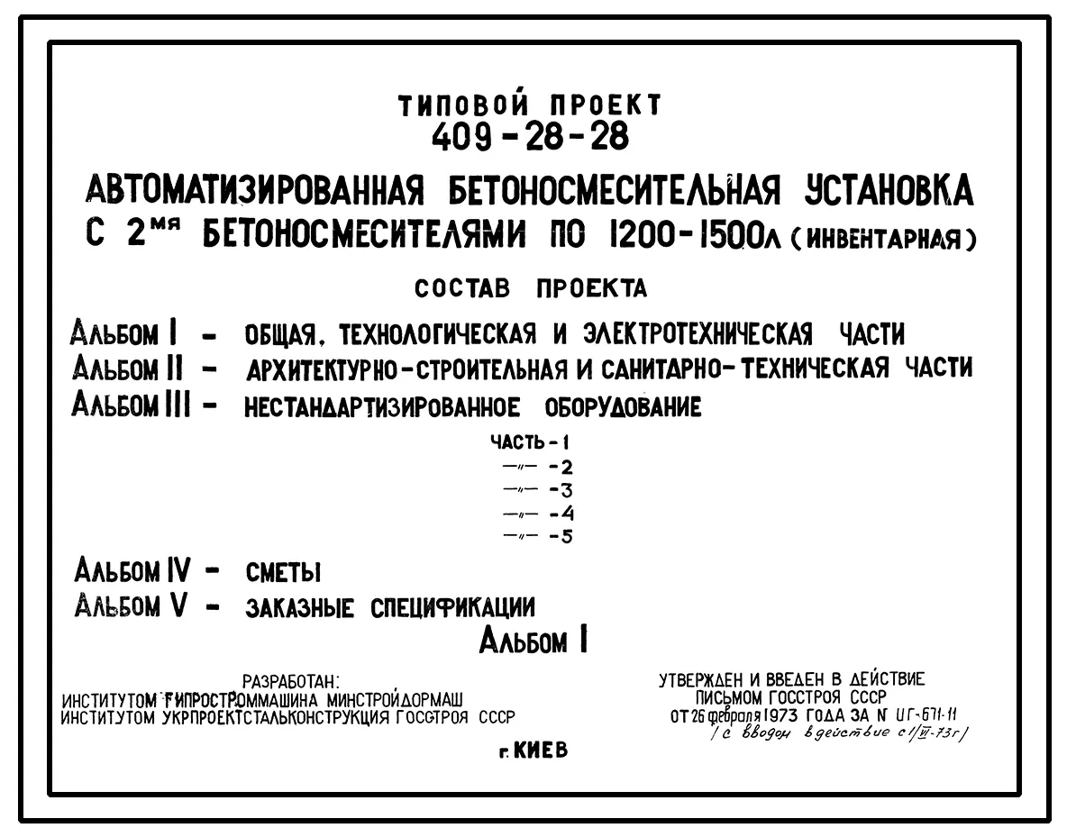 Типовой проект 409-28-28 Автоматизированная бетоносмесительная установка с 2-мя бетоносмесителями по 1200-1500 л (инвентарная)