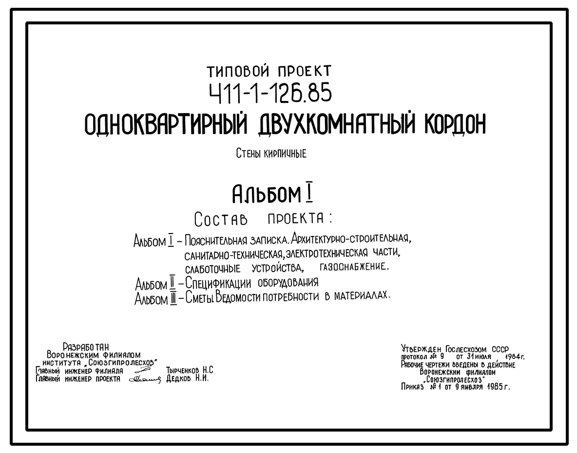 Типовой проект 411-1-126.85 Одноквартирный двухкомнатный кордон. Стены кирпичные