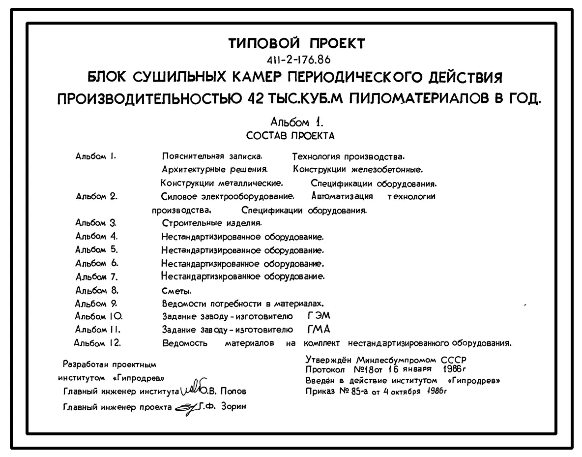 Типовой проект 411-2-176.86 Блок сушильных камер периодического действия производительностью 42 тыс.м3 пиломатериалов в год