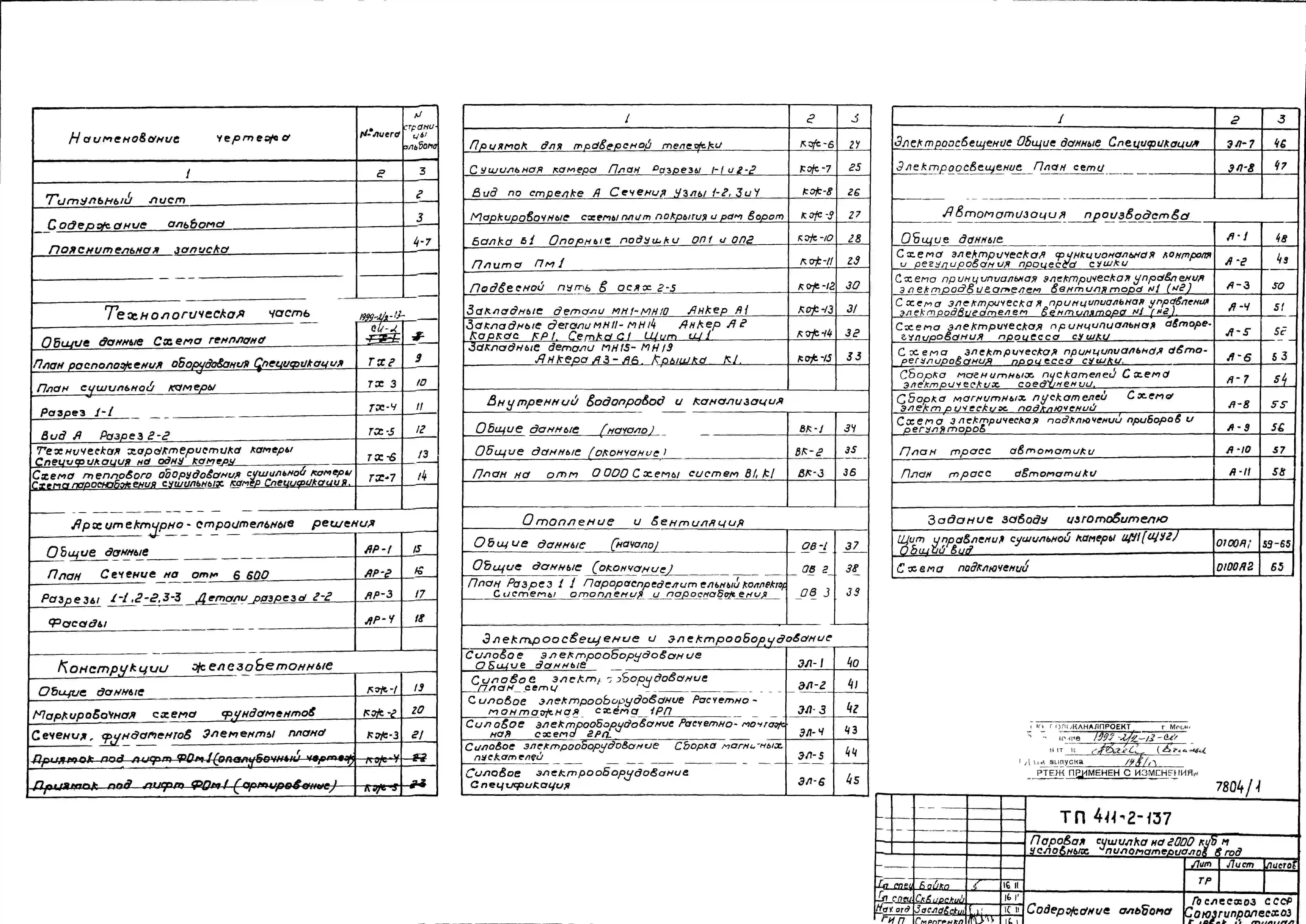 Типовой проект 411-2-137 Паровая сушилка на 2000 м3 условных пиломатериалов в год