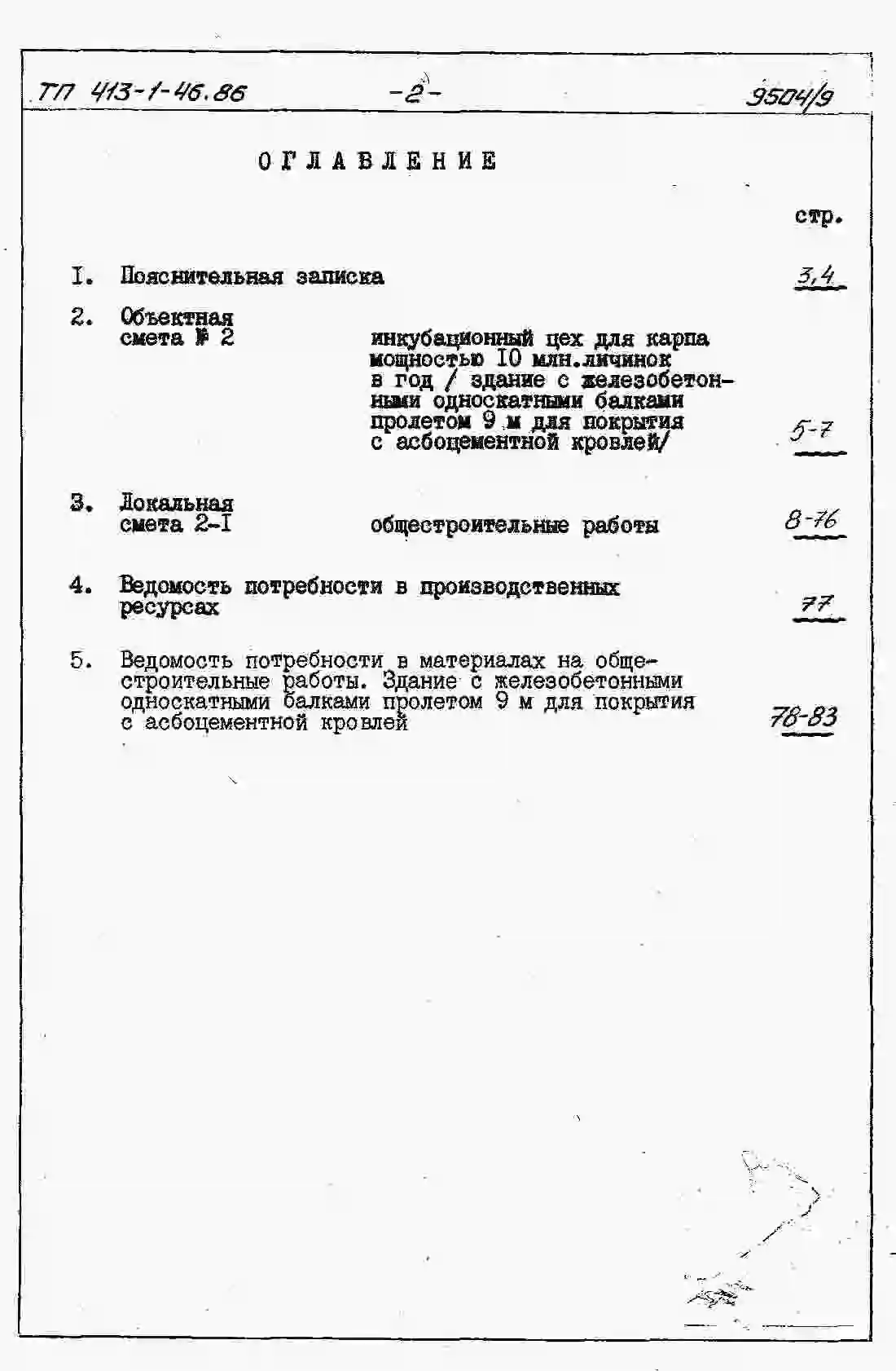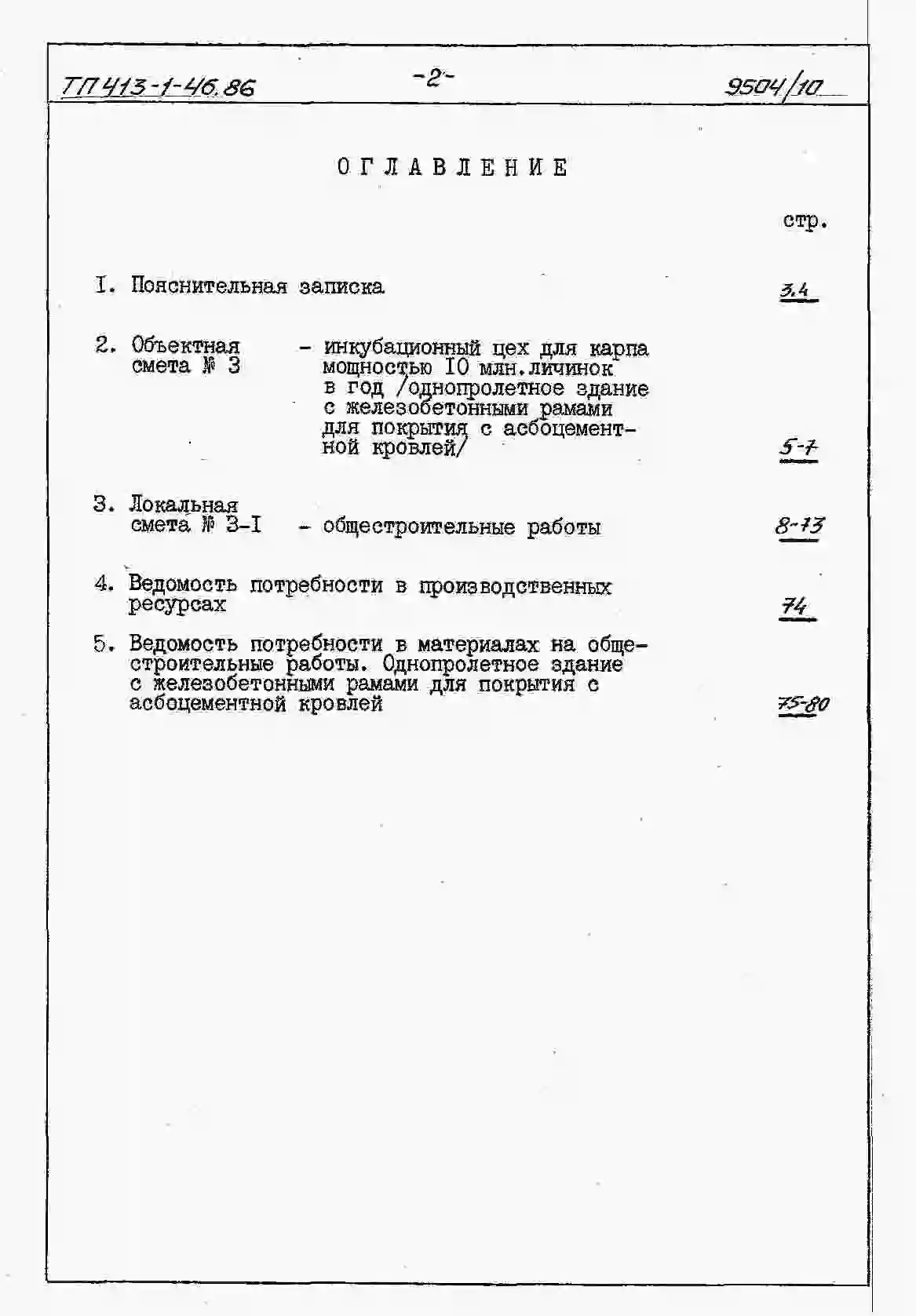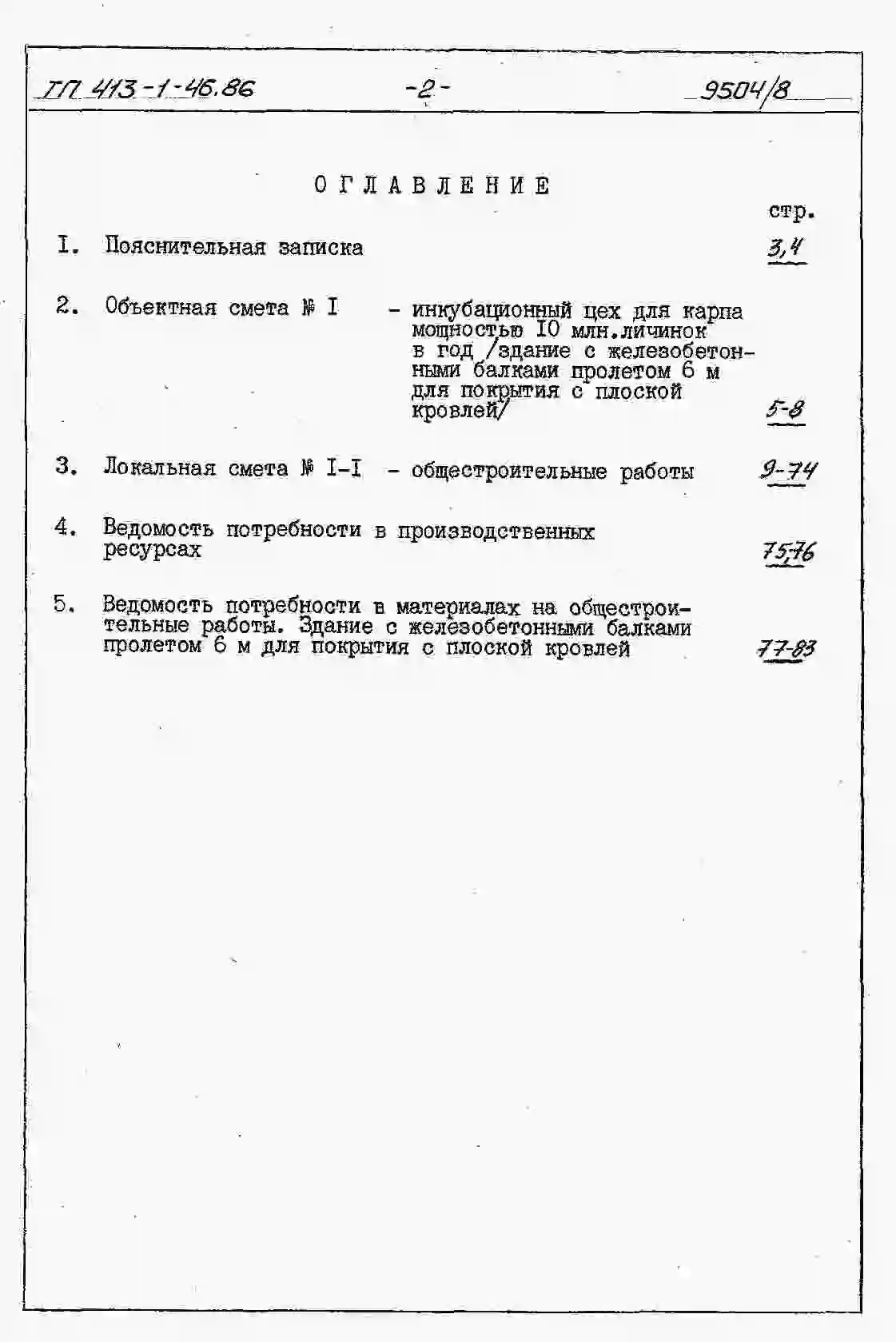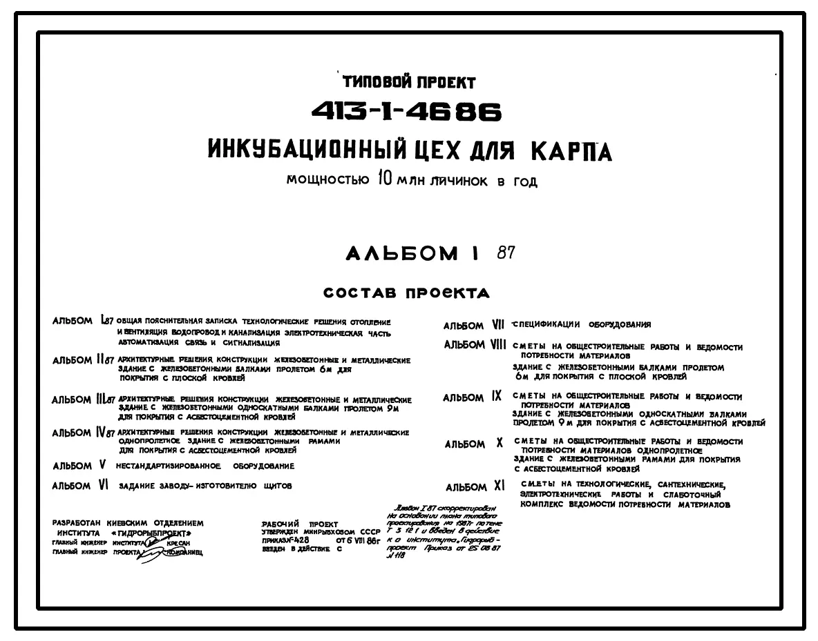 Типовой проект 413-1-46.86 Инкубационный цех для карпа мощностью 10 млн. личинок в год