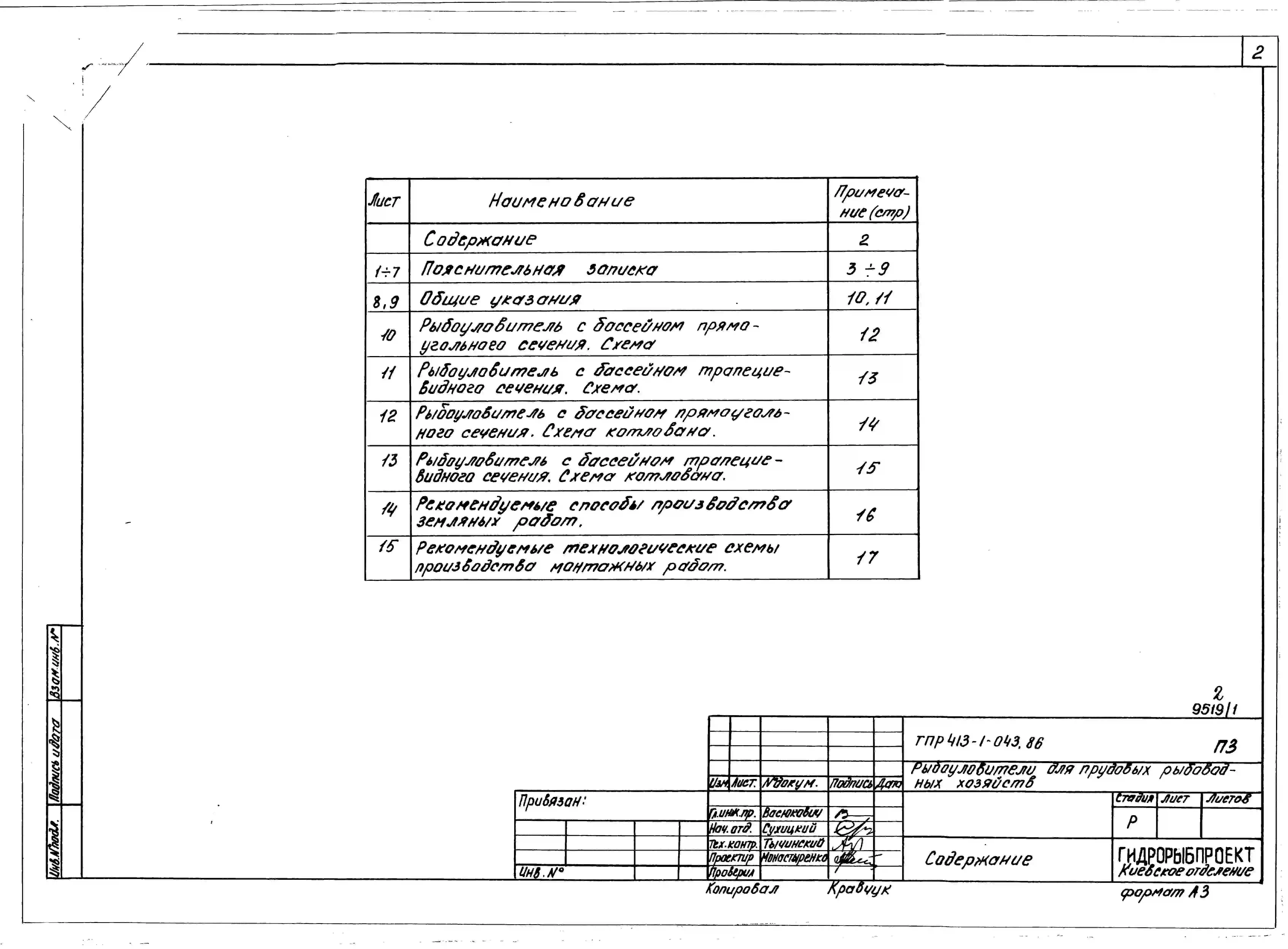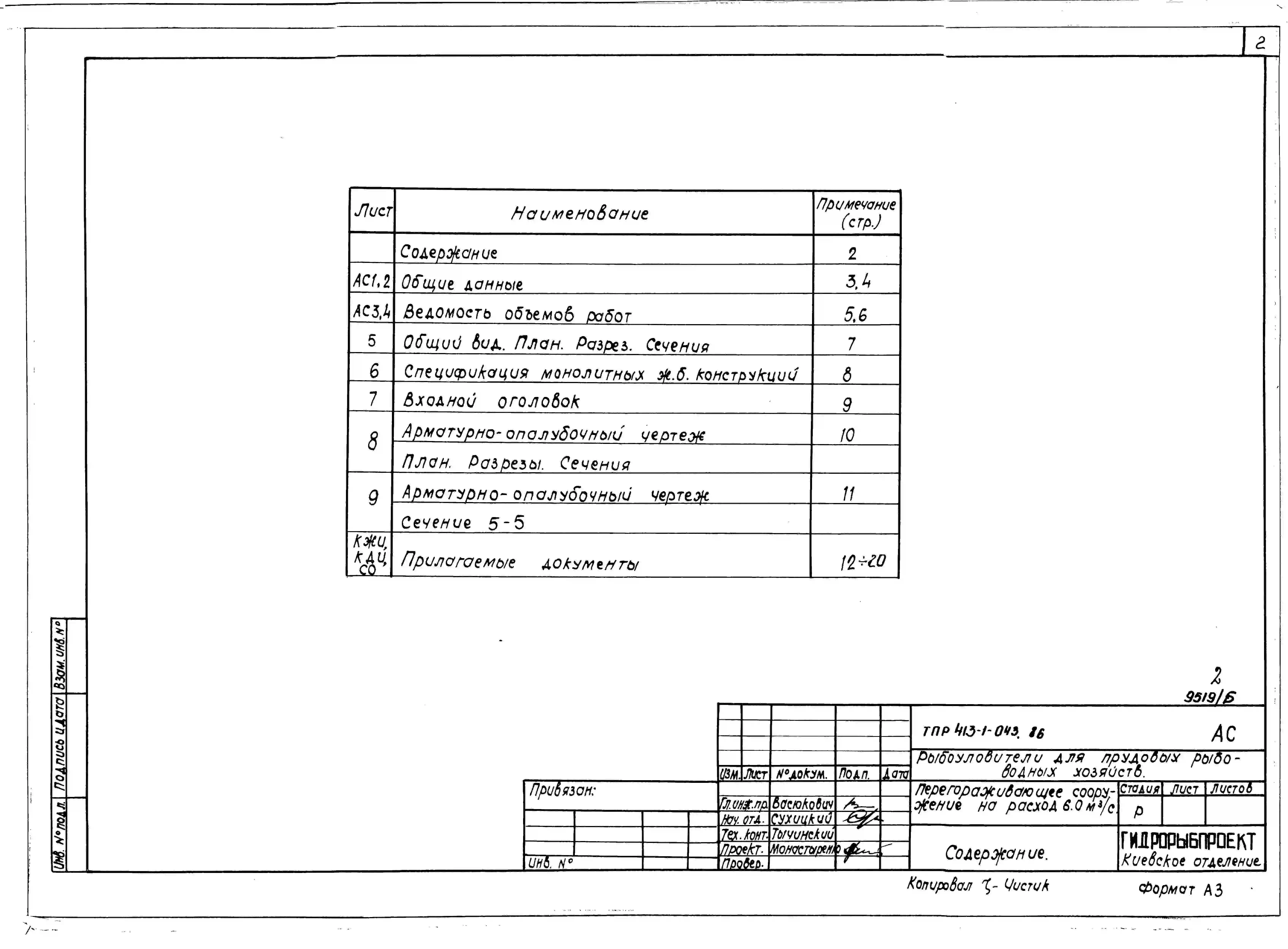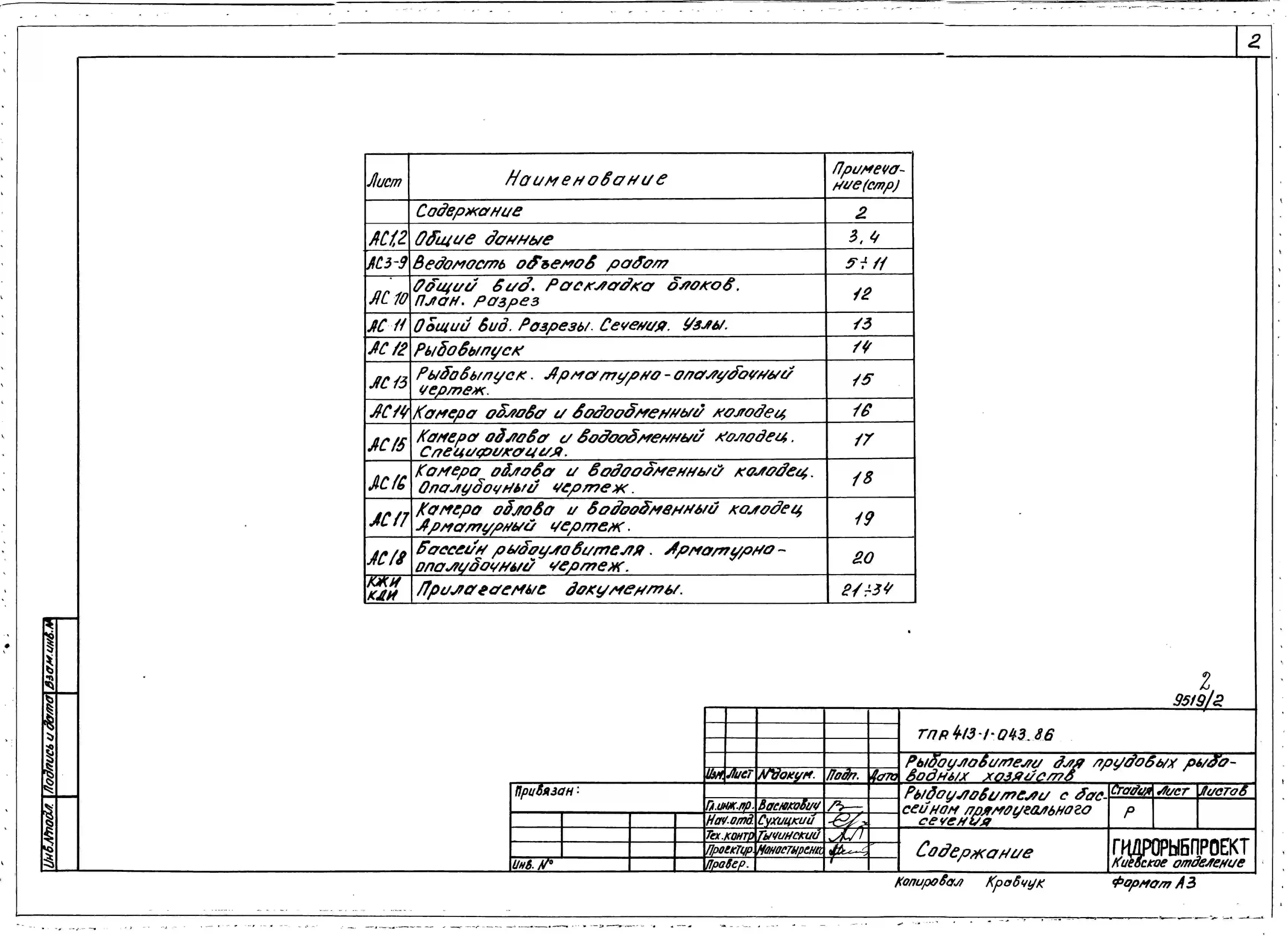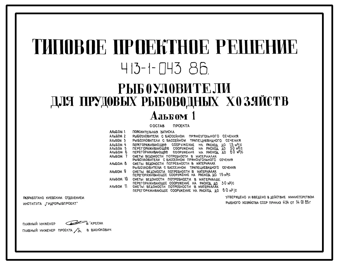 Типовой проект 413-1-043.86 Рыбоуловители для прудовых рыбоводных хозяйств