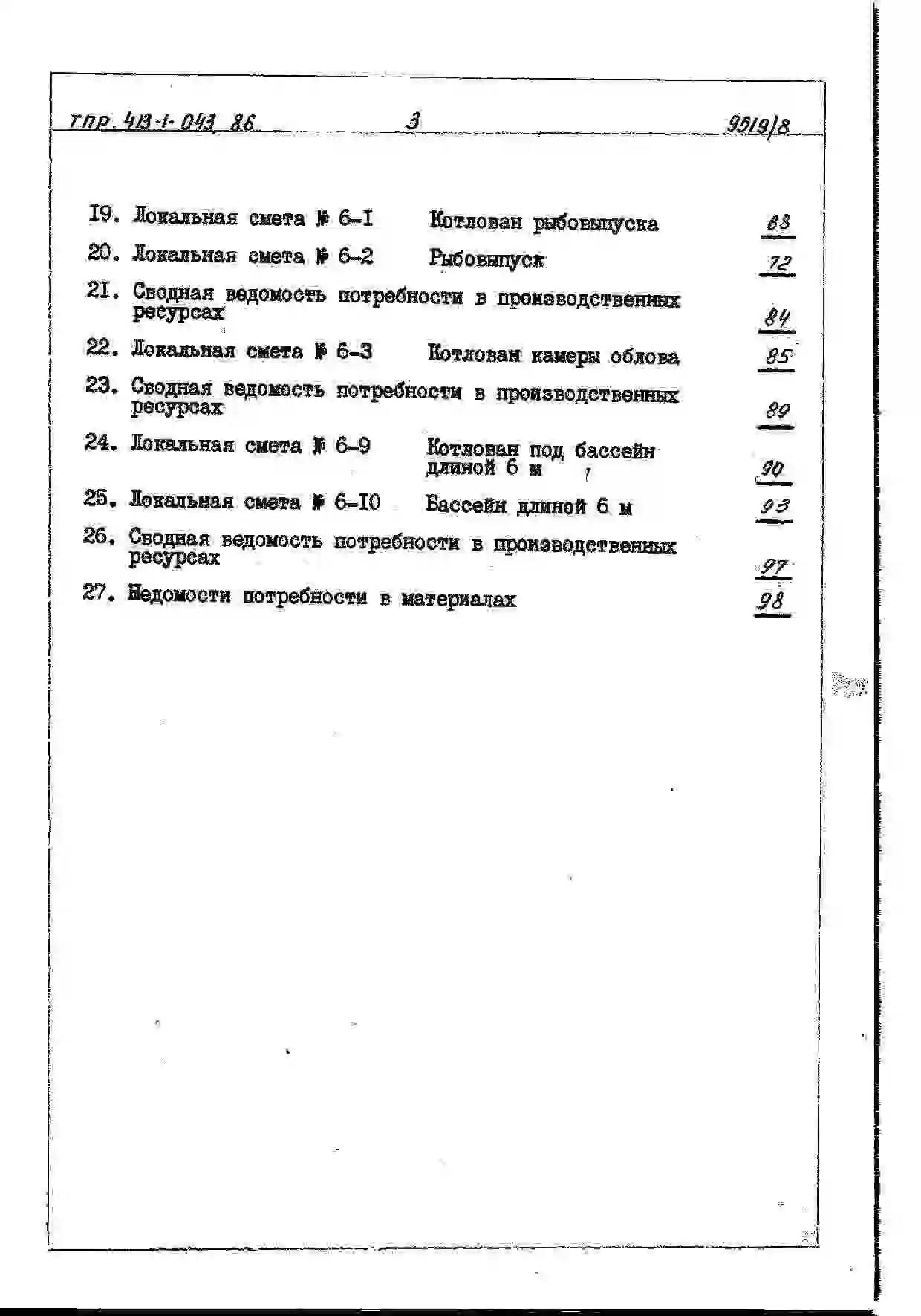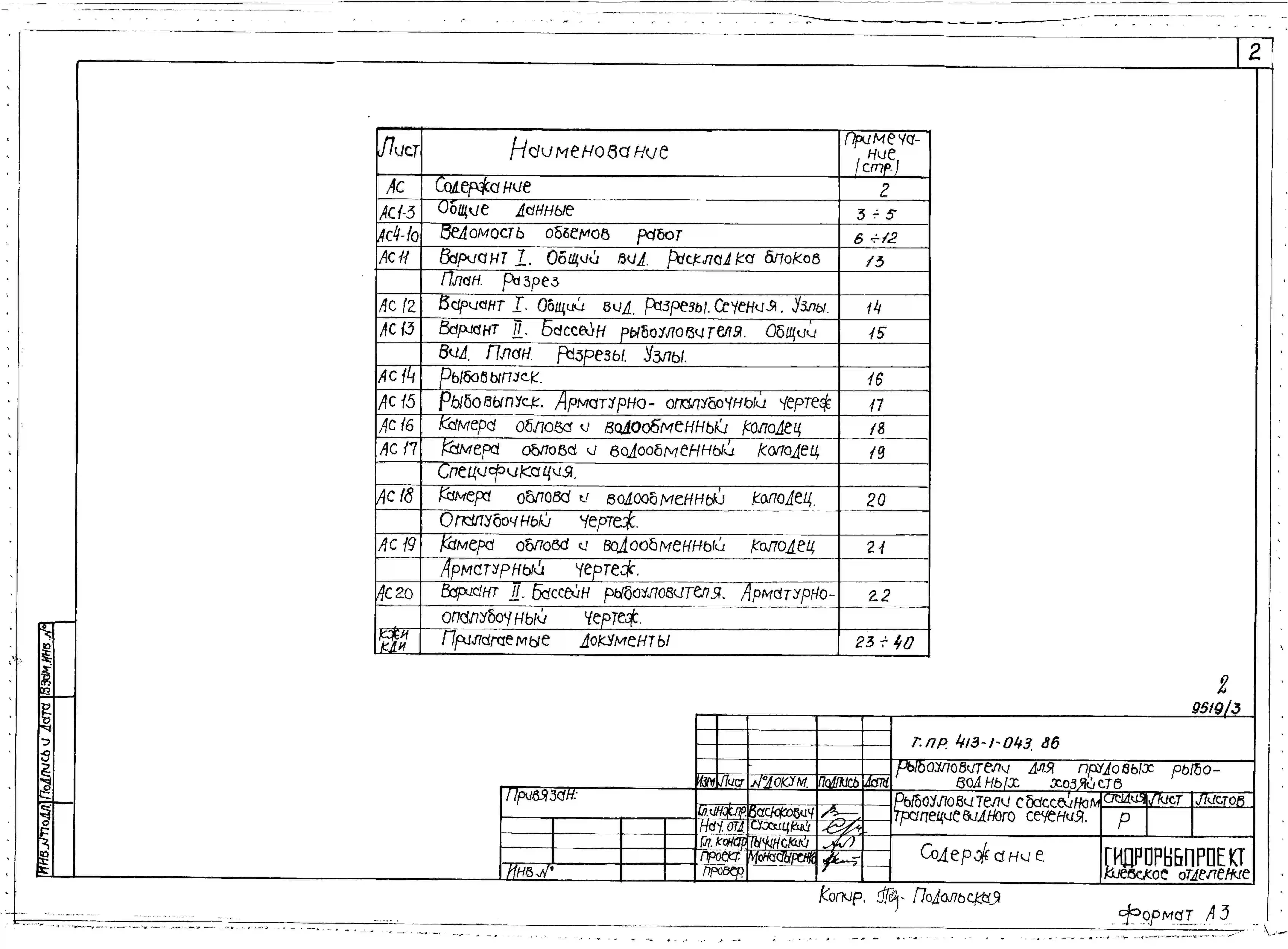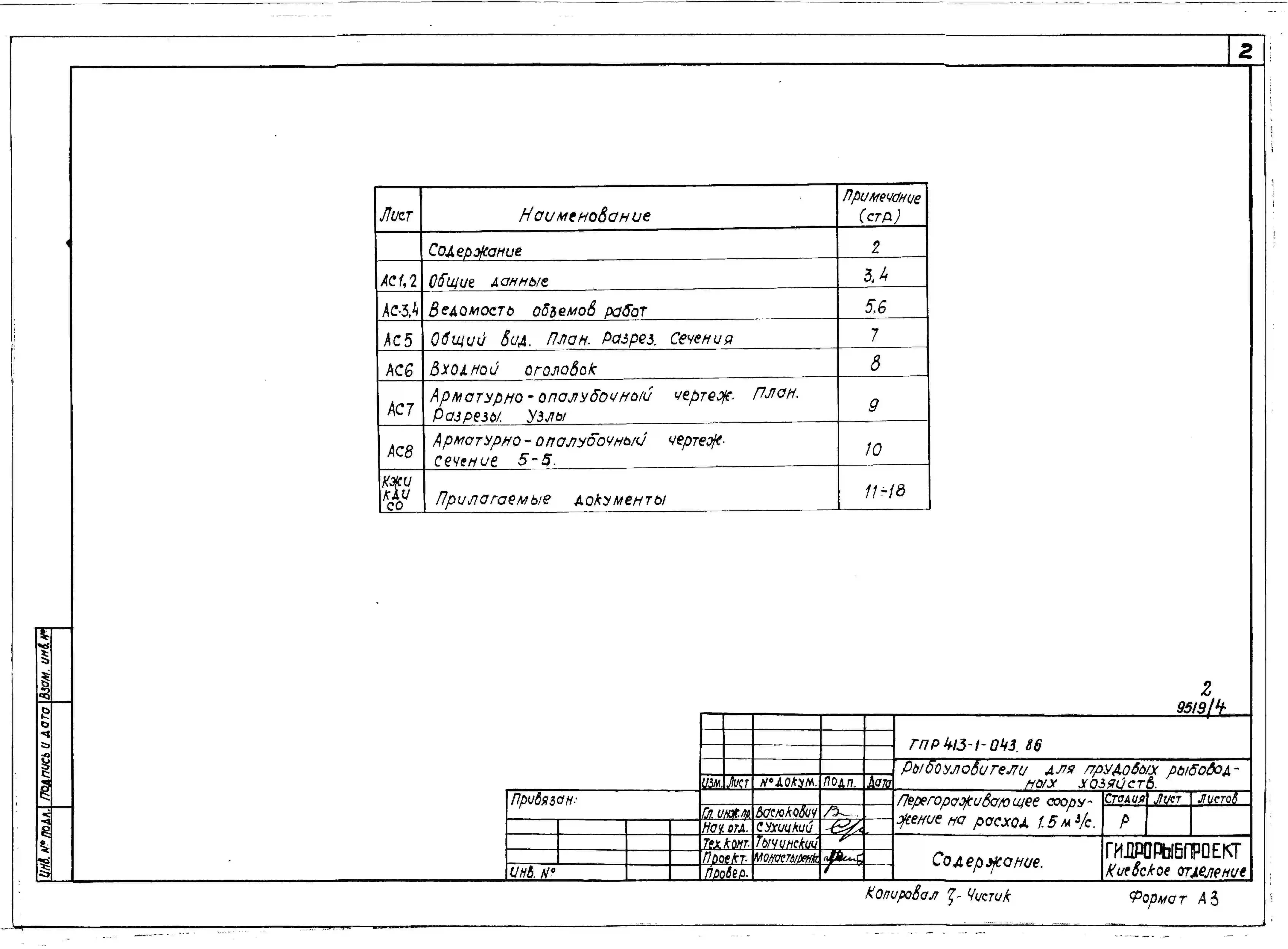 Типовой проект 413-1-043.86 Рыбоуловители для прудовых рыбоводных хозяйств