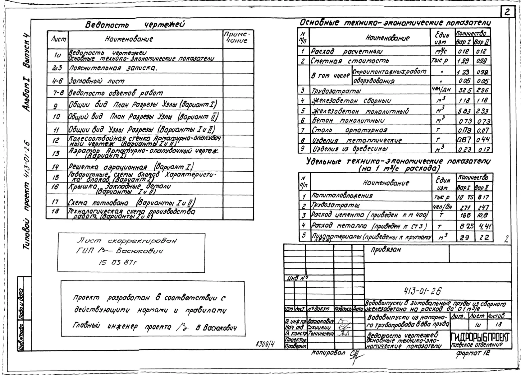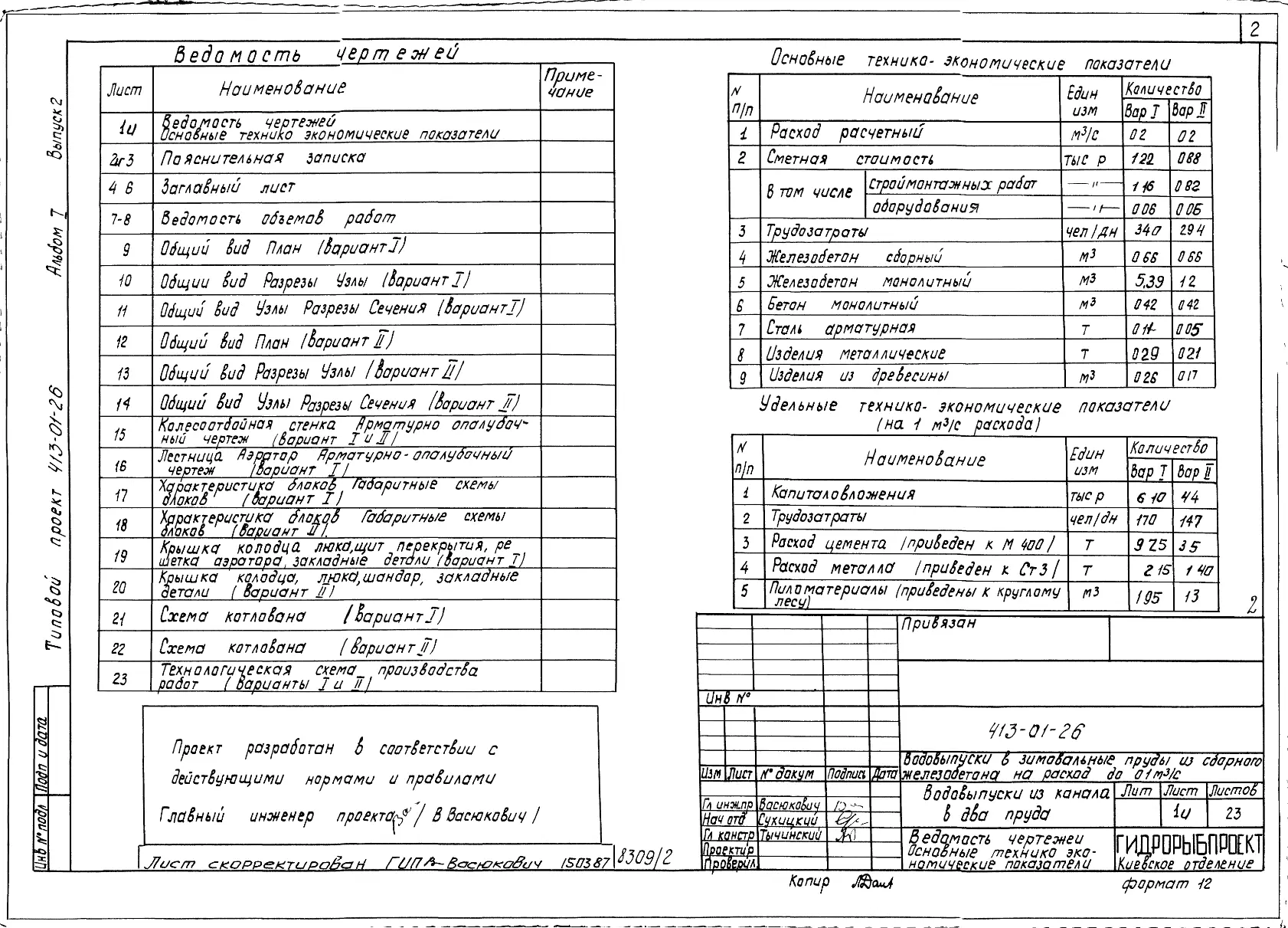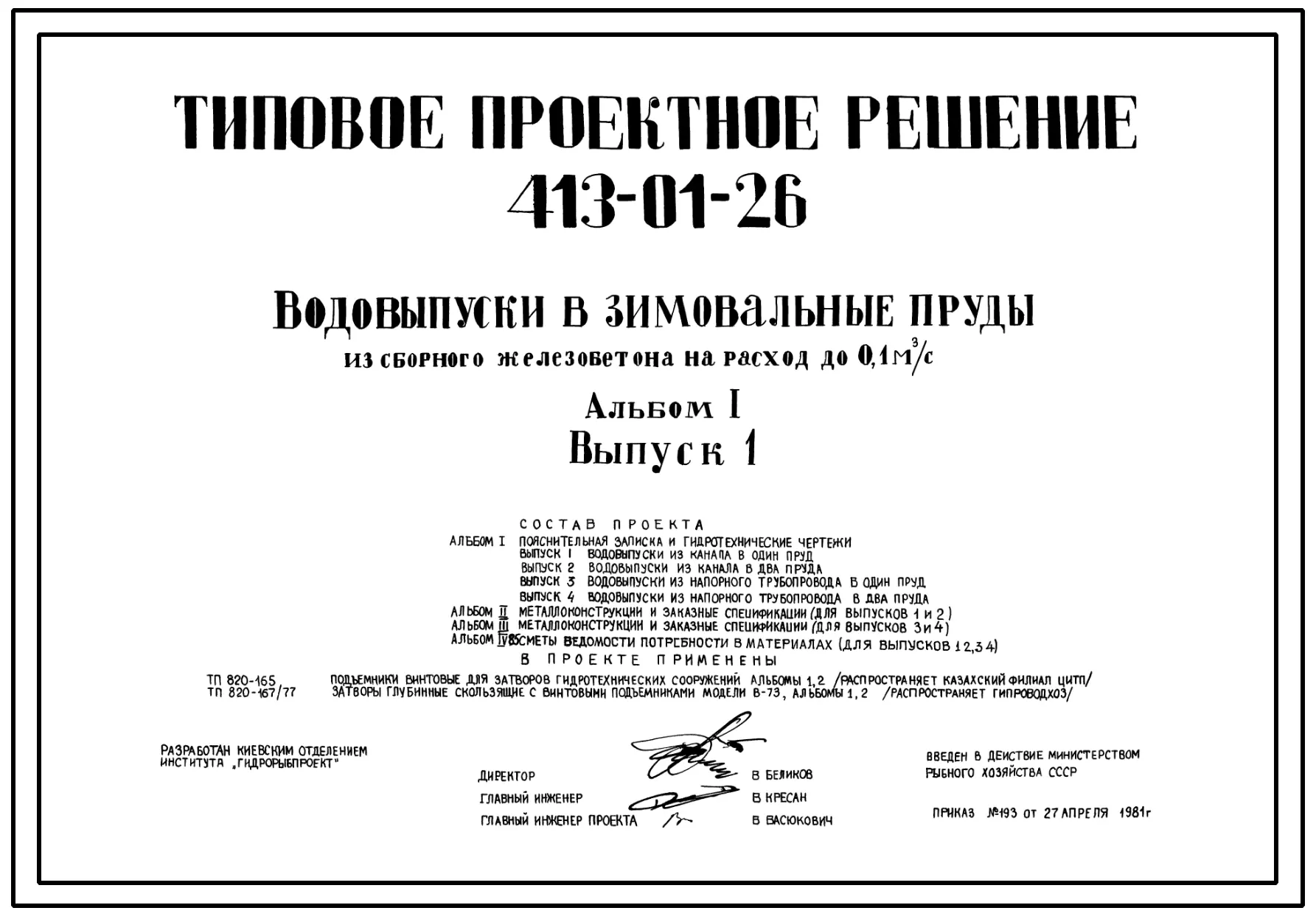 Типовой проект 413-01-26 Водовыпуски в зимовальныепруды из сборного железобетона на расход до 0,1 м.куб/с