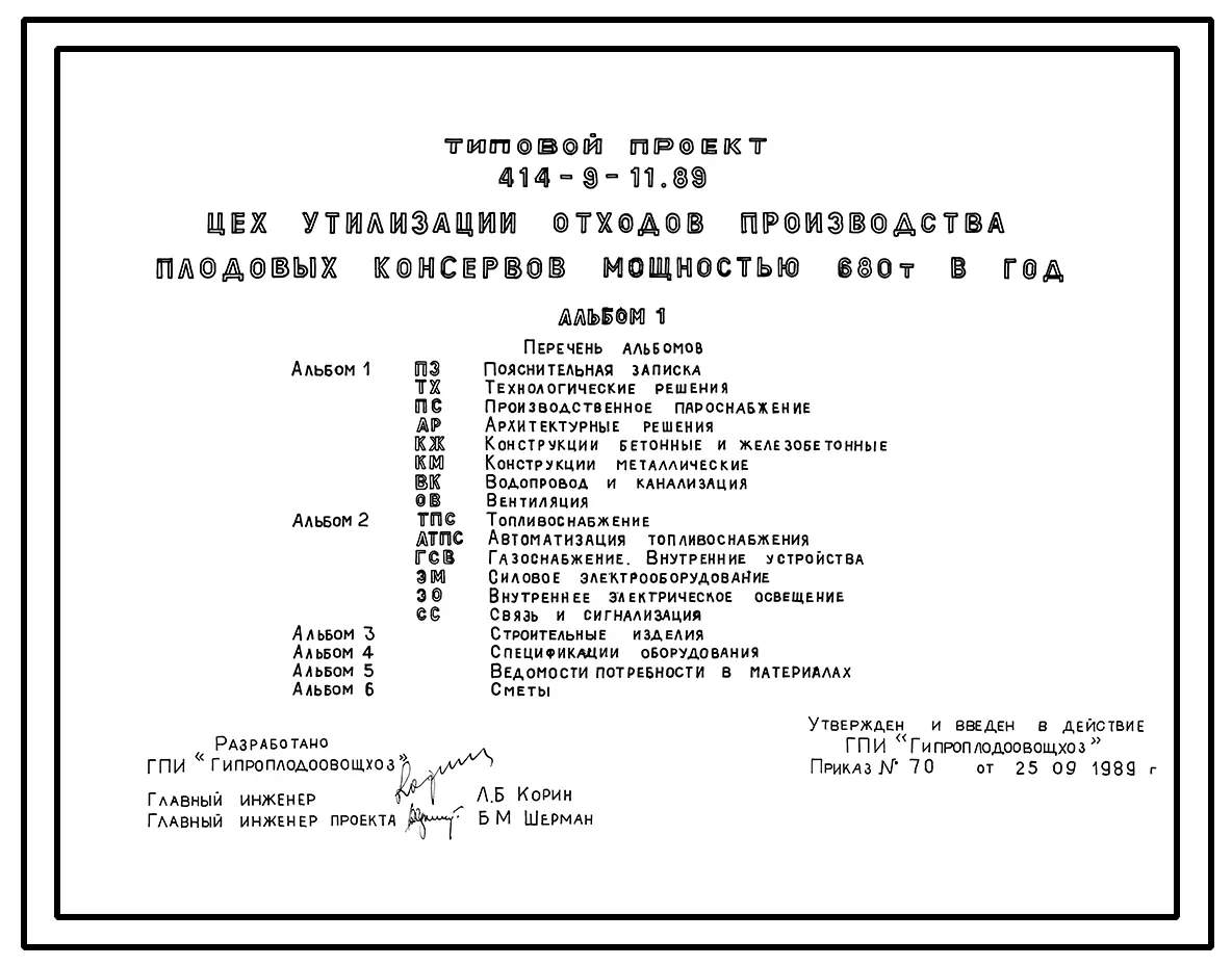 Типовой проект 414-9-11.89 Цех утилизации отходов производства плодоовых консервов мощностью 680 т в год