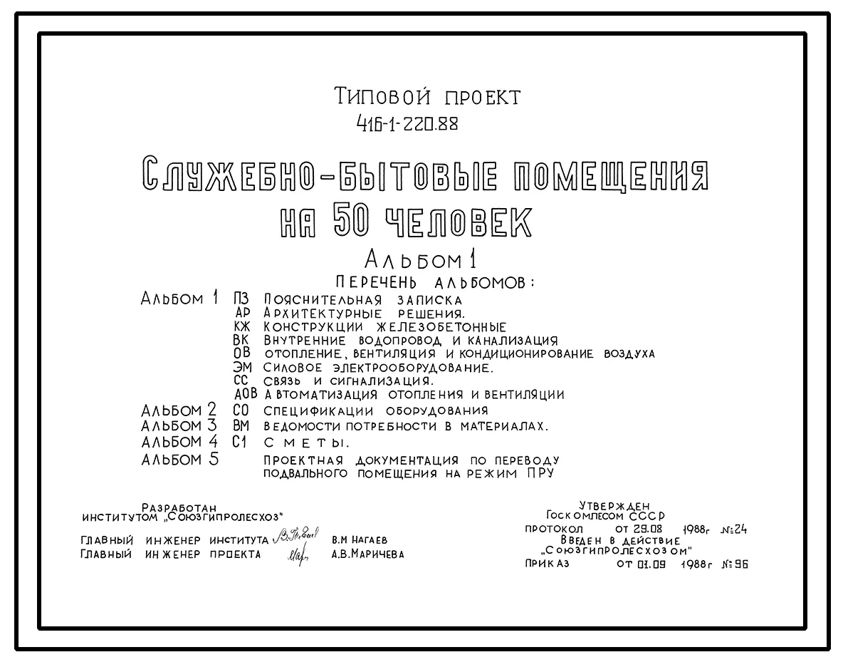 Типовой проект 416-1-220.88 Служебно-бытовые помещения на 50 человек. Стены кирпичные