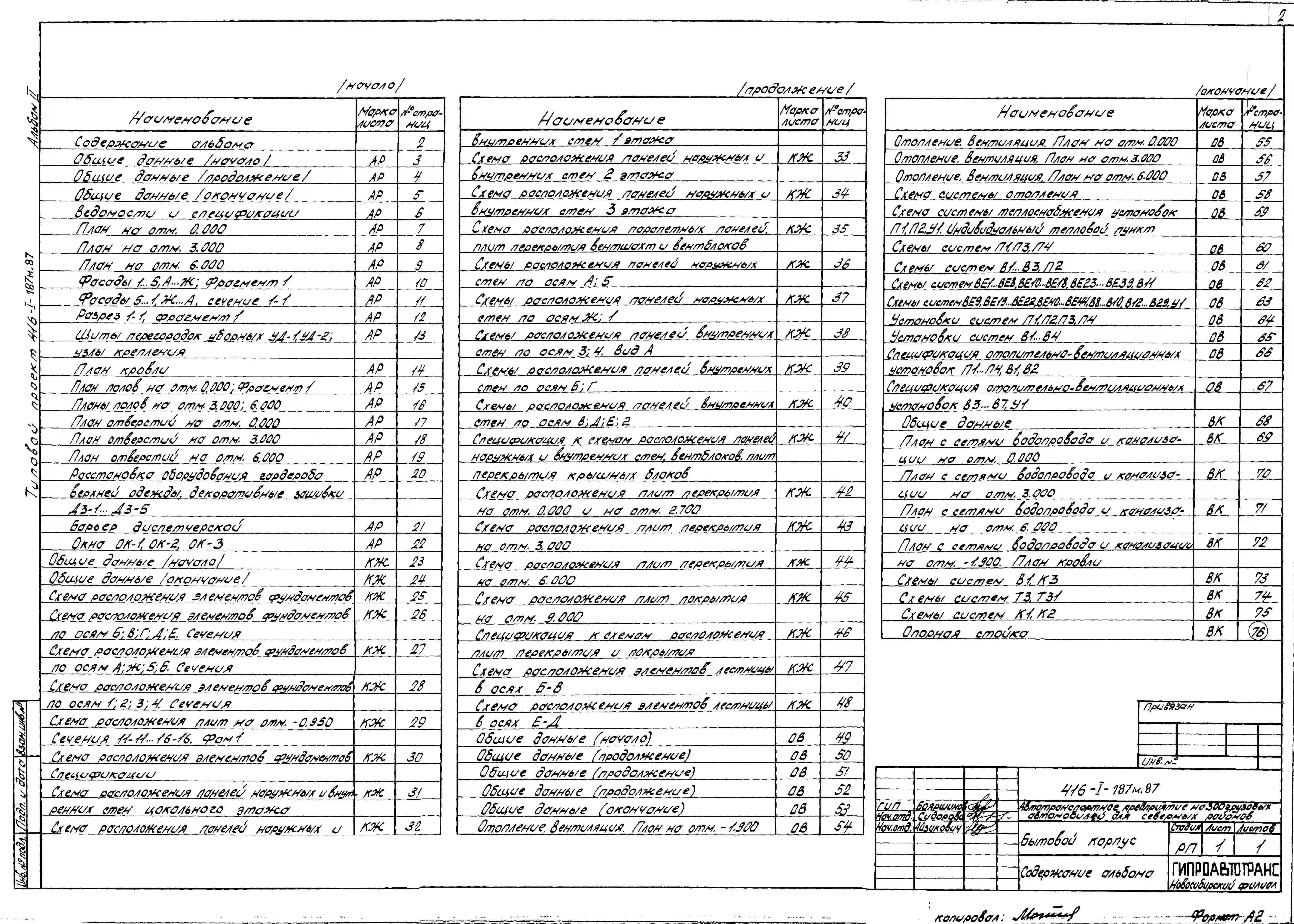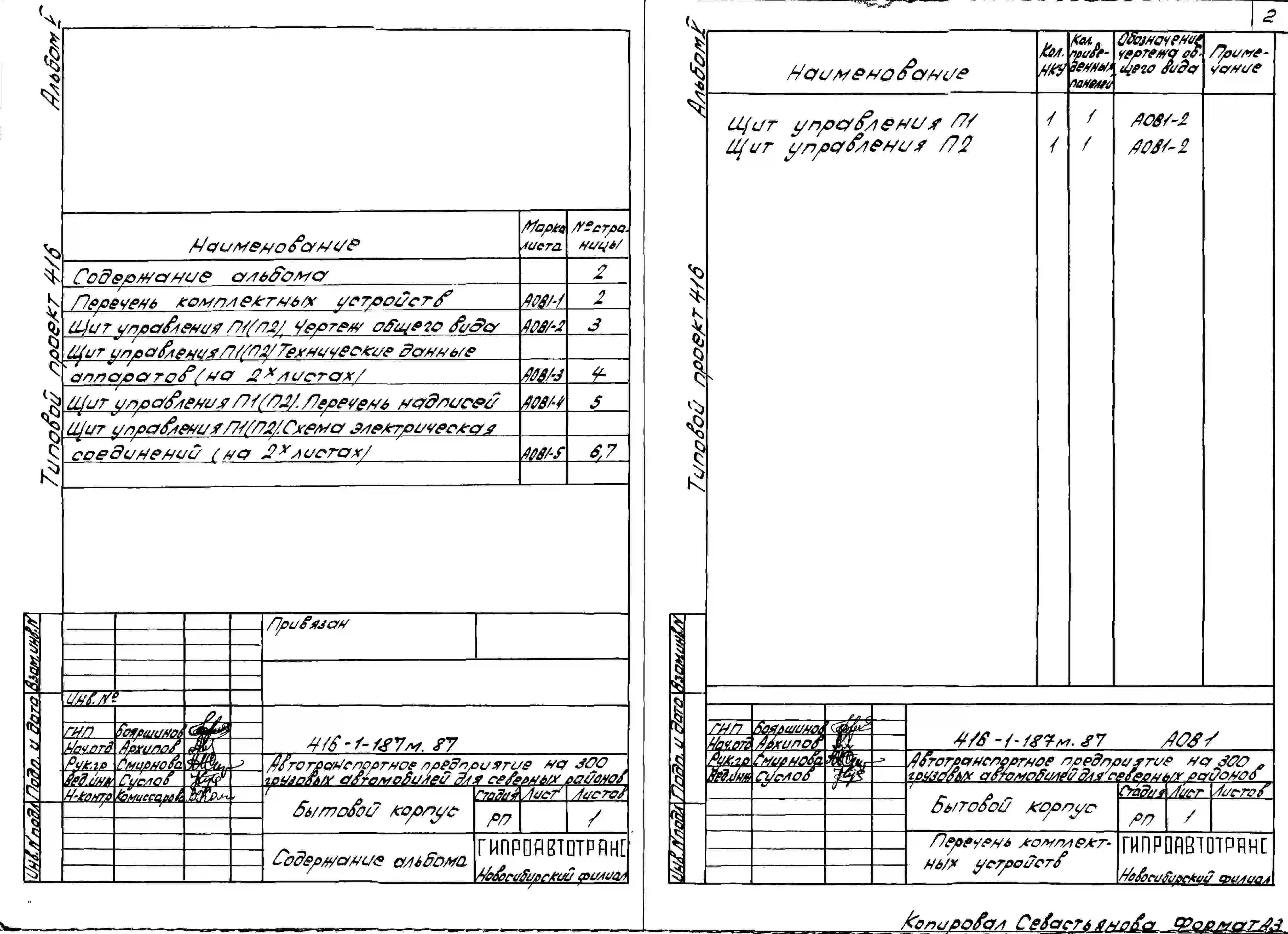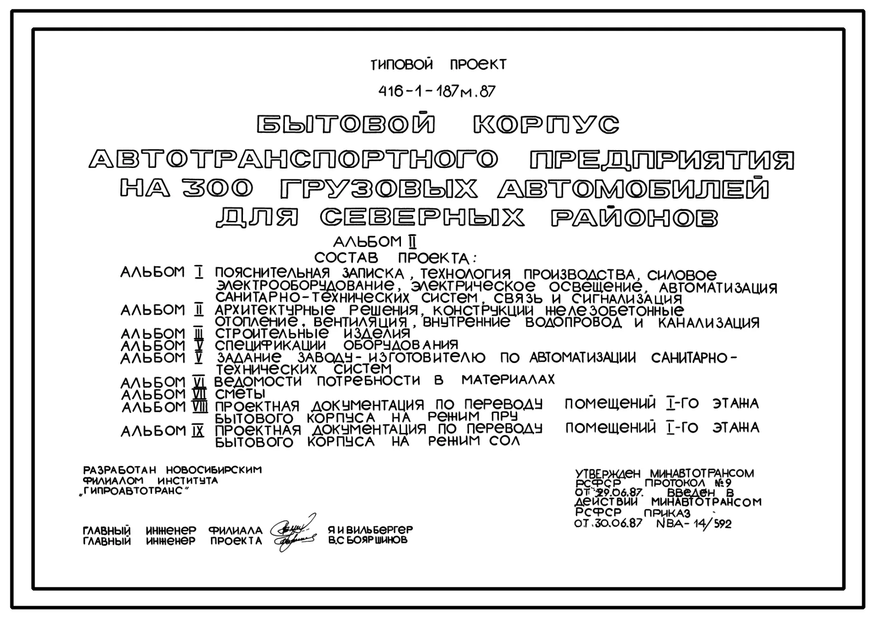 Типовой проект 416-1-187м.87 Бытовой корпус автотранспортного предприятия на 300 грузовых автомобилей (для северных районов). Грунты вечномерзлые
