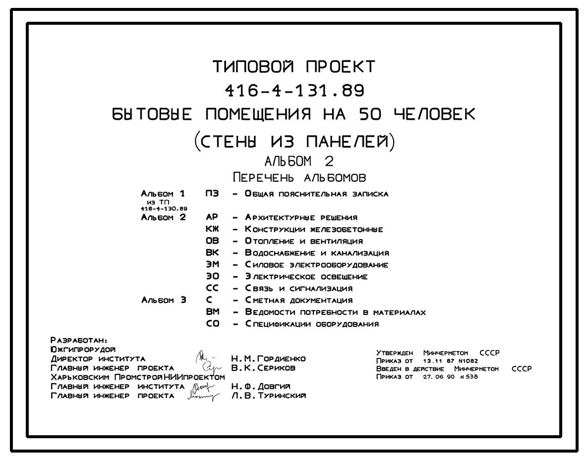Типовой проект 416-4-131.89 Бытовые помещения на 50 человек. Стены из панелей.