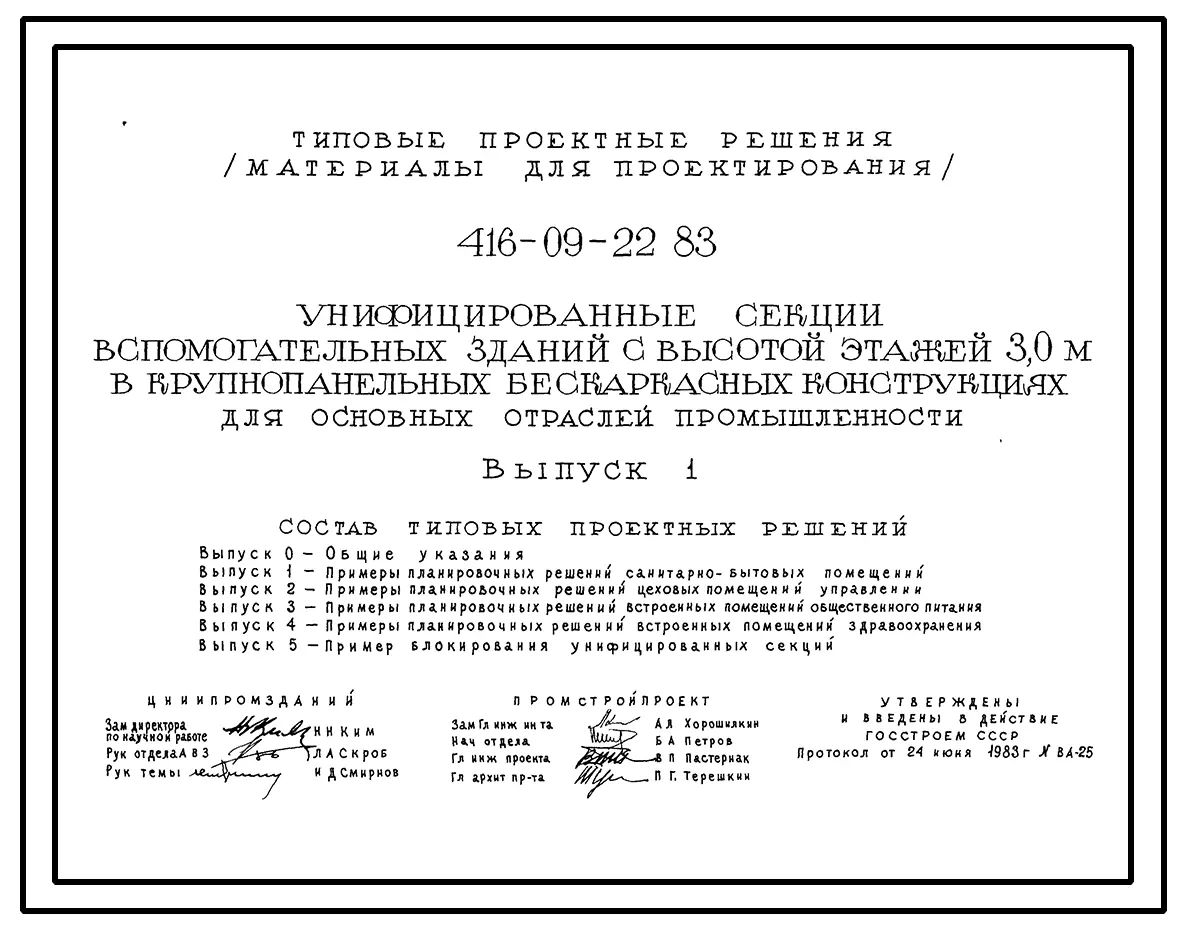 Типовой проект 416-09-22.83 Унифицированные секции вспомогательных зданий с высотой этажа 3м в крупнопанельных бескаркасных конструкциях для основных отраслей промышленности.