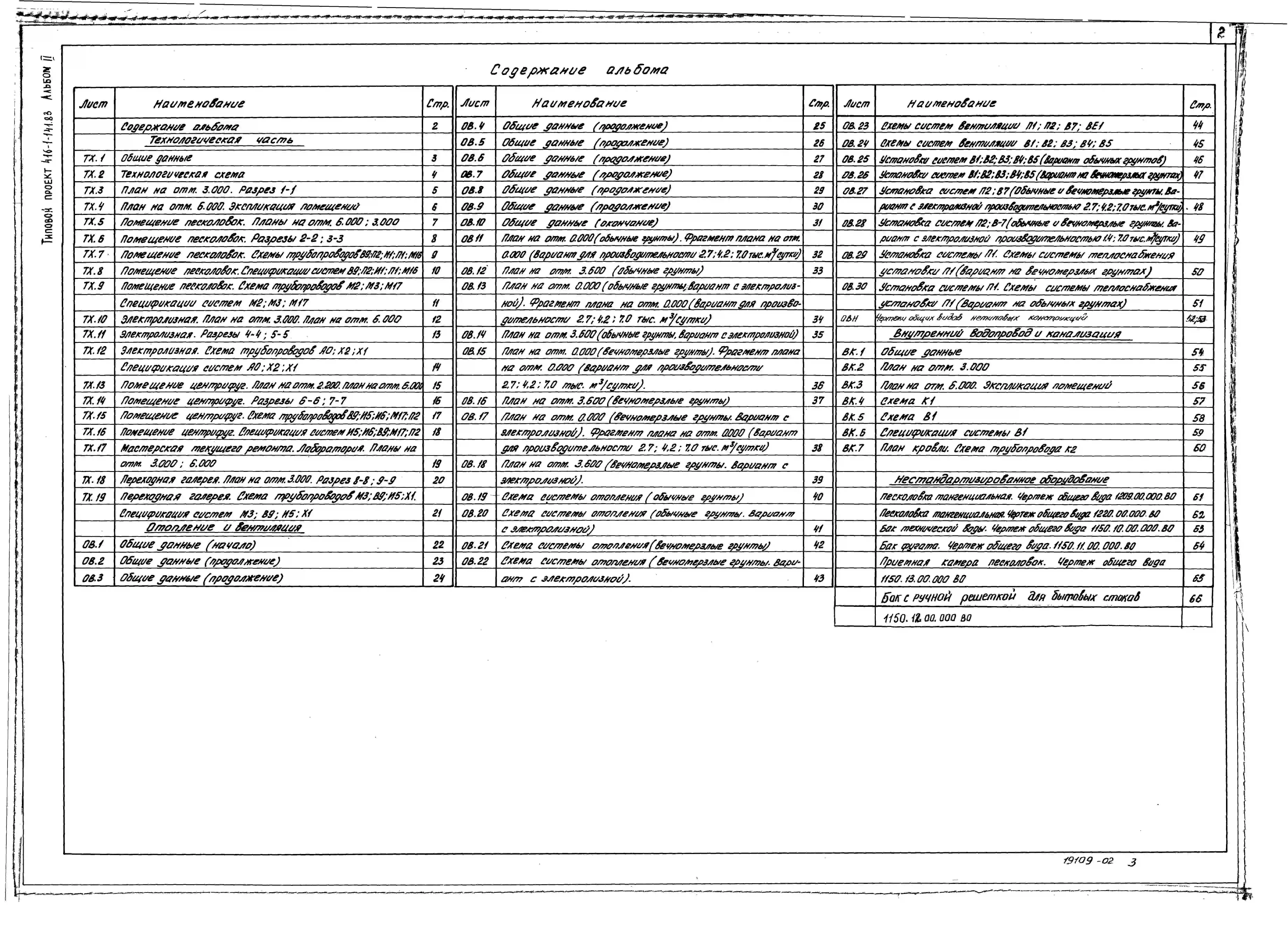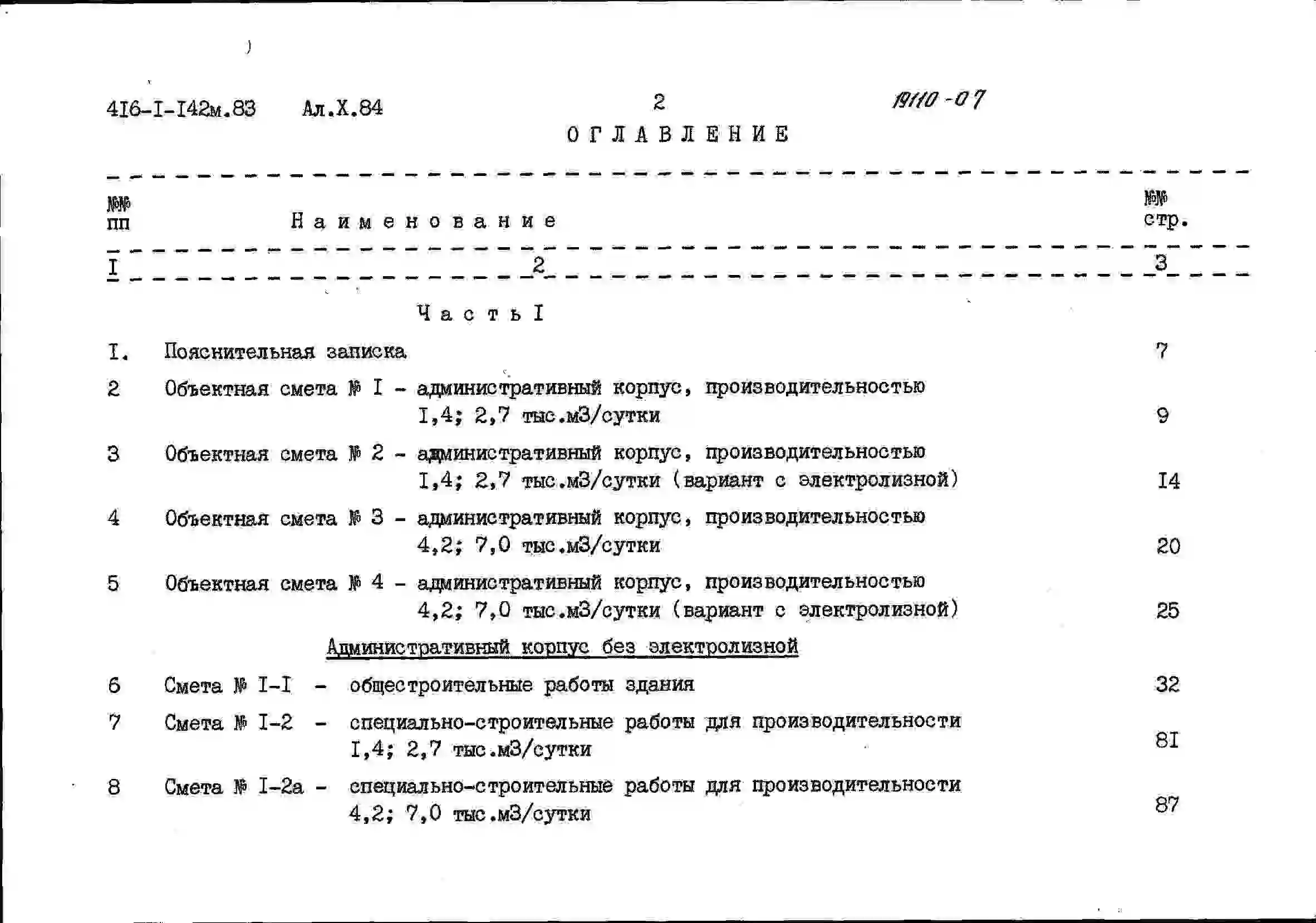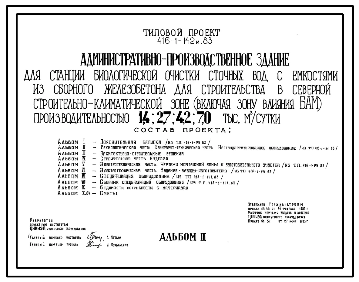 Типовой проект 416-1-142м.83 Административно производственное здание для станции биологической очистки сточных вод с емкостями из сборного железобетона для строительства в северной климатической зоне производительностью 1,4; 2,7; 4,2; 7,0 тыс.м.куб/сутки