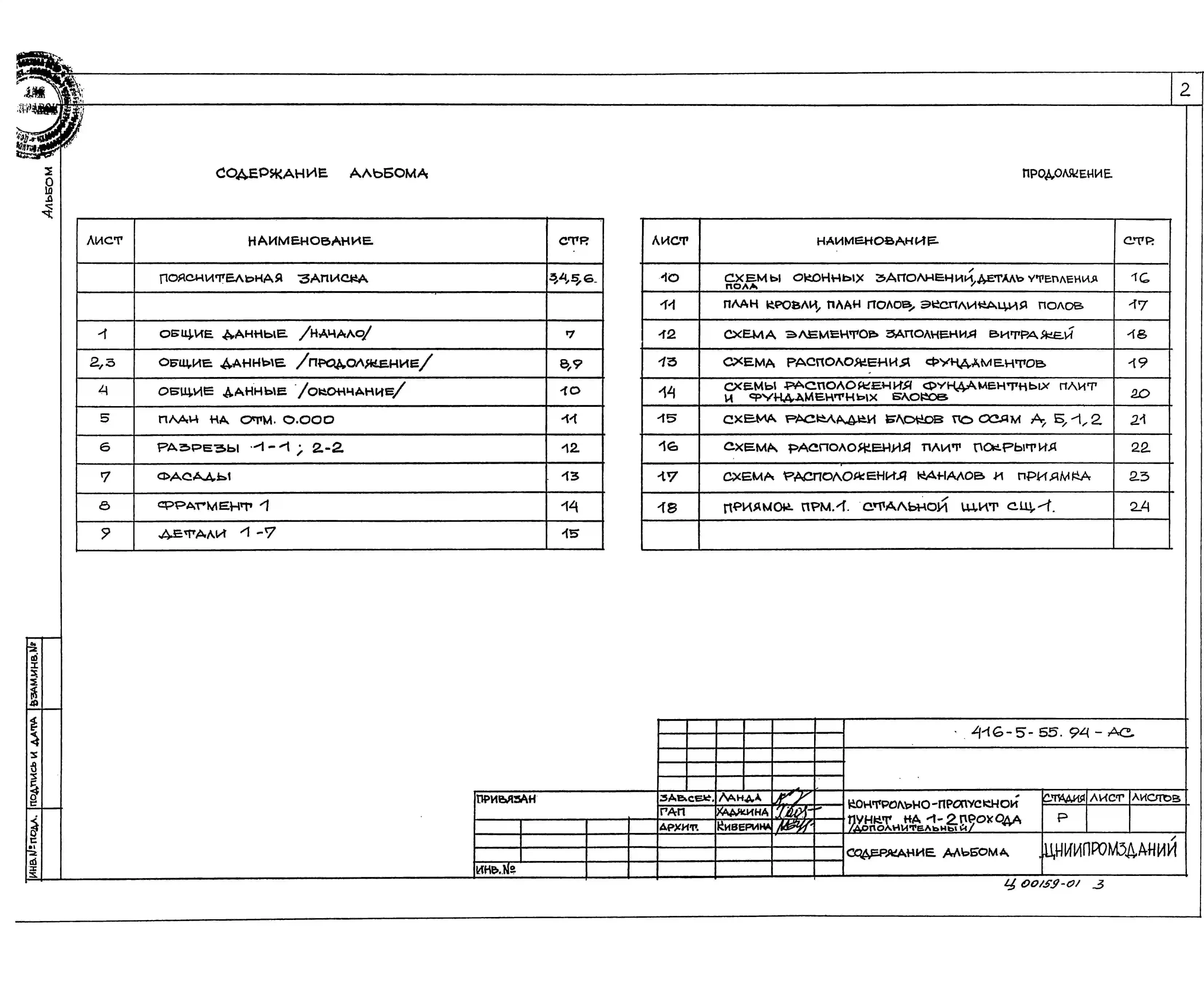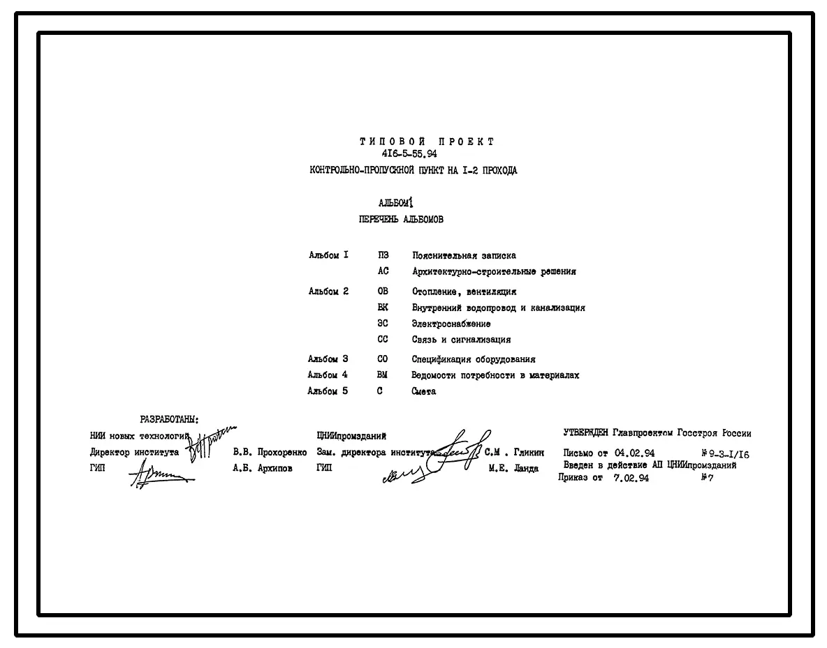 Типовой проект 416-5-55.94 Контрольно-пропускной пункт на 1–2 прохода