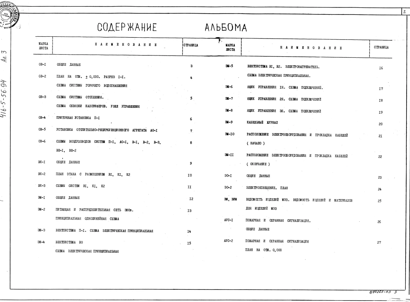 Типовой проект 416-5-56.94 Контрольно-пропускной пункт на 2 прохода