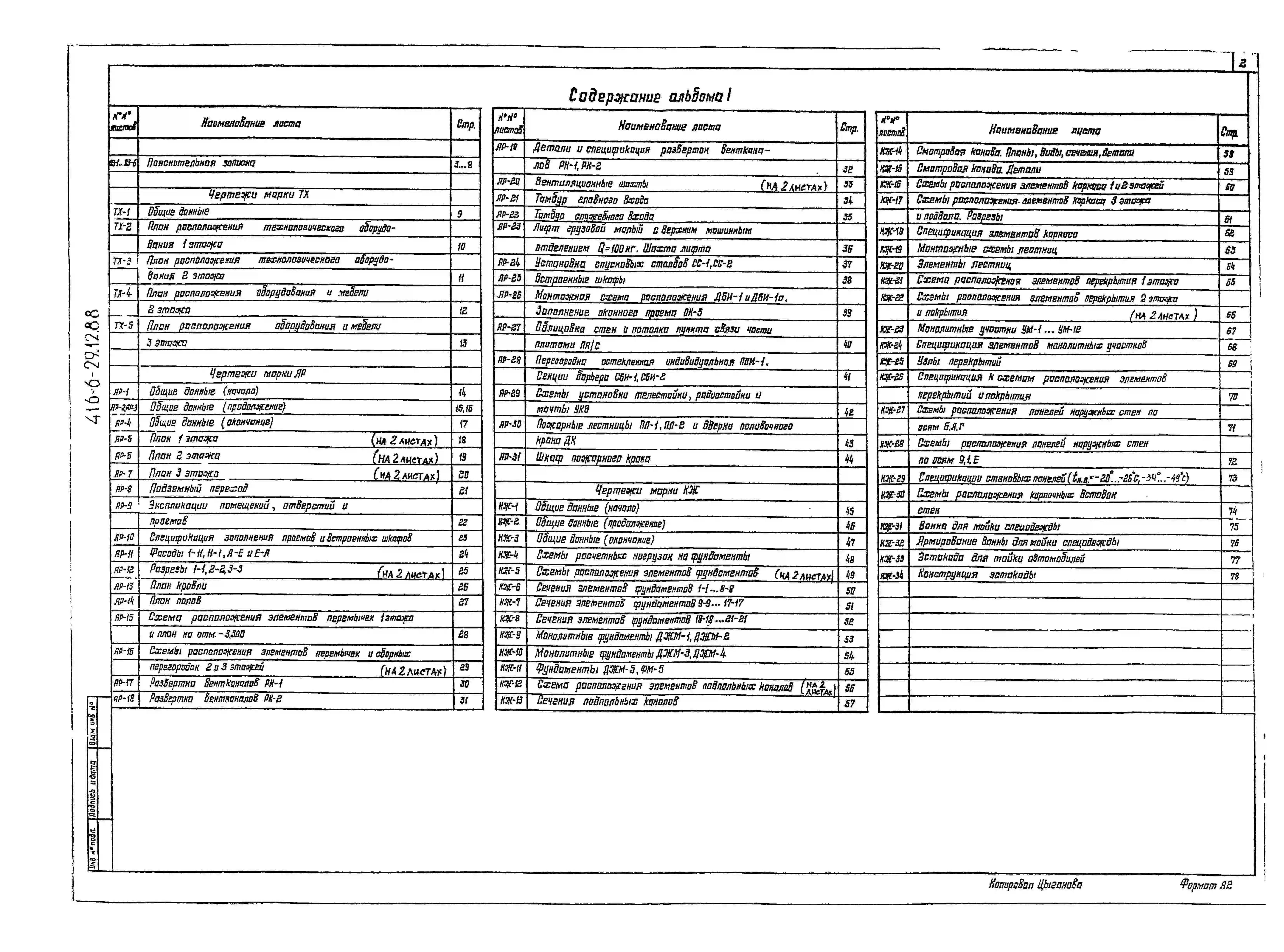 Типовой проект 416-6-29.12.88 Пожарное депо на 6 автомобиля (с железобетонным каркасом и панельными стенами)