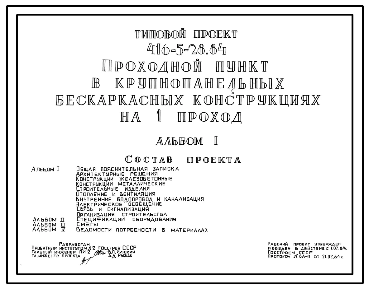 Типовой проект 416-5-28.84 Проходной пункт на 1 проход