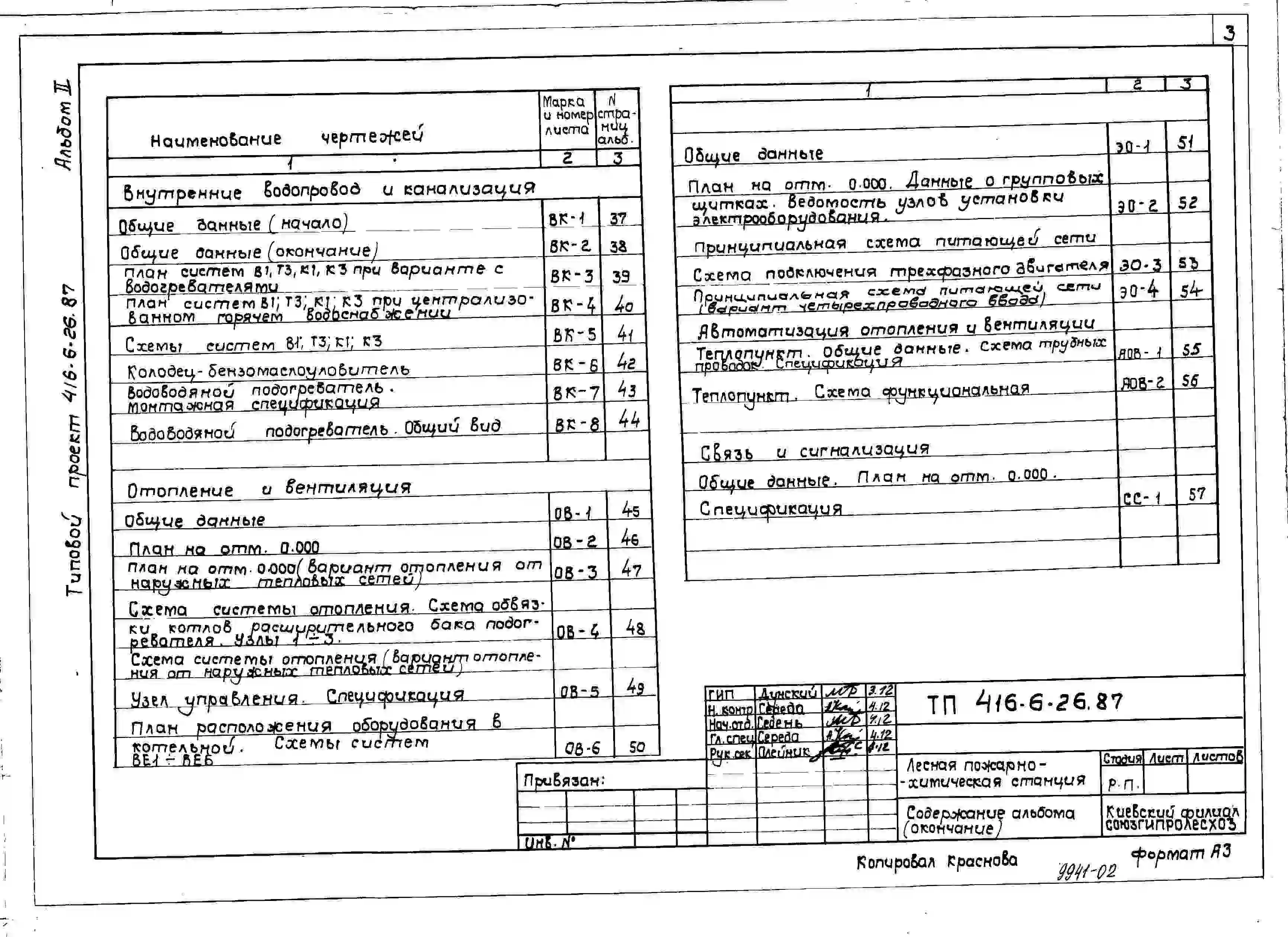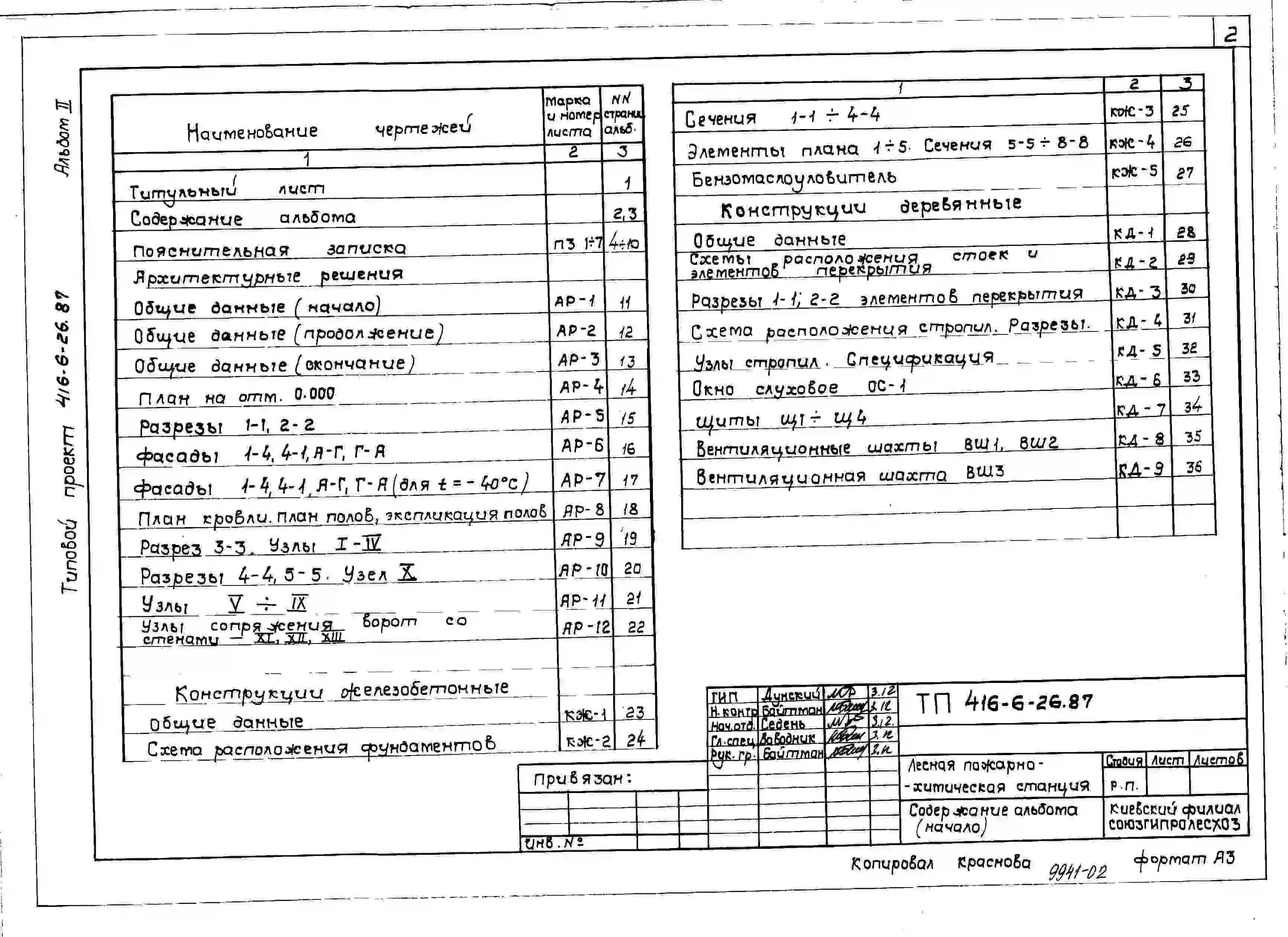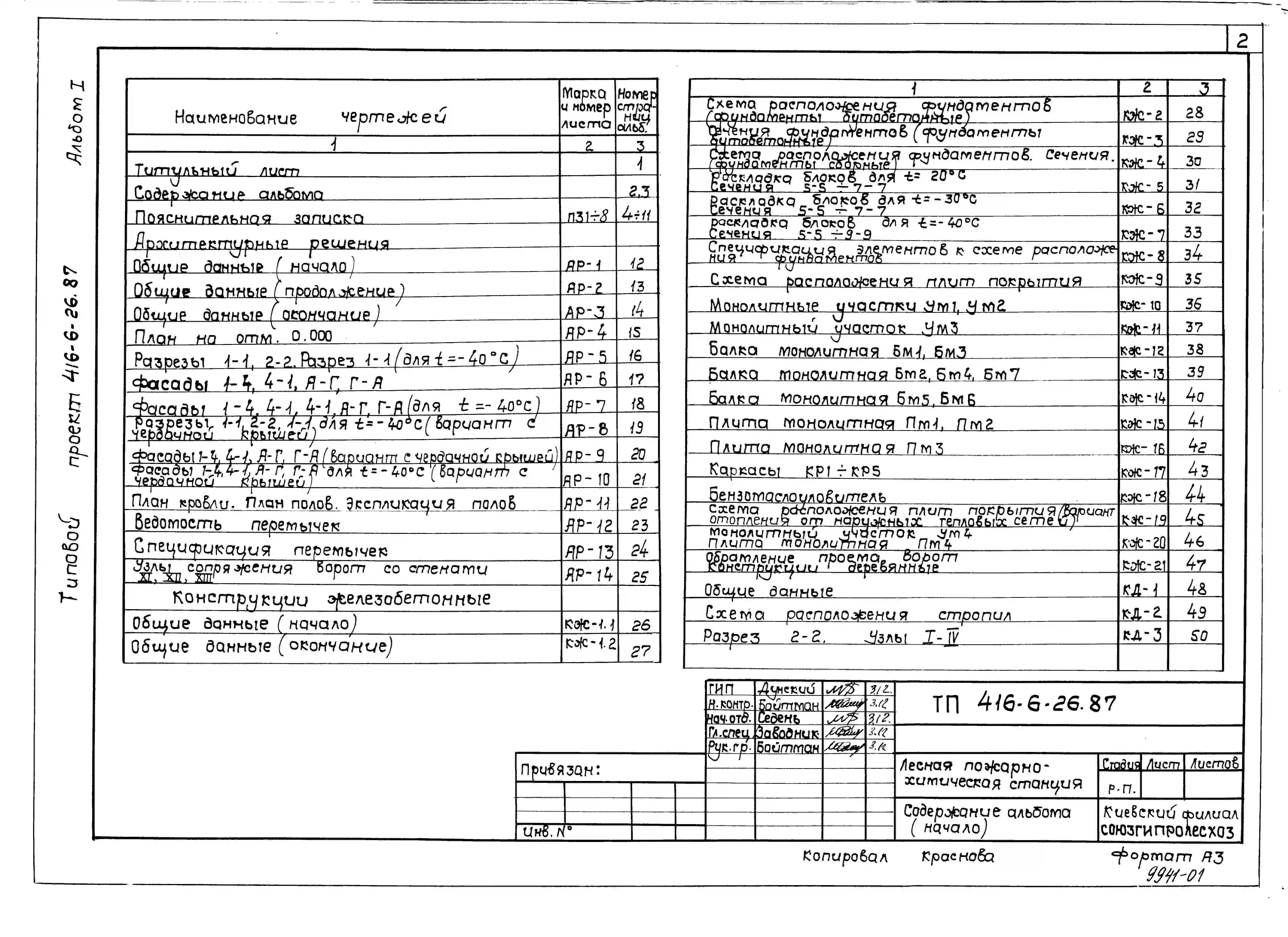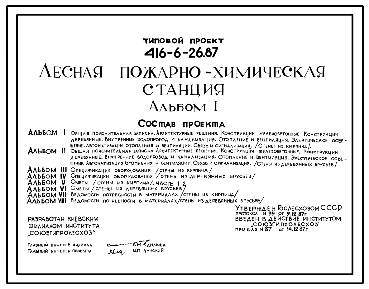 Типовой проект 416-6-26.87 Лесная пожарно-химическая станция