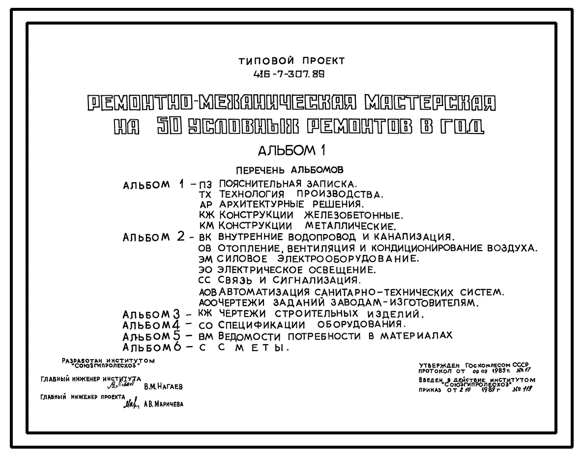 Типовой проект 416-7-307.89 Ремонтно-механическая мастерская на 50 условных ремонтов в год. Стены кирпичные