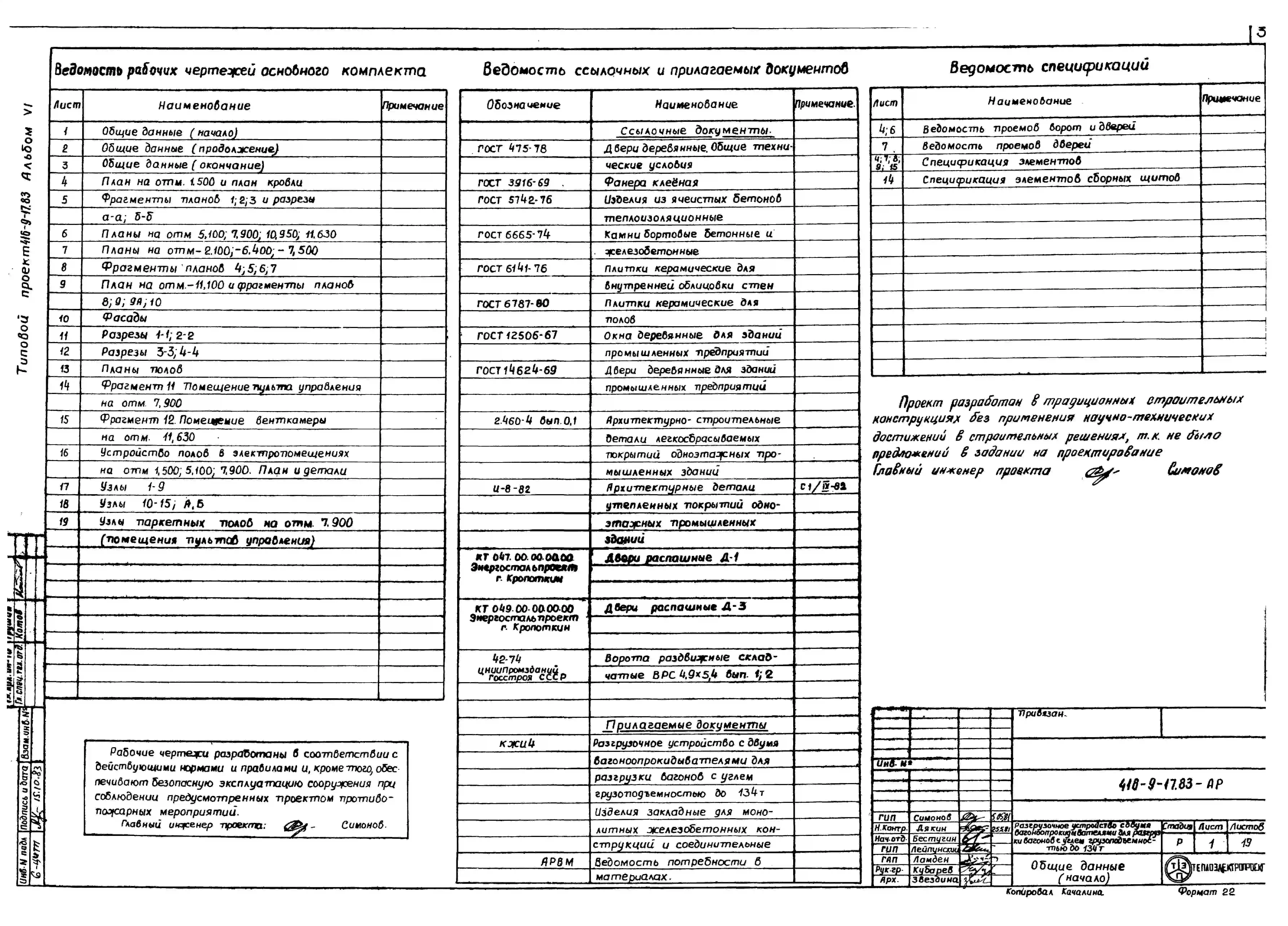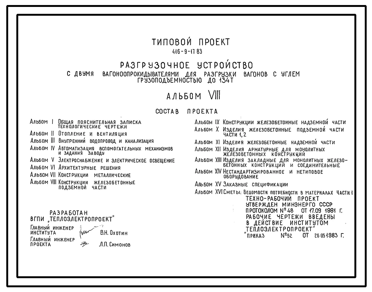 Типовой проект 416-9-17.83 Разгрузочное устройство с двумя вагоно-опрокидывателями для разгрузки вагонов с углем грузоподъемностью до 134 т