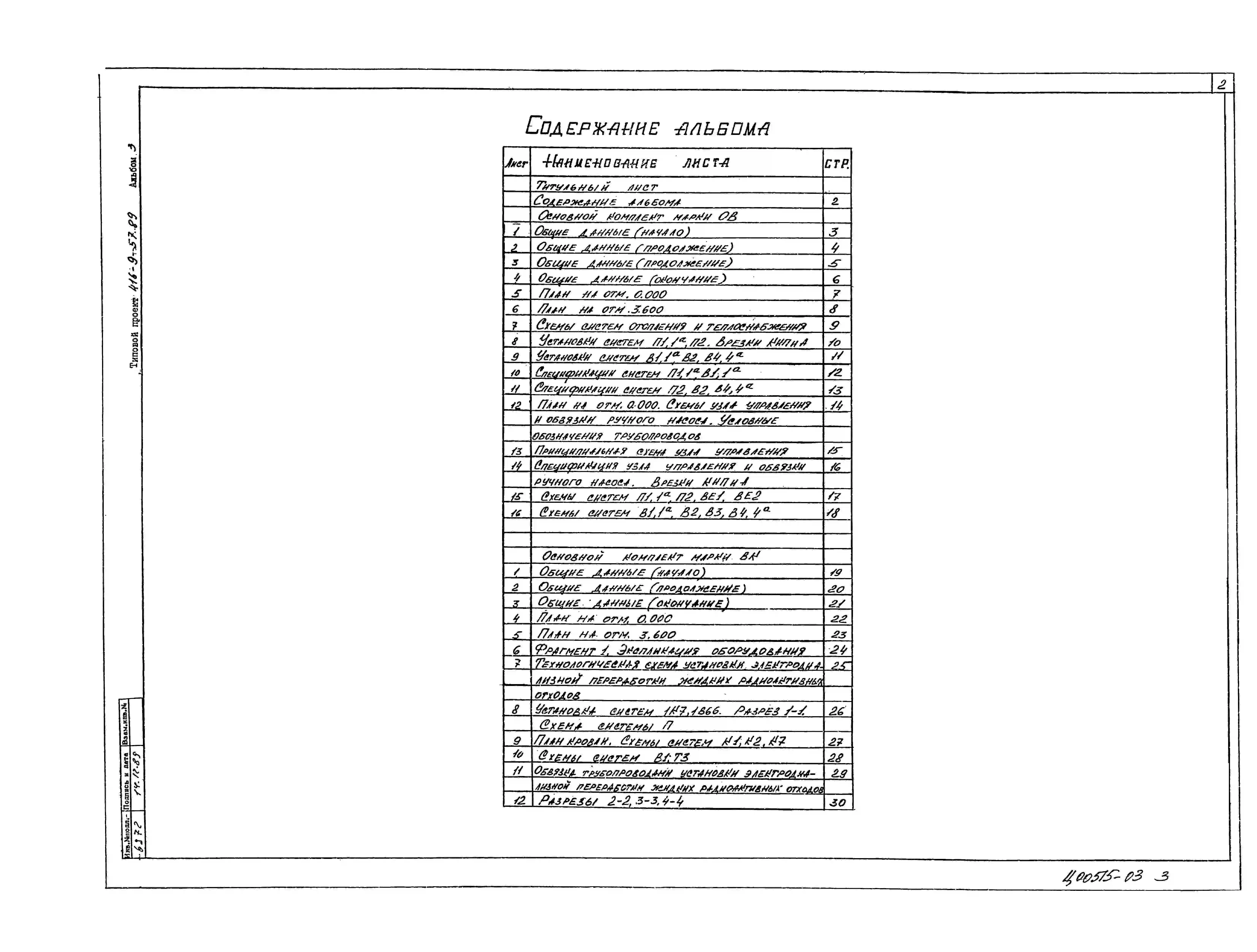 Типовой проект 416-9-57.89 Блок дезактивации, прессования и перегрузки пункта захоронения радиоактивных отходов