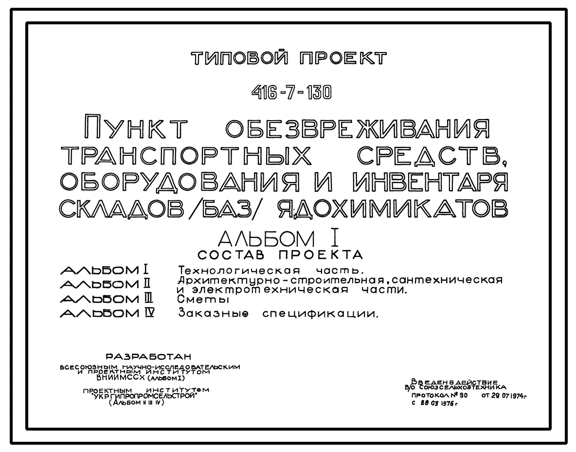Типовой проект 416-7-130 Пункт обезвреживания транспортных средств, оборудования и инвентаря складов (баз) ядохимикатов