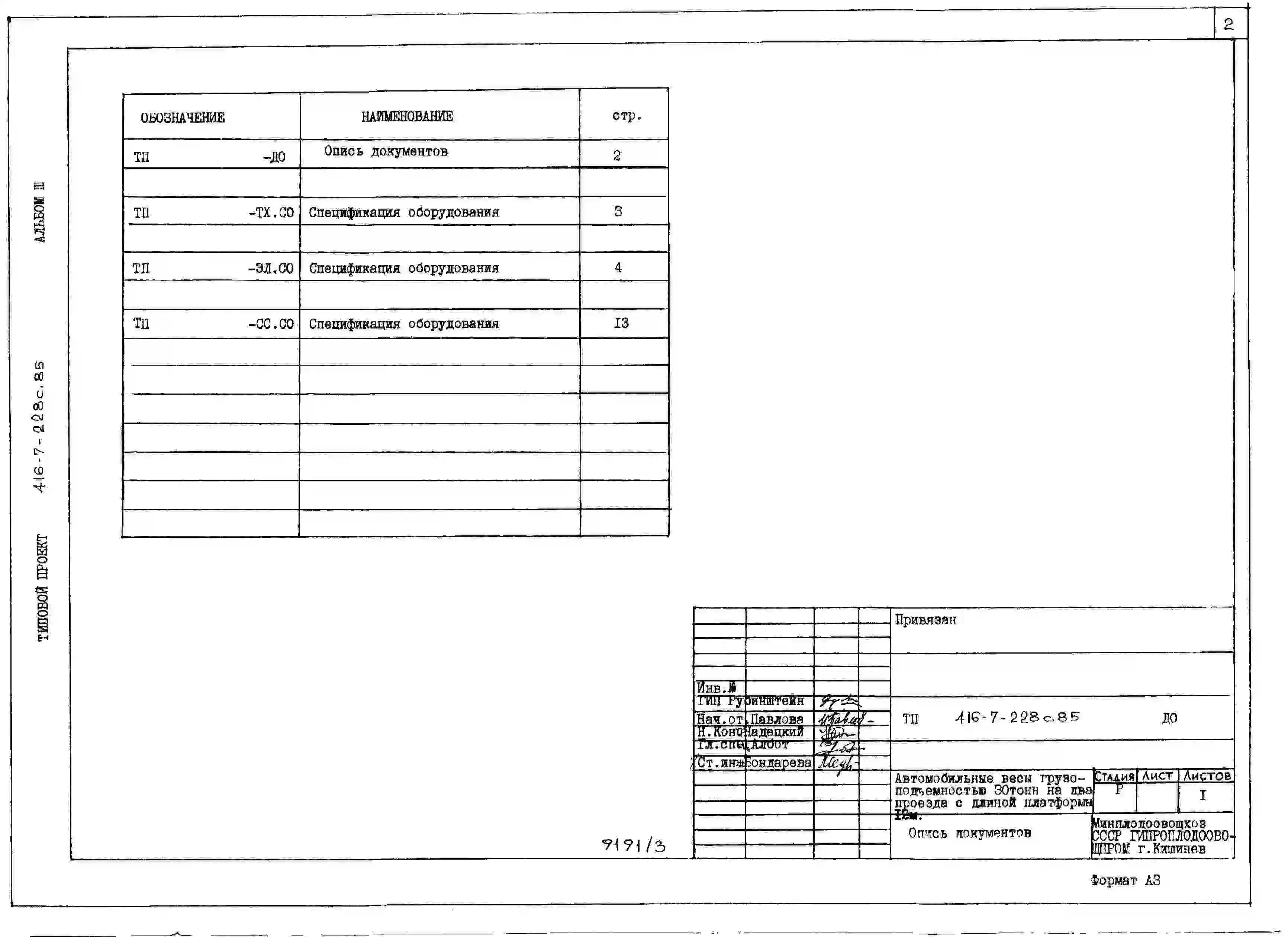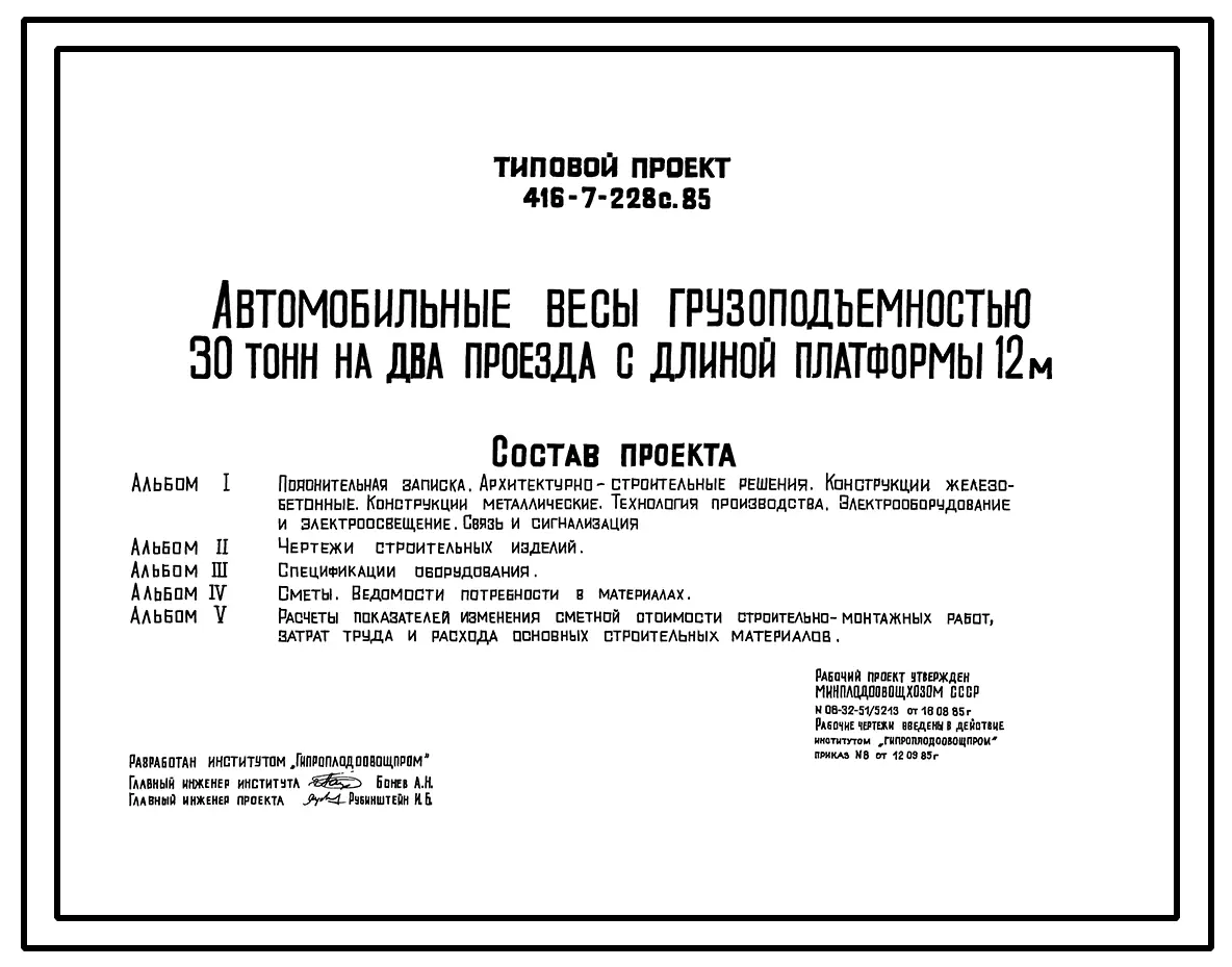 Типовой проект 416-7-228с.85 Автомобильные весы грузоподъемностью 30 т на два проезда с длиной платформы 12 м