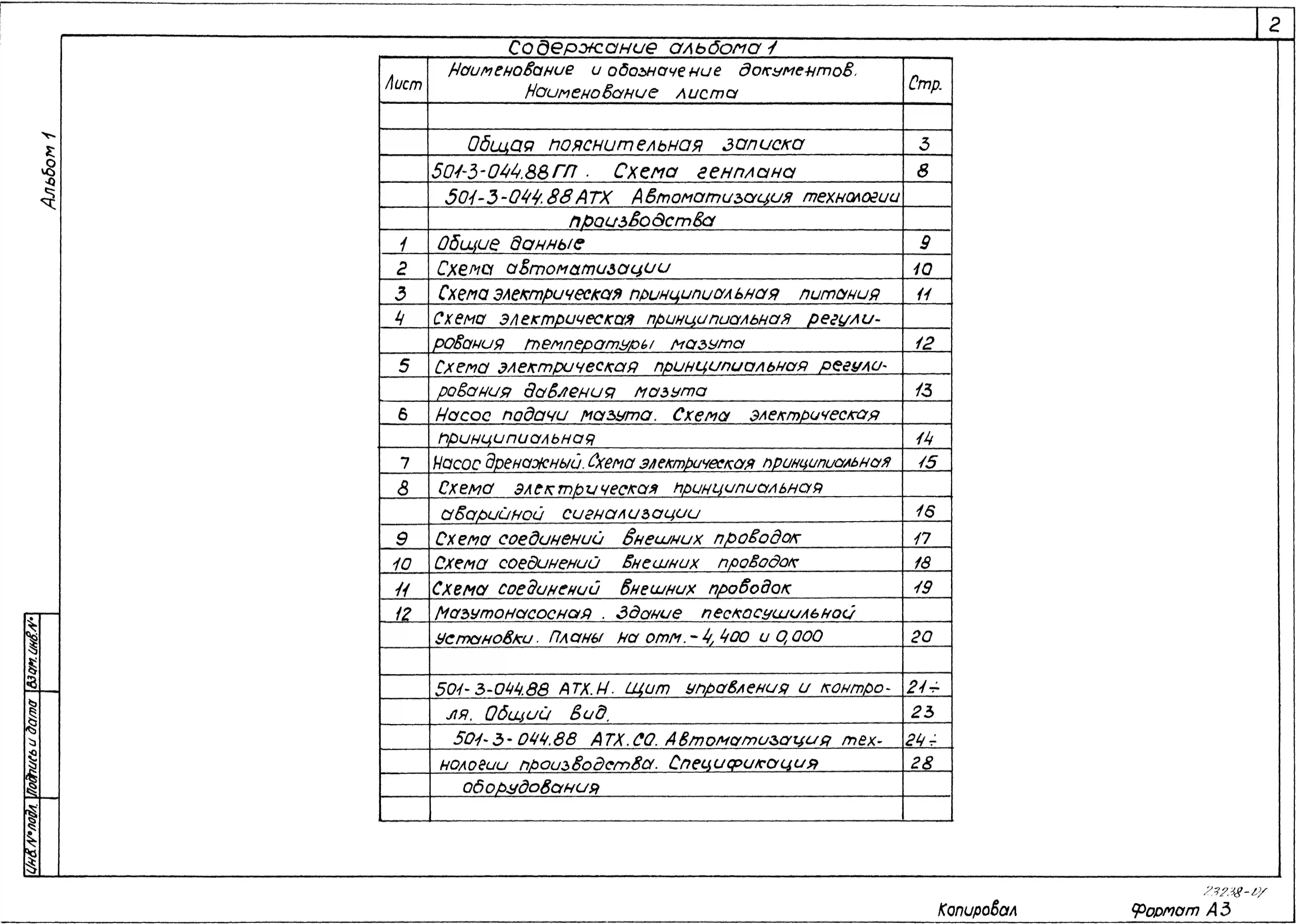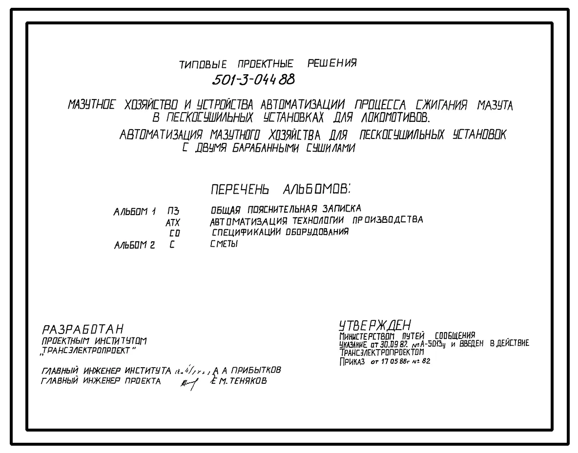 Типовой проект 501-3-044.88 МАЗУТНОЕ ХОЗЯЙСТВО И УСТРОЙСТВА АВТОМАТИЗАЦИИ ПРОЦЕССА СЖИГАНИЯ МАЗУТА В ПЕСКАСУШИЛЬНЫХ УСТАНОВКАХ ДЛЯ ЛОКОМОТИВОВ.