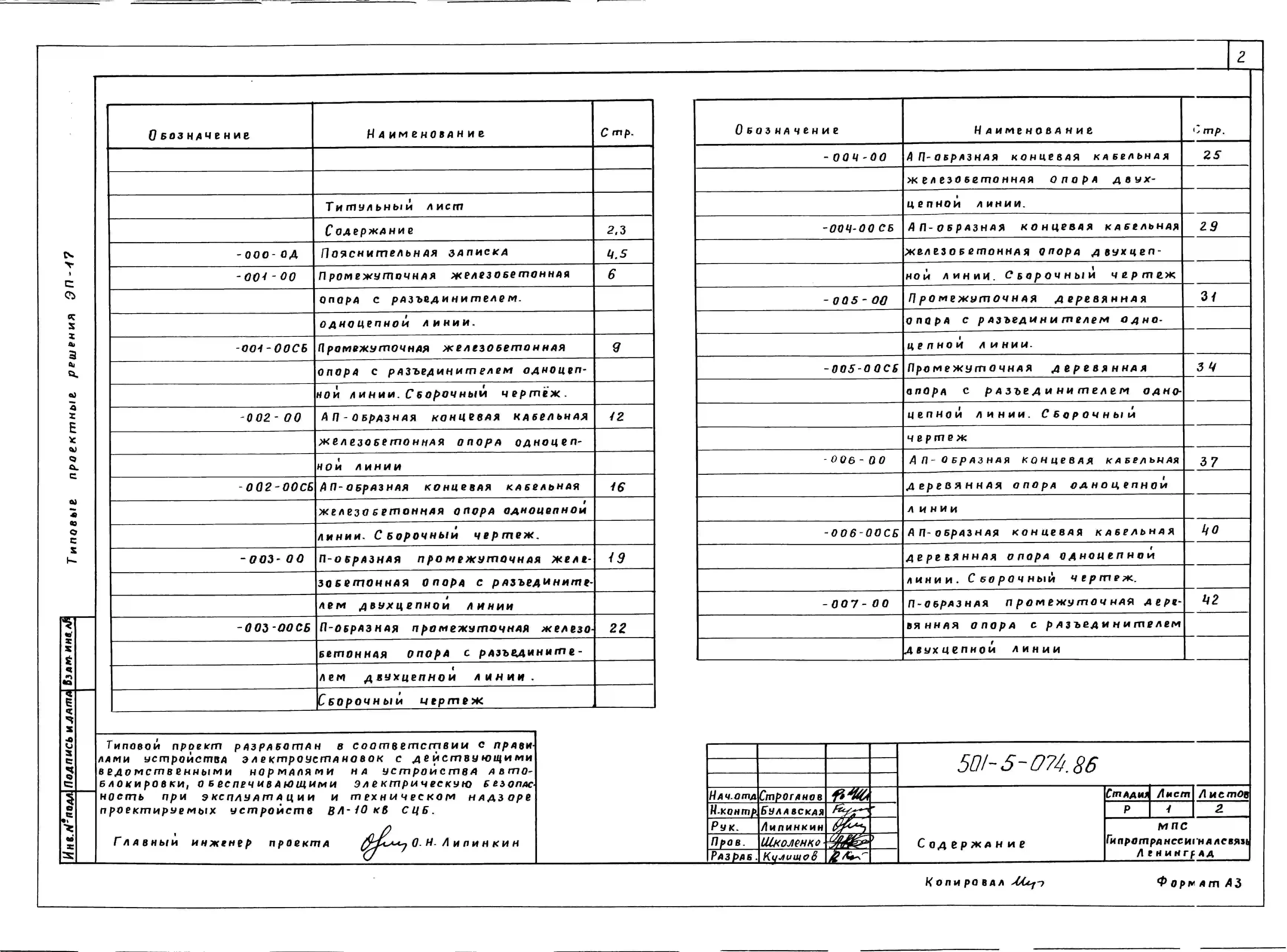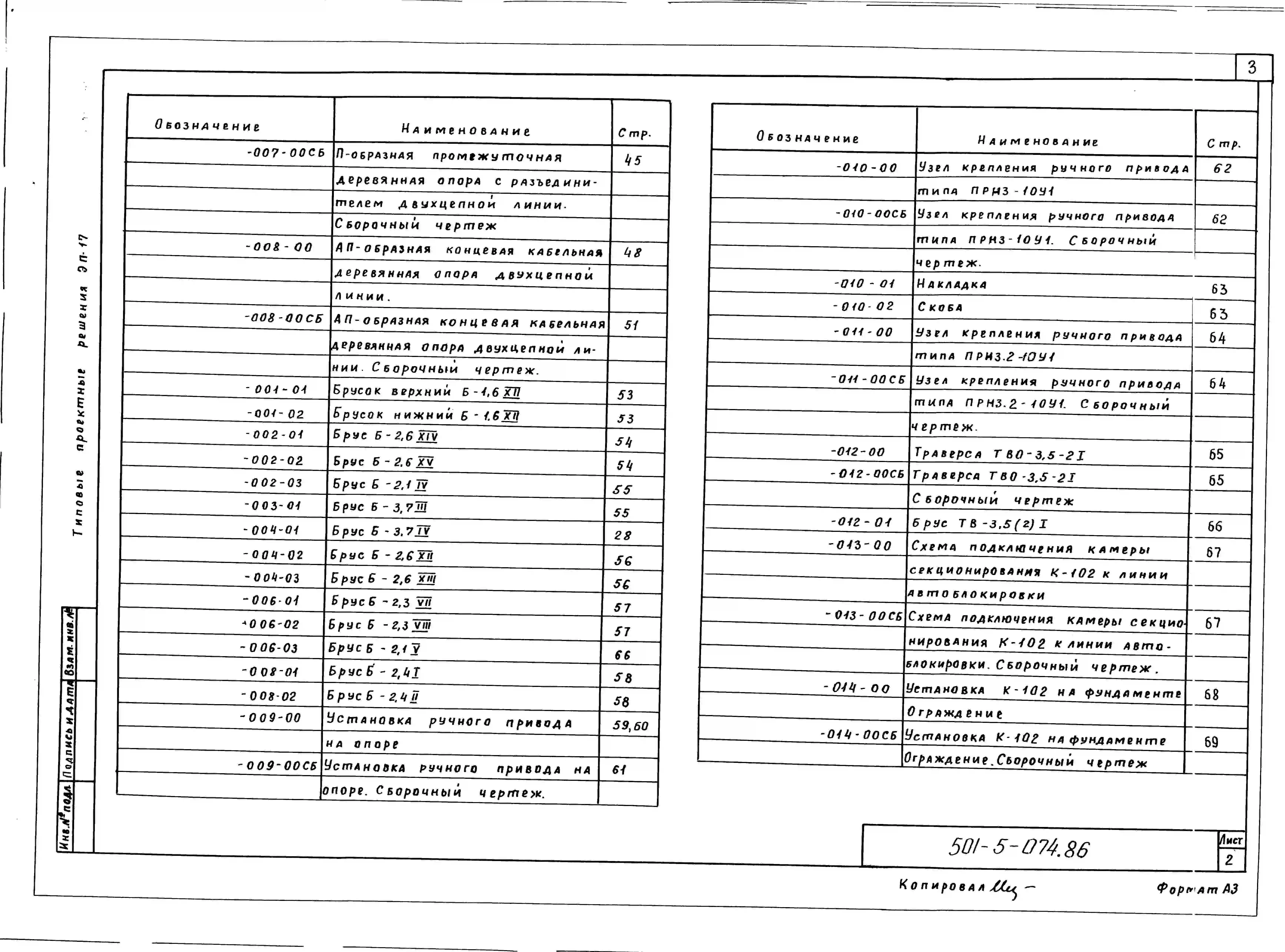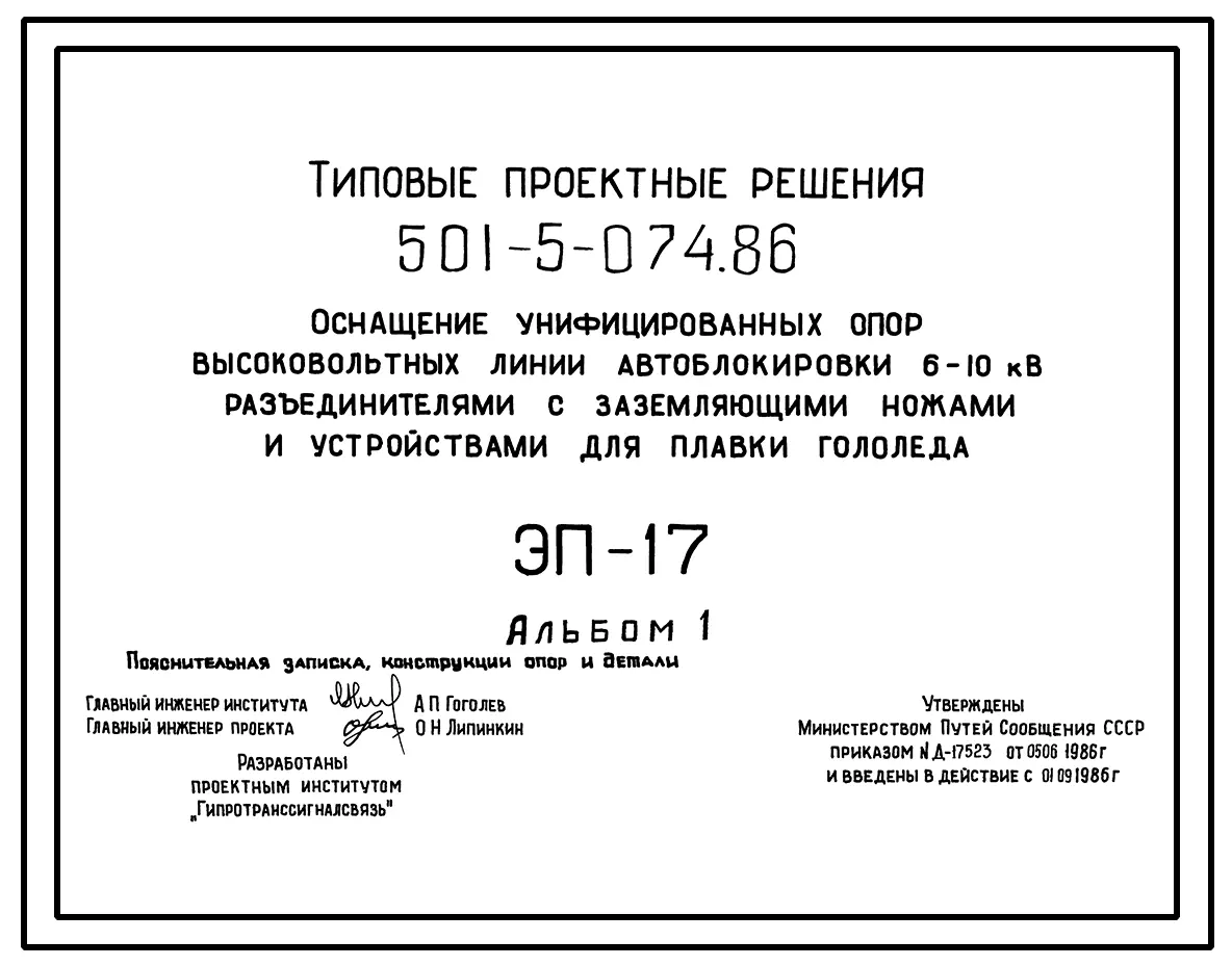 Типовой проект 501-5-074.86 Оснащение унифицированных опор высоковольтных линий автоблокировки напряжением 6–10 кВ разъединителями с заземляющими ножами и устройствами для плавки гололеда ЭП-17