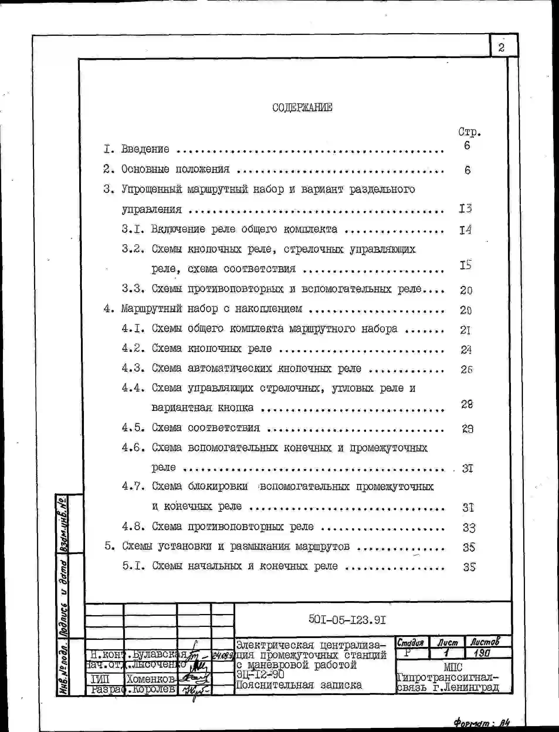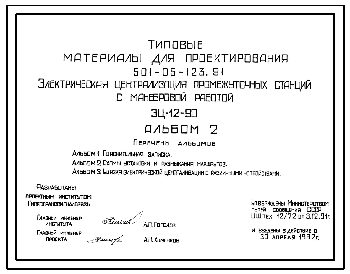 Типовой проект 501-05-123.91 Электрическая централизация промежуточных станций с маневровой работой ЭЦ-12-90