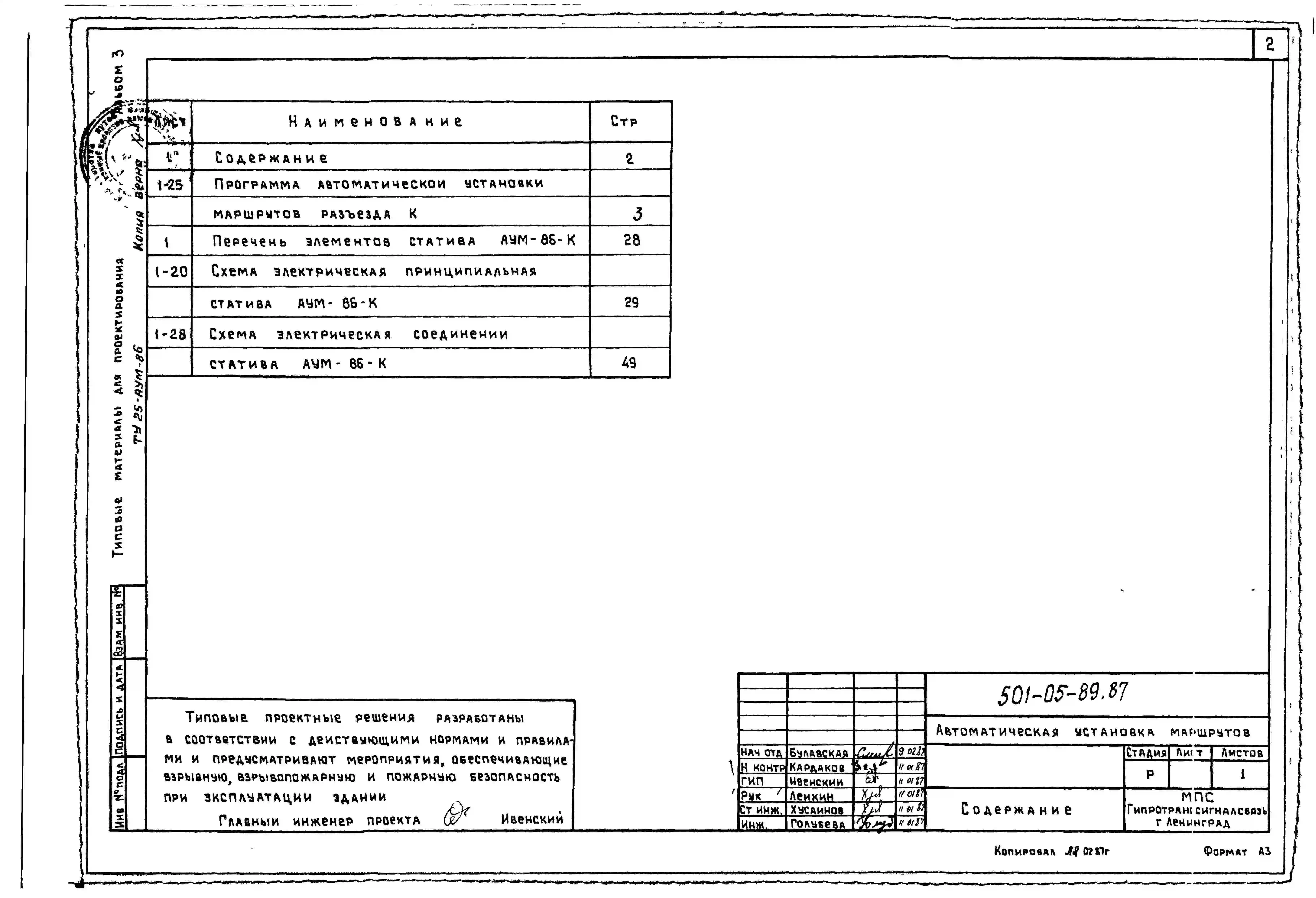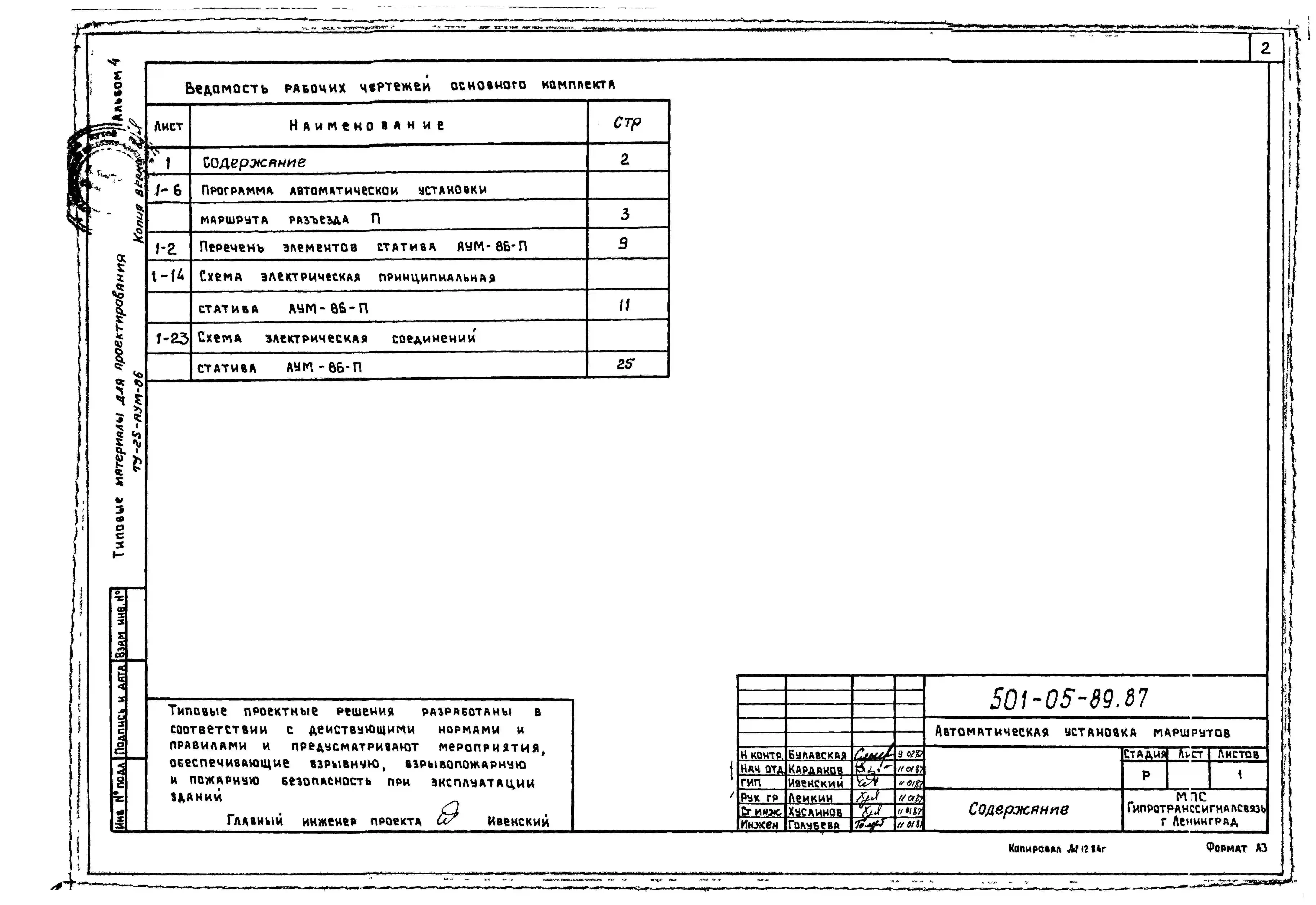 Типовой проект 501-05-89.87 Автоматическая установка маршрутов (ТУ-25-АУМ-86)
