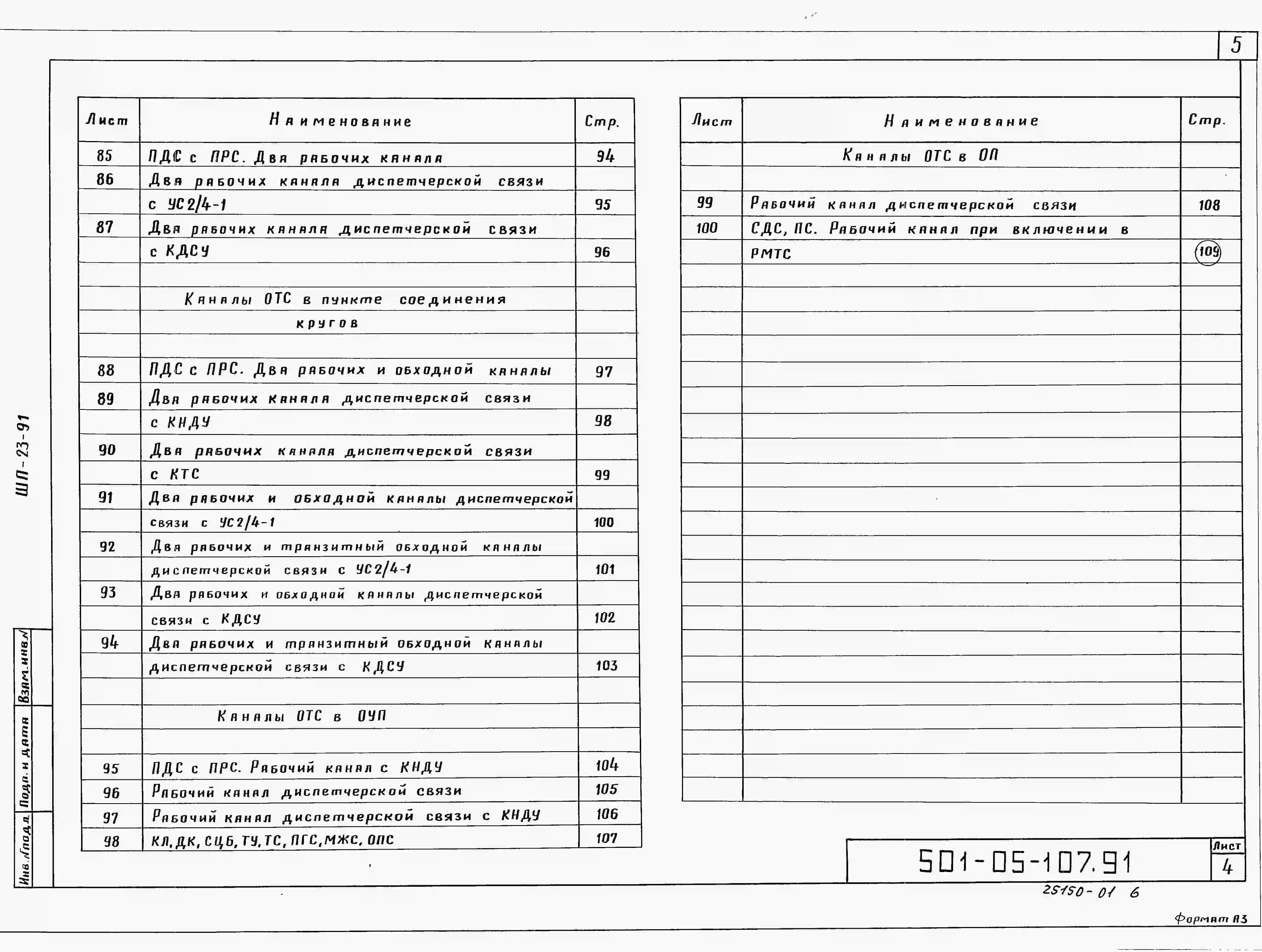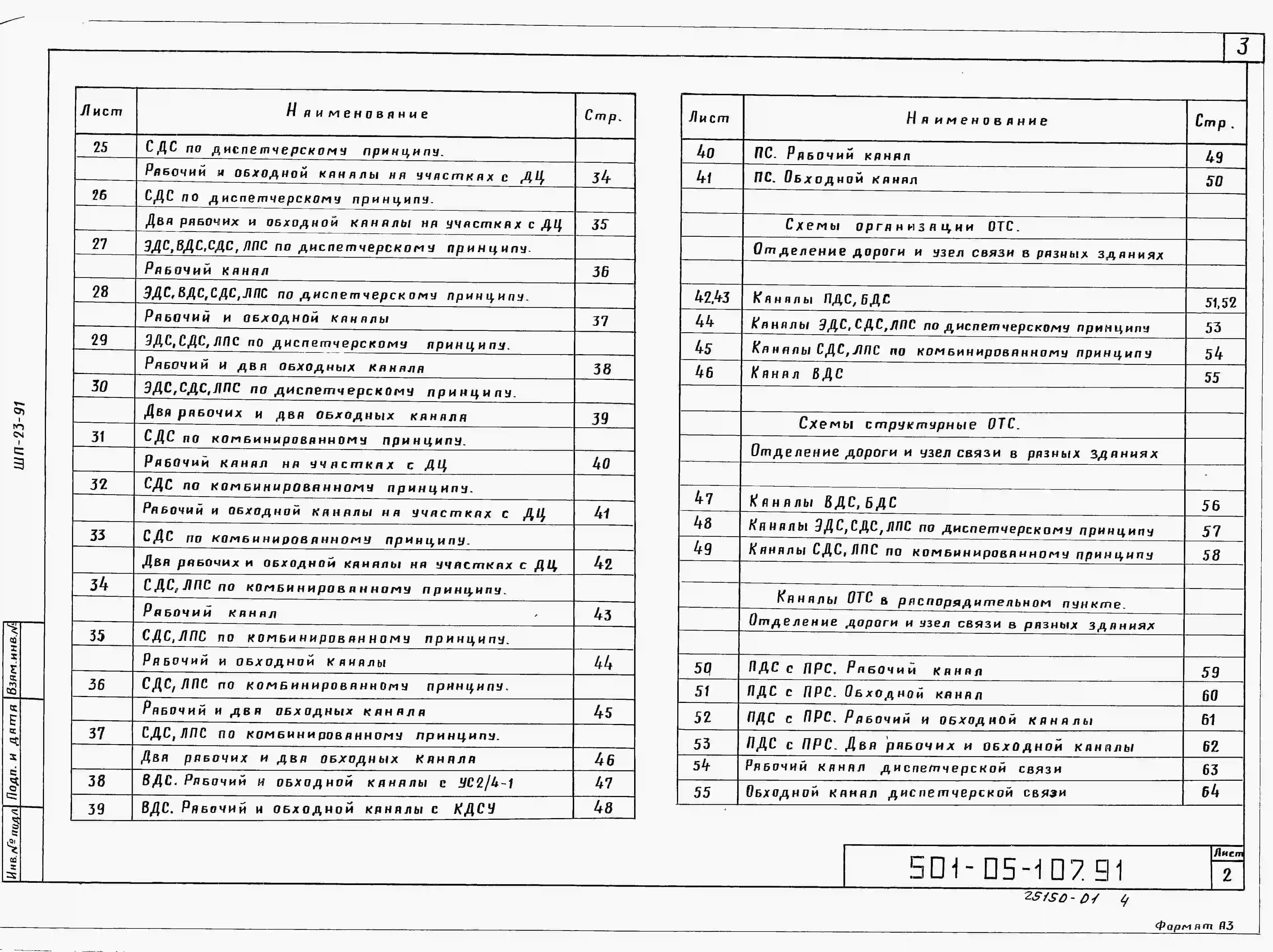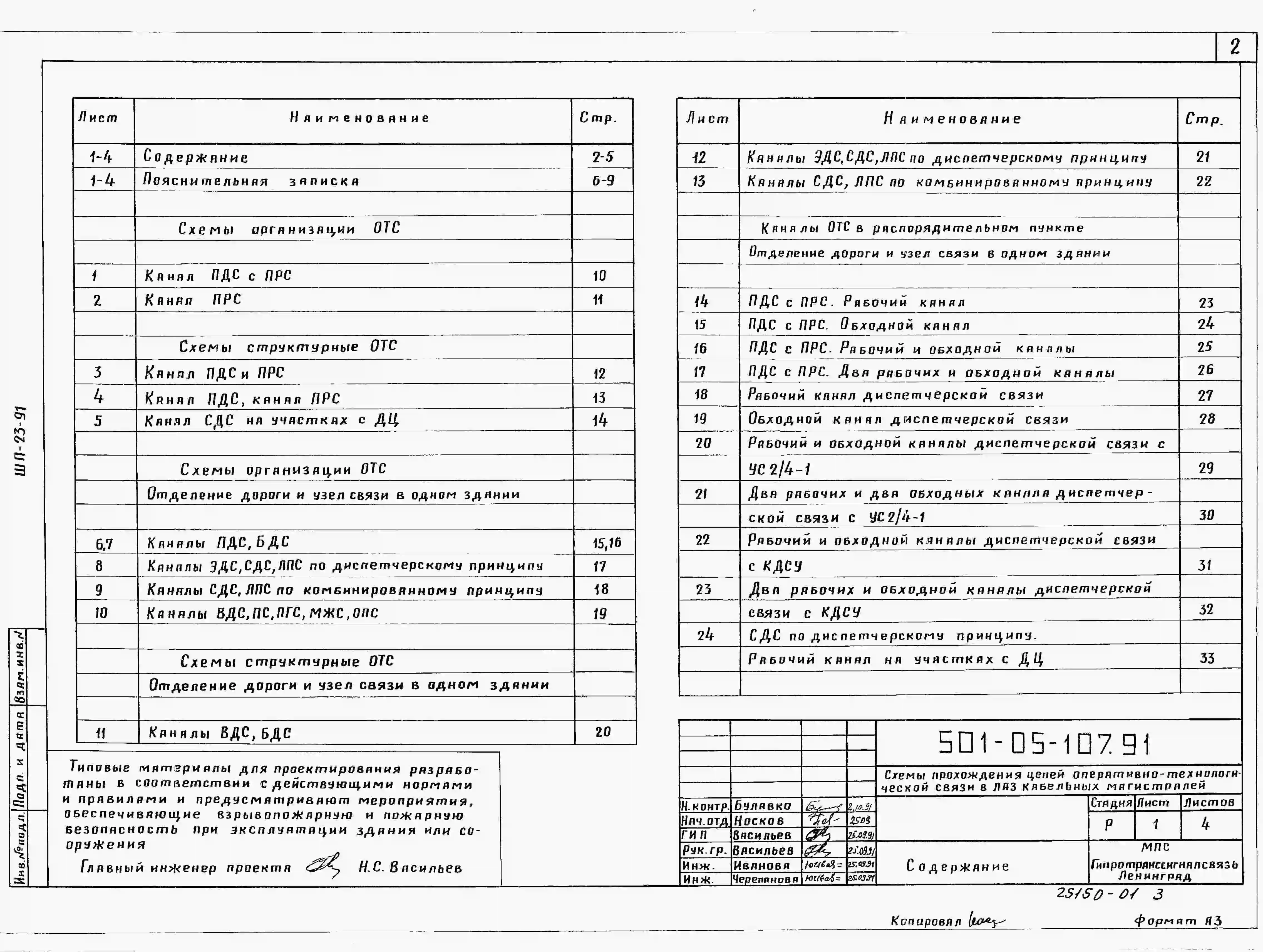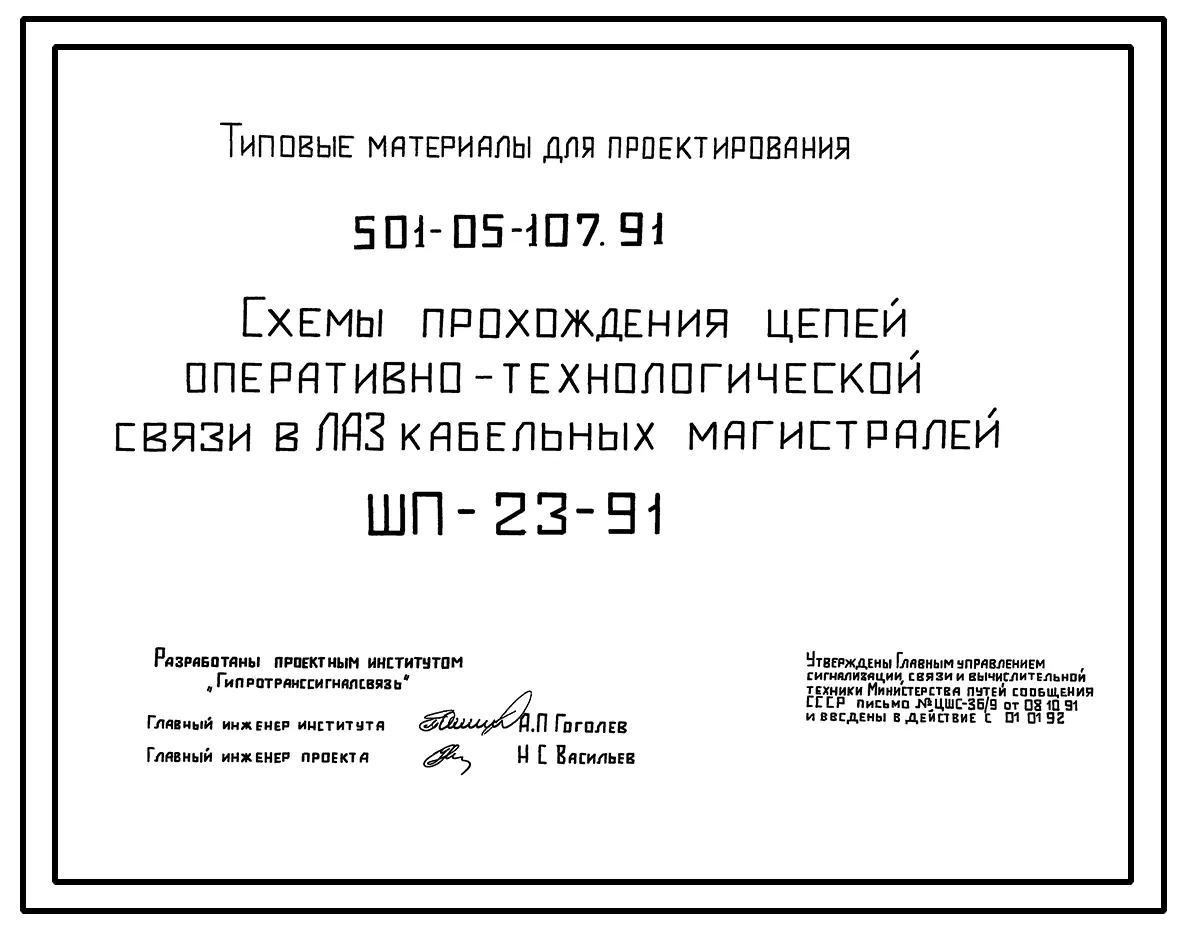 Типовой проект 501-05-107.91 Схемы прохождения цепей оперативно-технологической связи в ЛАЗ кабельных магистралей (ШП-23-91)