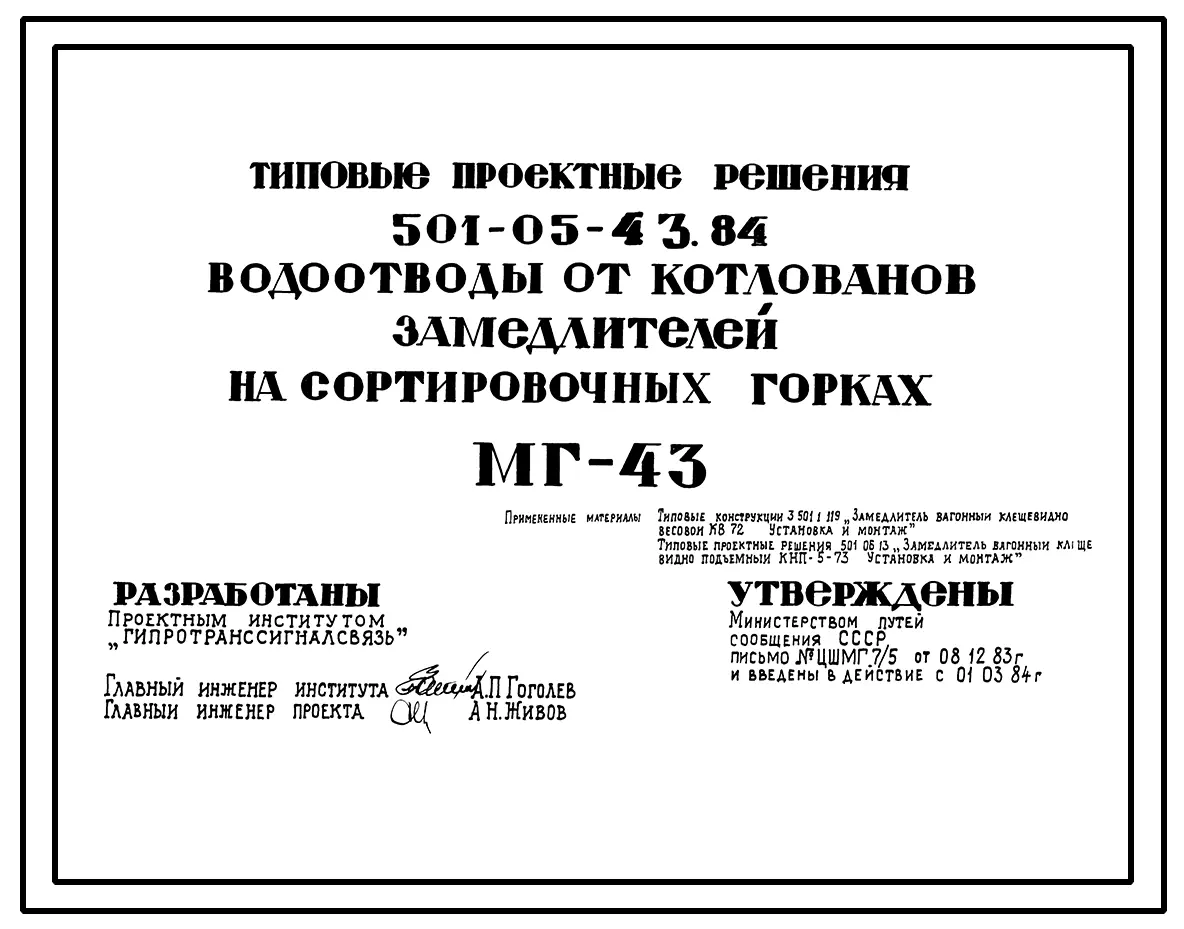 Типовой проект 501-05-43.84 Водоотводы от котлованов замедлителей на сортировочных горках МГ-43