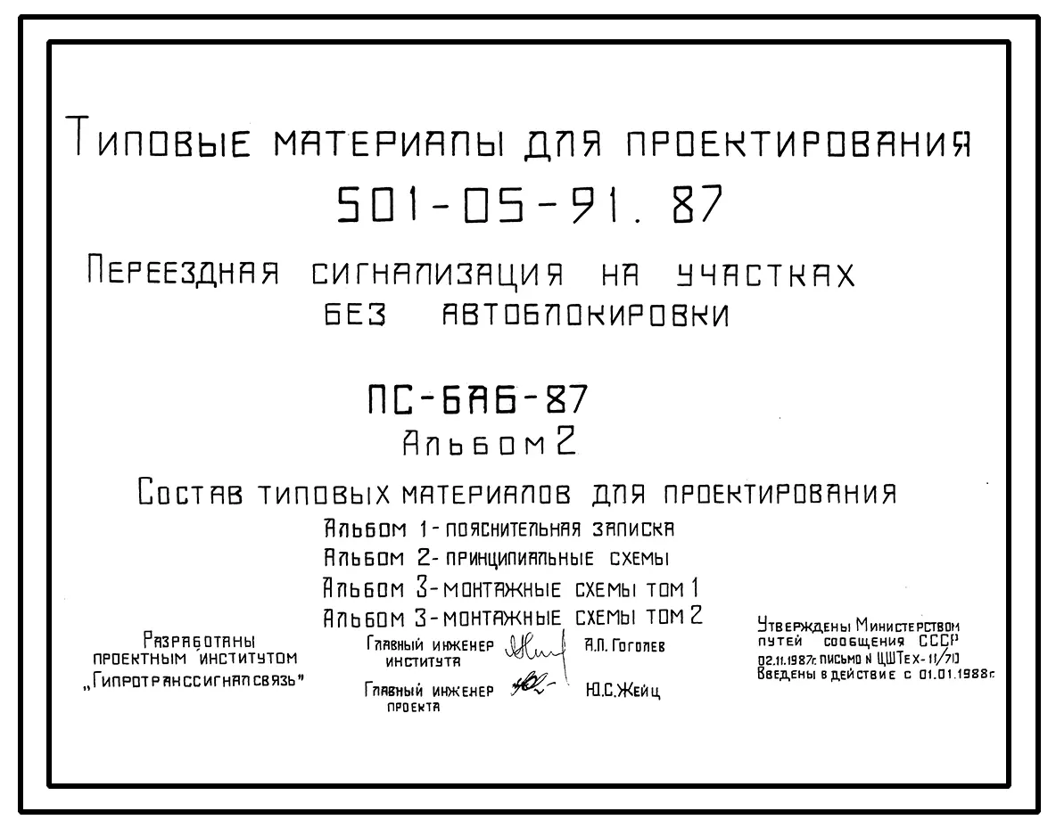 Типовой проект 501-05-91.87 Переездная сигнализация на участках без автоблокировки (ПС-БАБ-87)