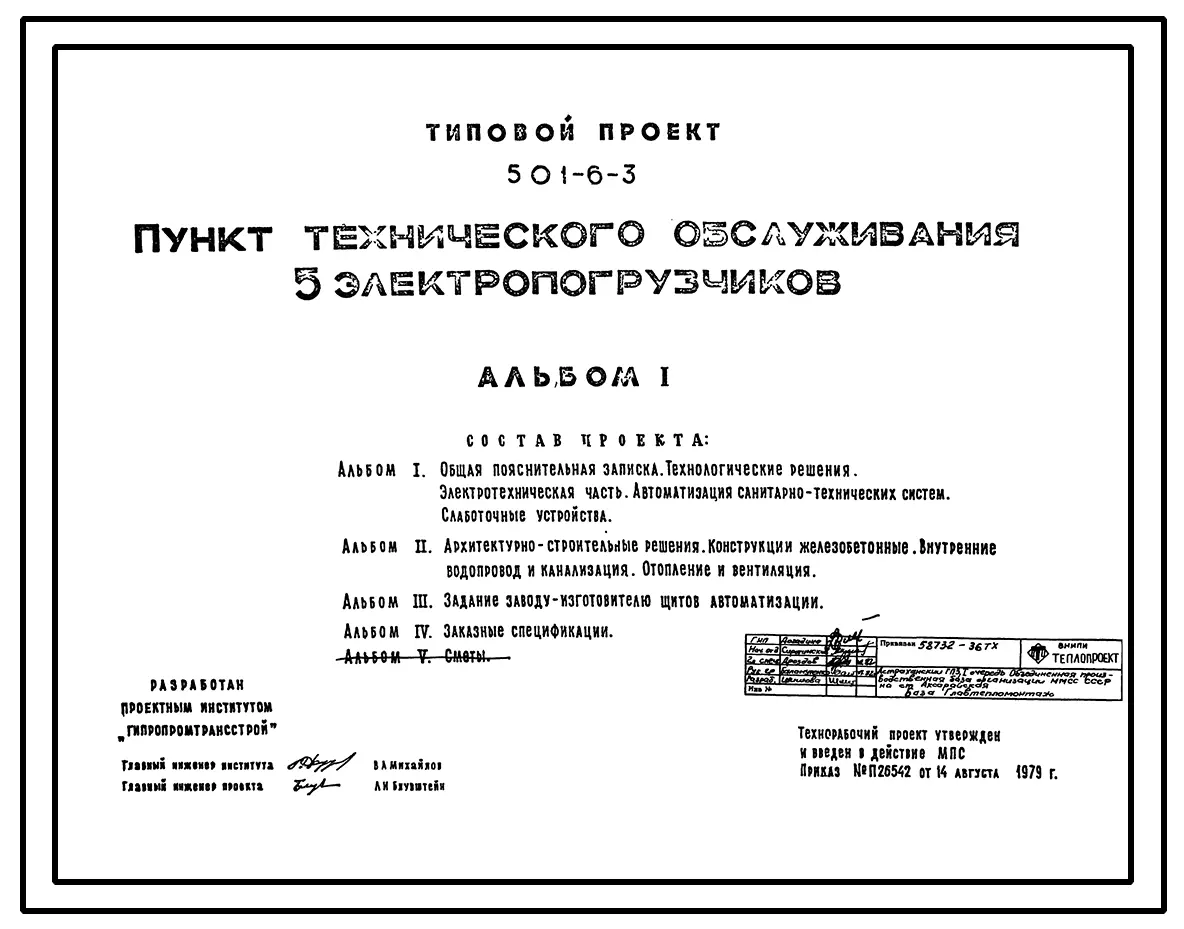 Типовой проект 501-6-3 Пункт технического обслуживания 5-ти электропогрузчиков