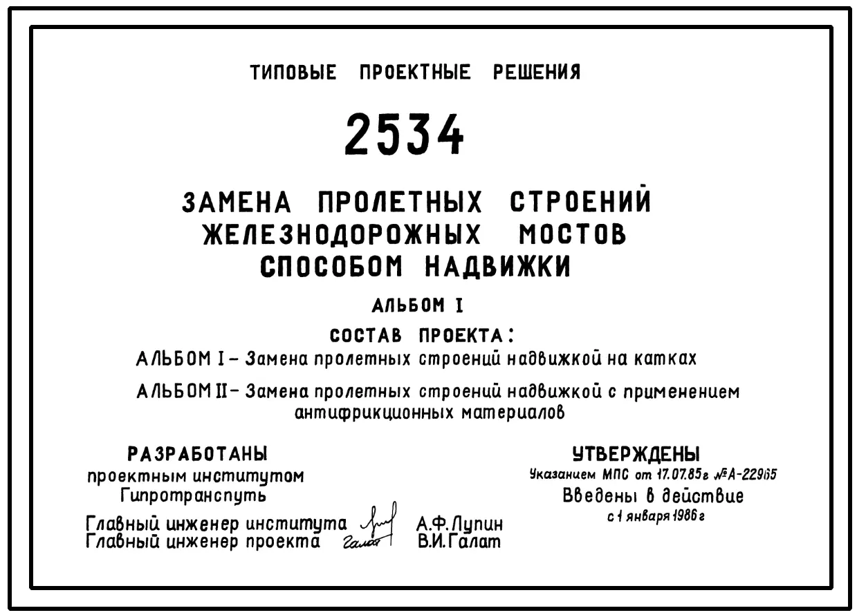 Типовой проект 2534 Замена пролетных строений железнодорожных мостов способом надвижки